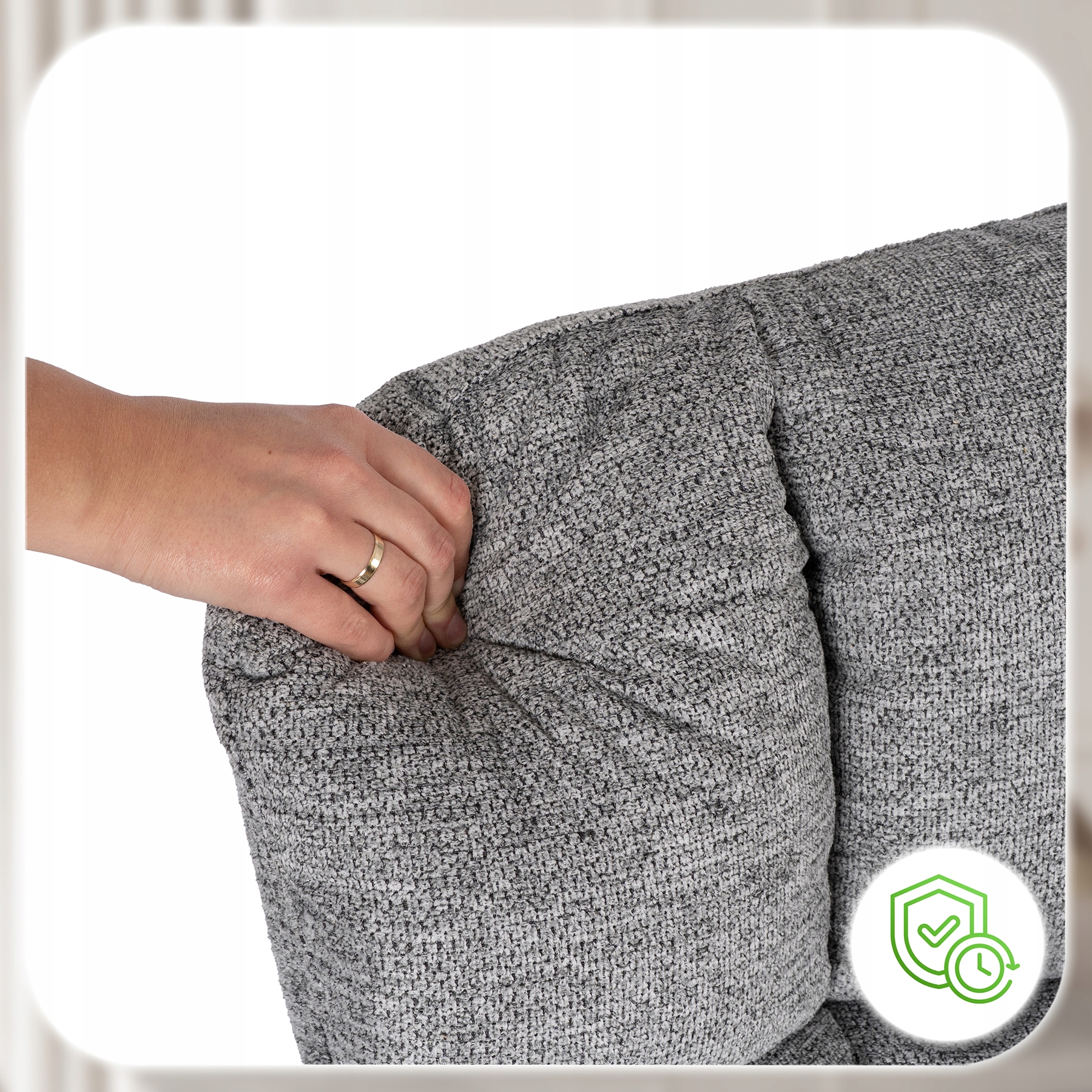- Gęsty splot – skutecznie ogranicza mechacenie się materiału i zapewnia estetyczny wygląd przez długi czas.