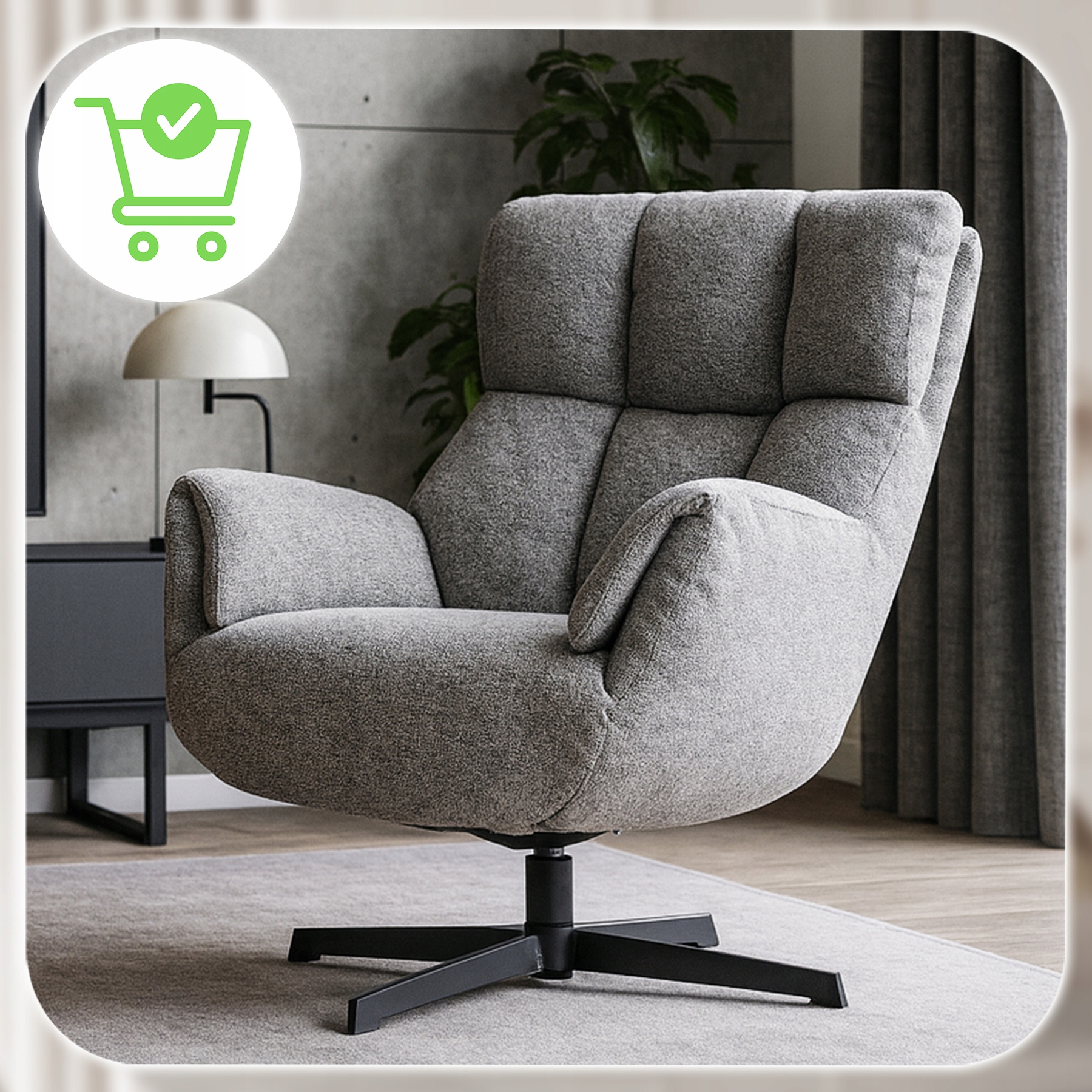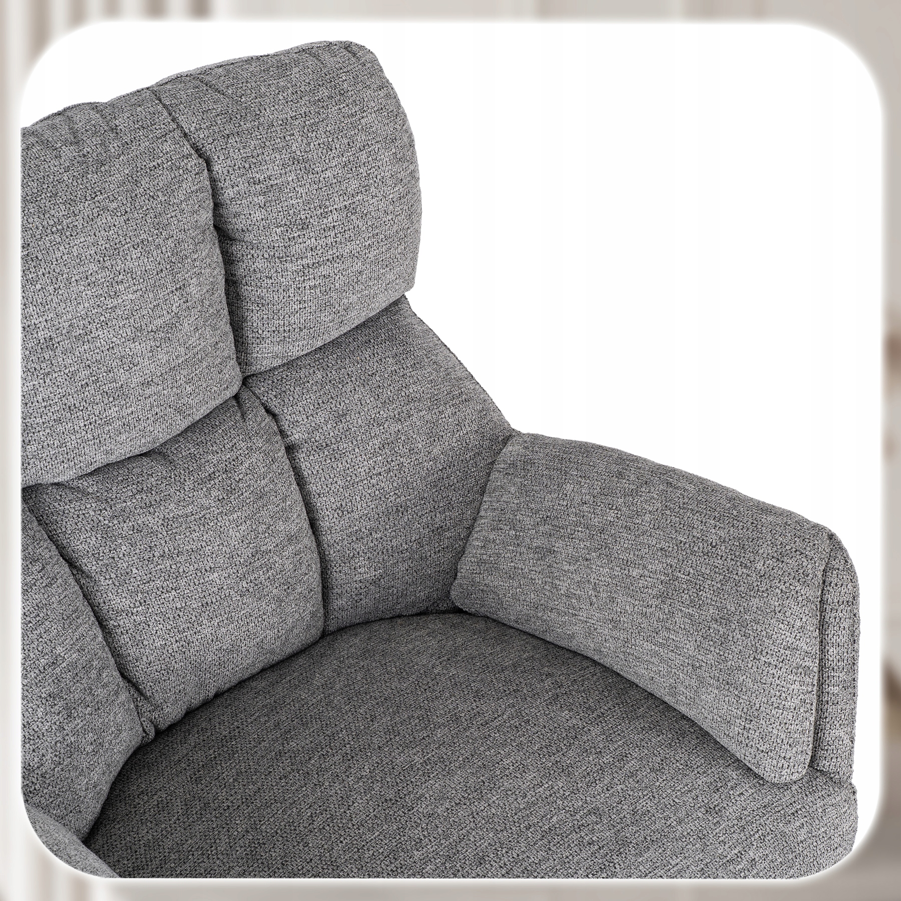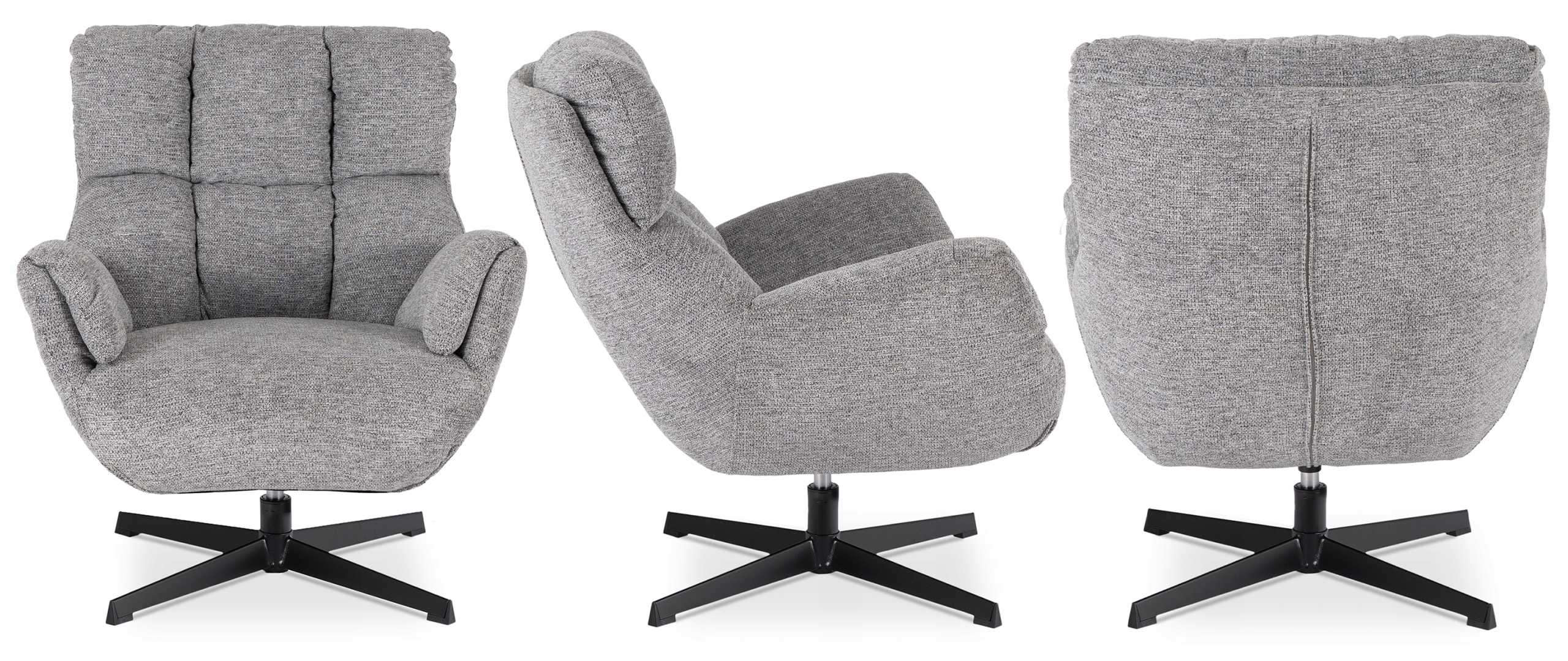 ✨ Fotel Obrotowy Wypoczynkowy Tapicerowany Do Salonu Sypialni Szary REAL