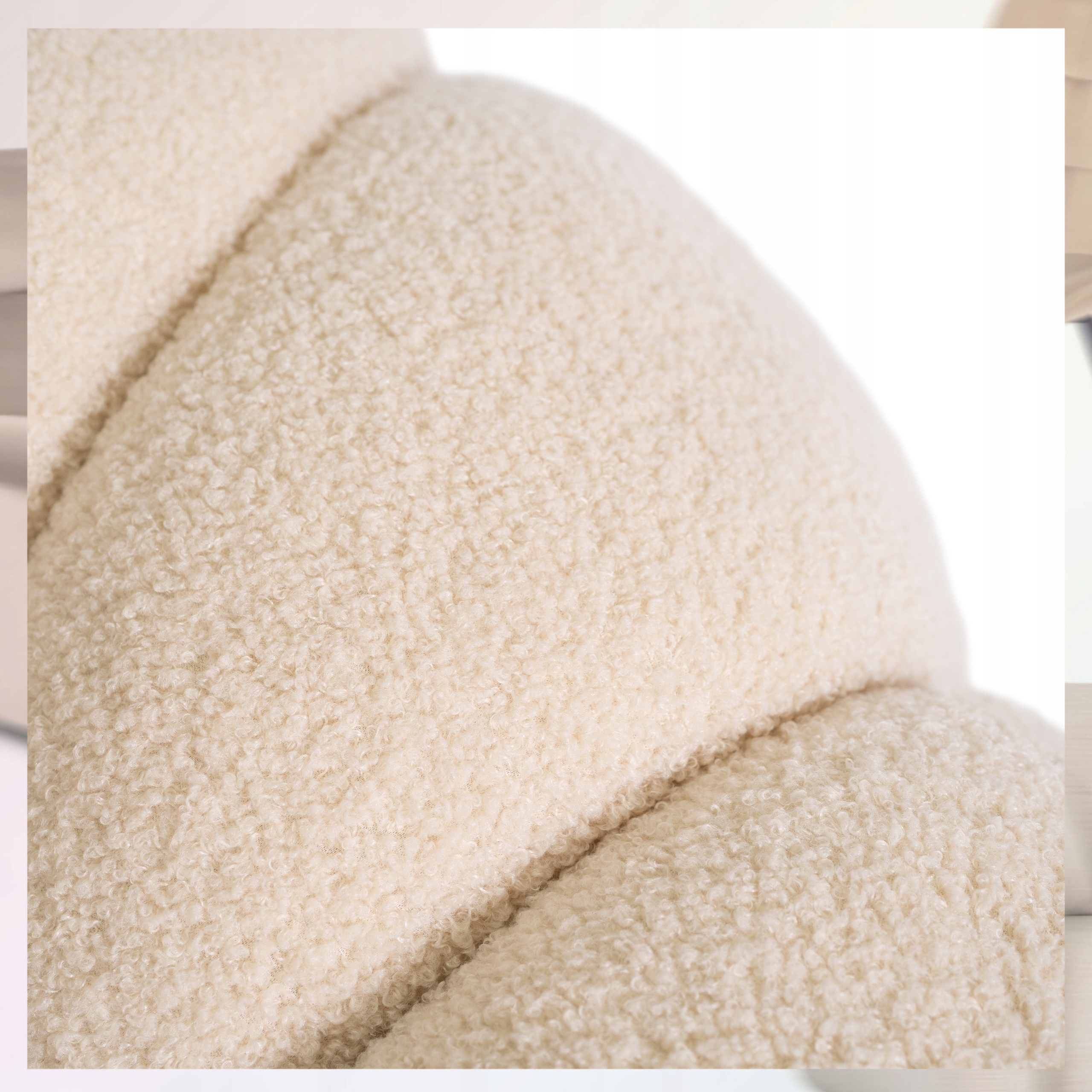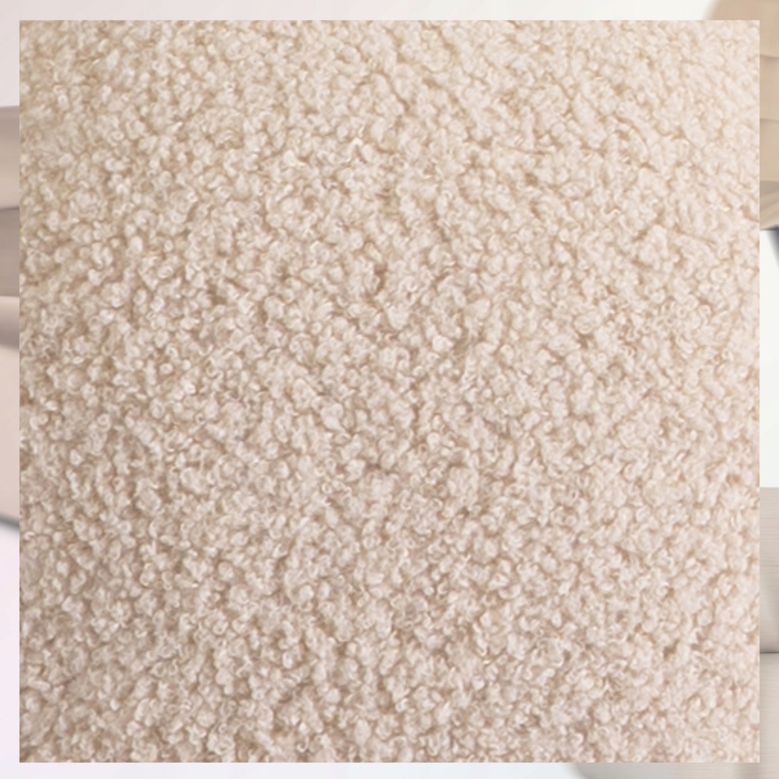⭐ Materiał boucle znany również jako „baranek, teddy”, zachwyca swoją miękkością i puszystą strukturą. To materiał, który otula ciepłem i dodaje uczucia wyjątkowego komfortu.