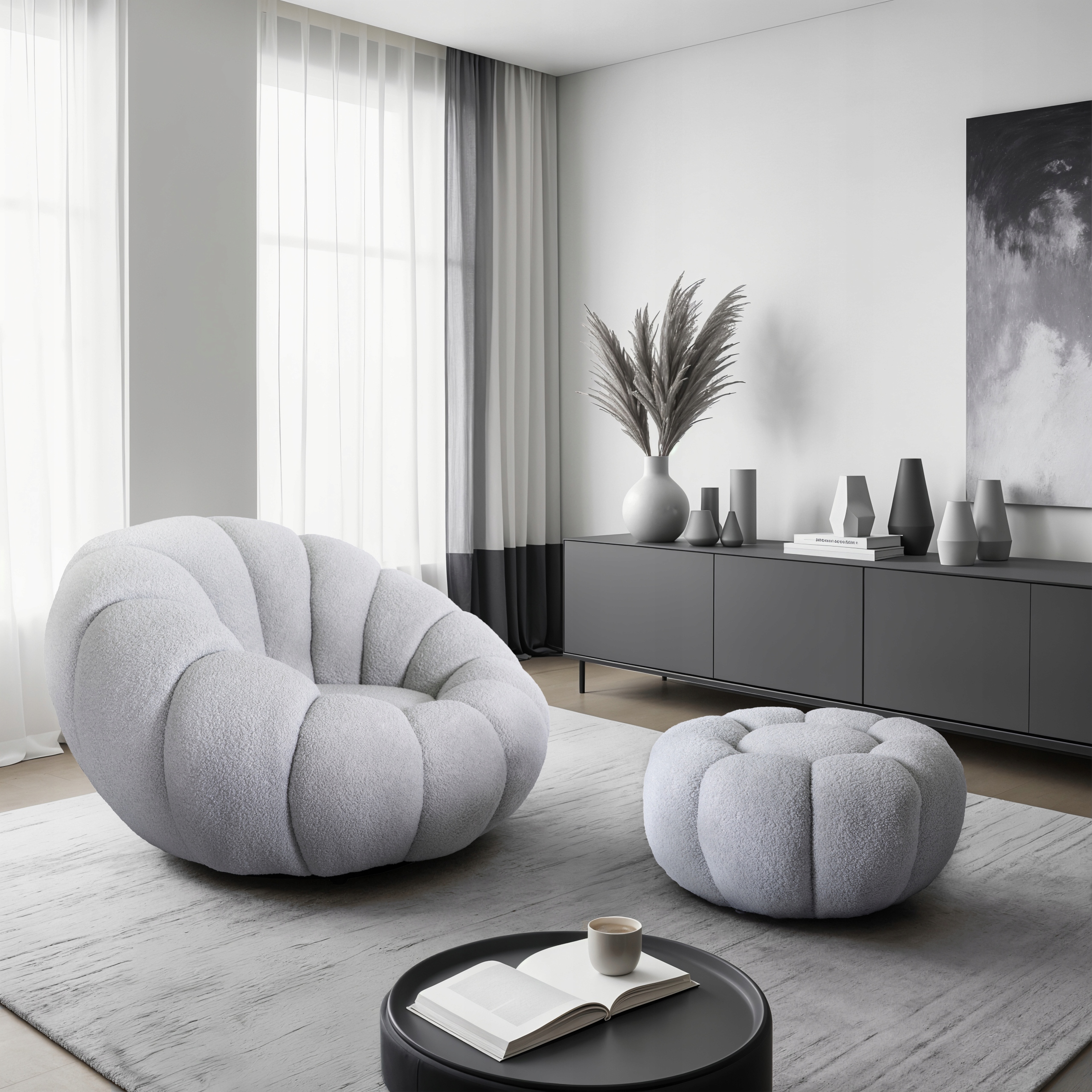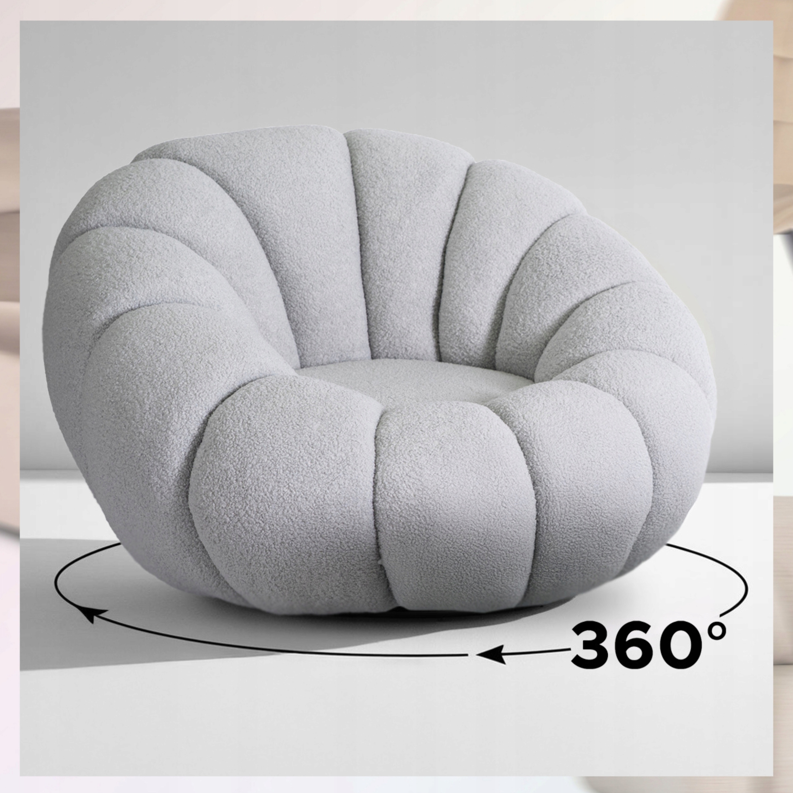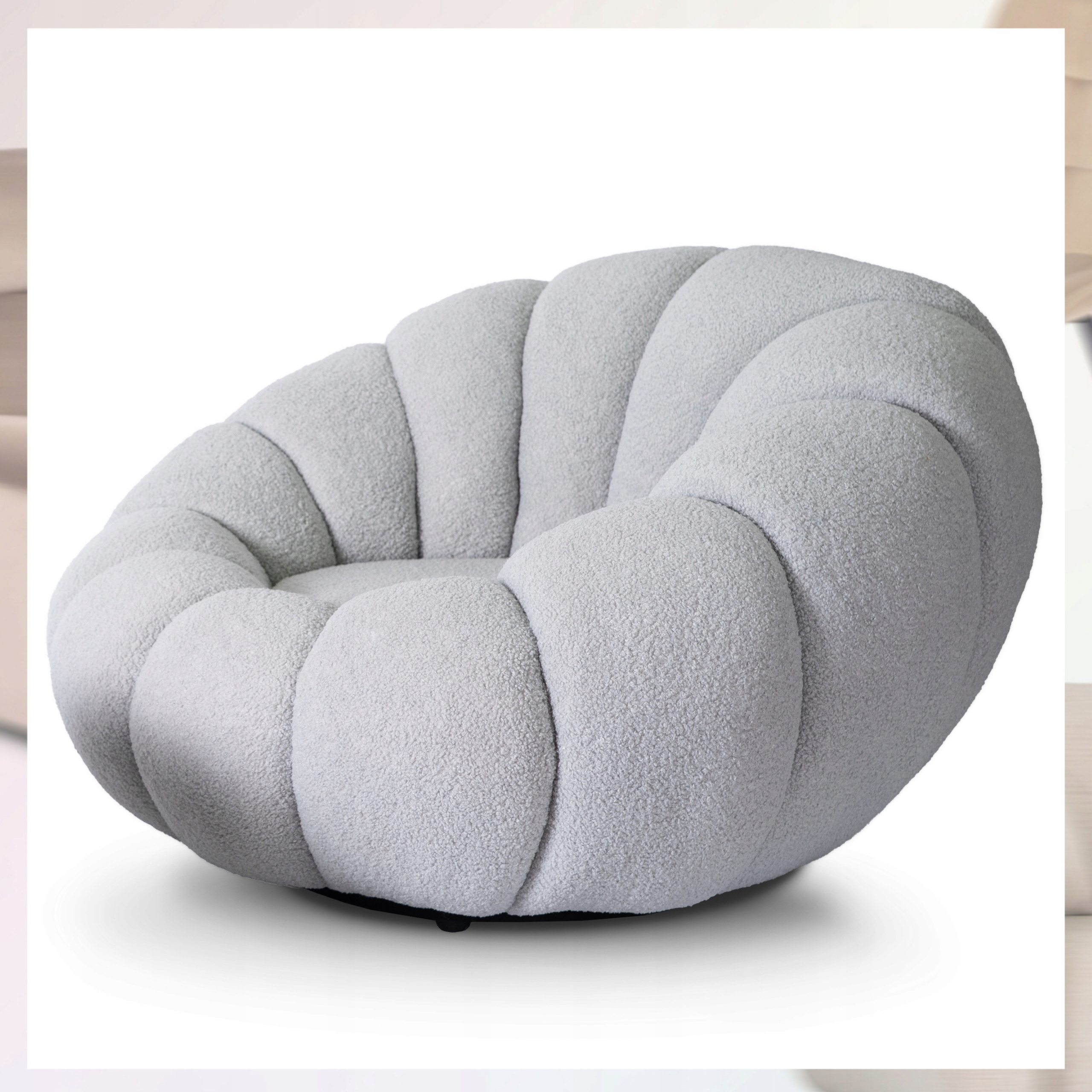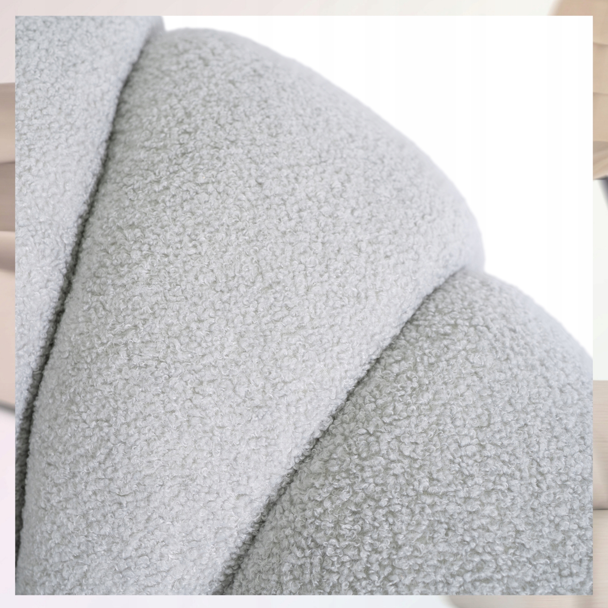 ⭐ Obrotowe siedzisko 360° zapewnia pełną swobodę ruchu, a pluszowa tapicerka boucle o strukturze „baranka” dodaje ciepła i stylowego wyglądu.