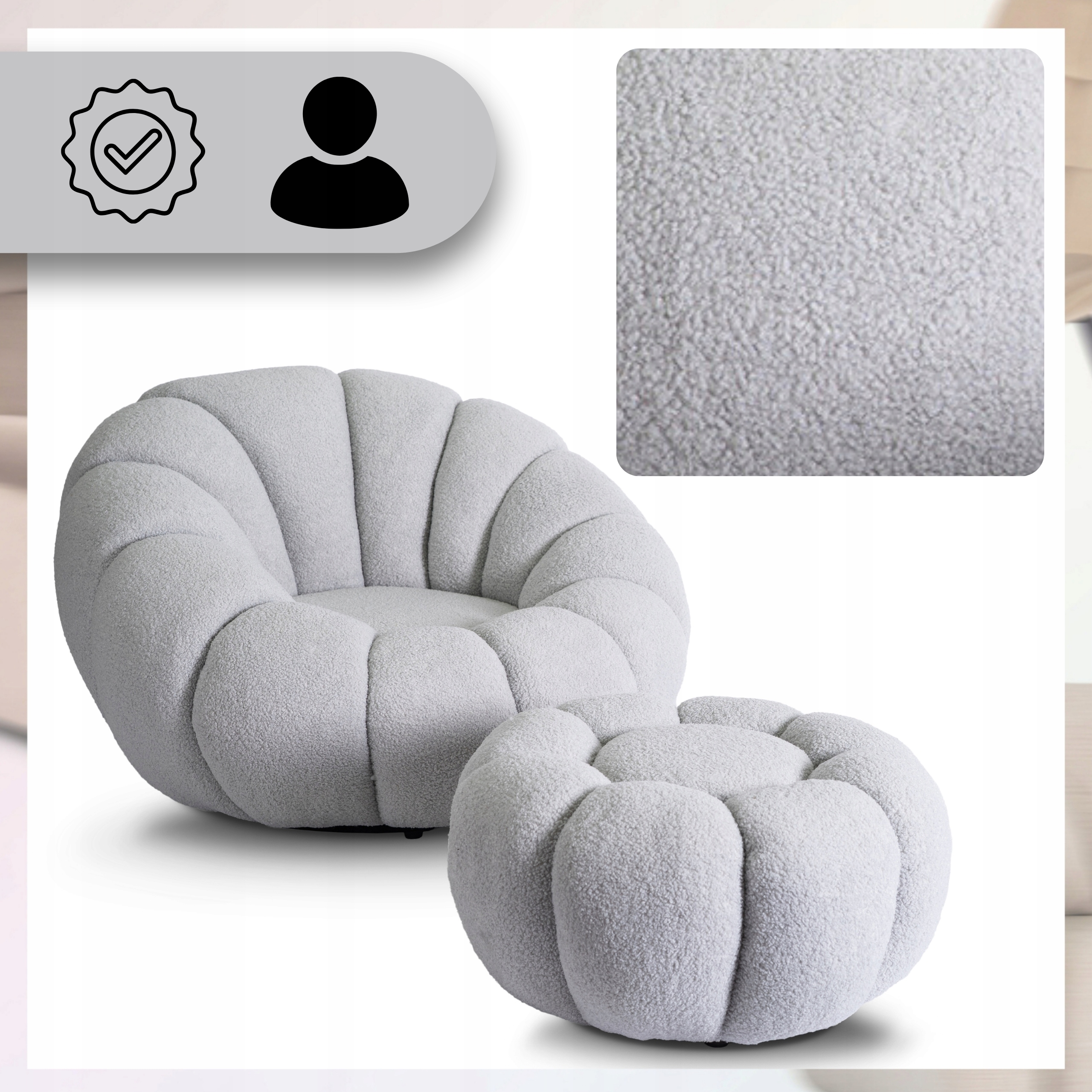Fotel Obrotowy z Podnóżkiem Pufa Wypoczynkowy do Salonu Teddy PETTIT Szary ⭐⭐⭐⭐⭐
