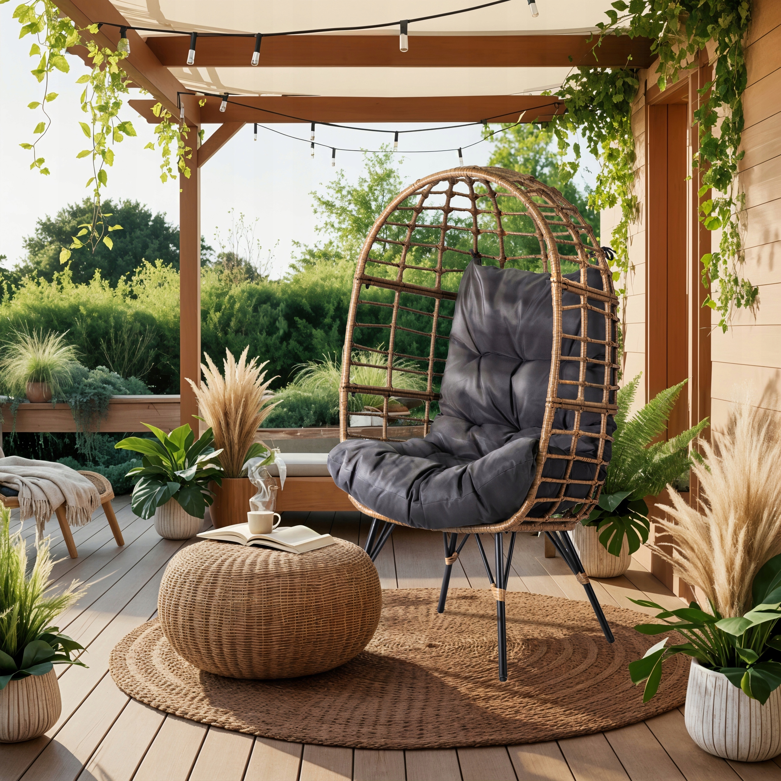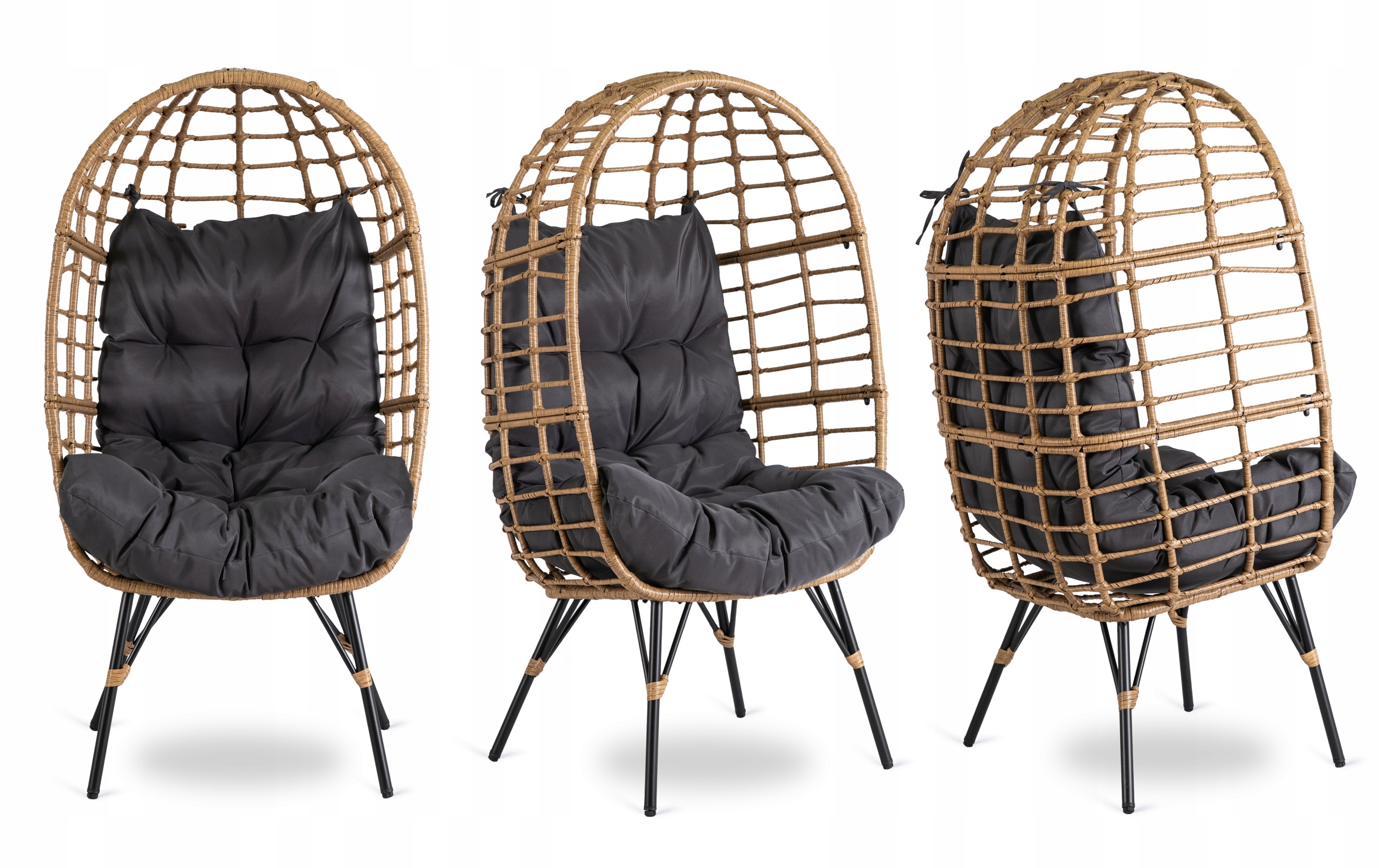 Fotel Ogrodowy Kokon Wypoczynkowy Rattanowy Na Taras MADISON szary