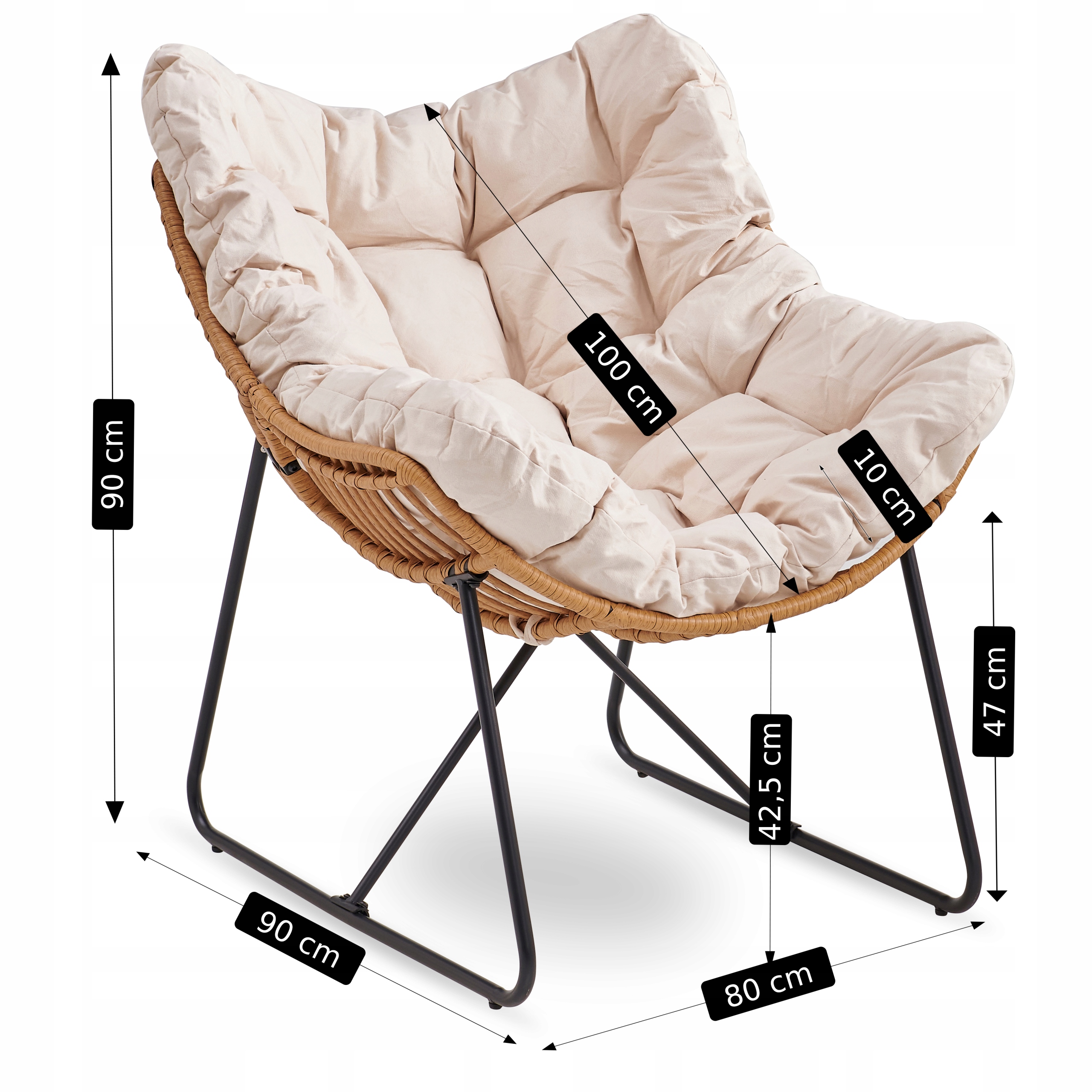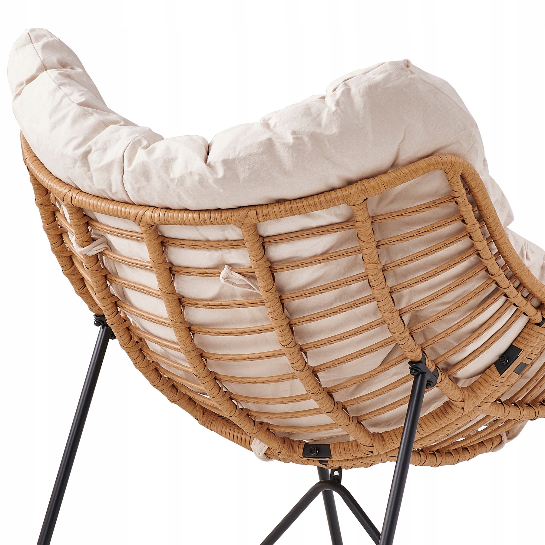 ✅ Metalowe siedzisko pokryte jest plecionką, która dodaje ciepła i przytulnego klimatu.