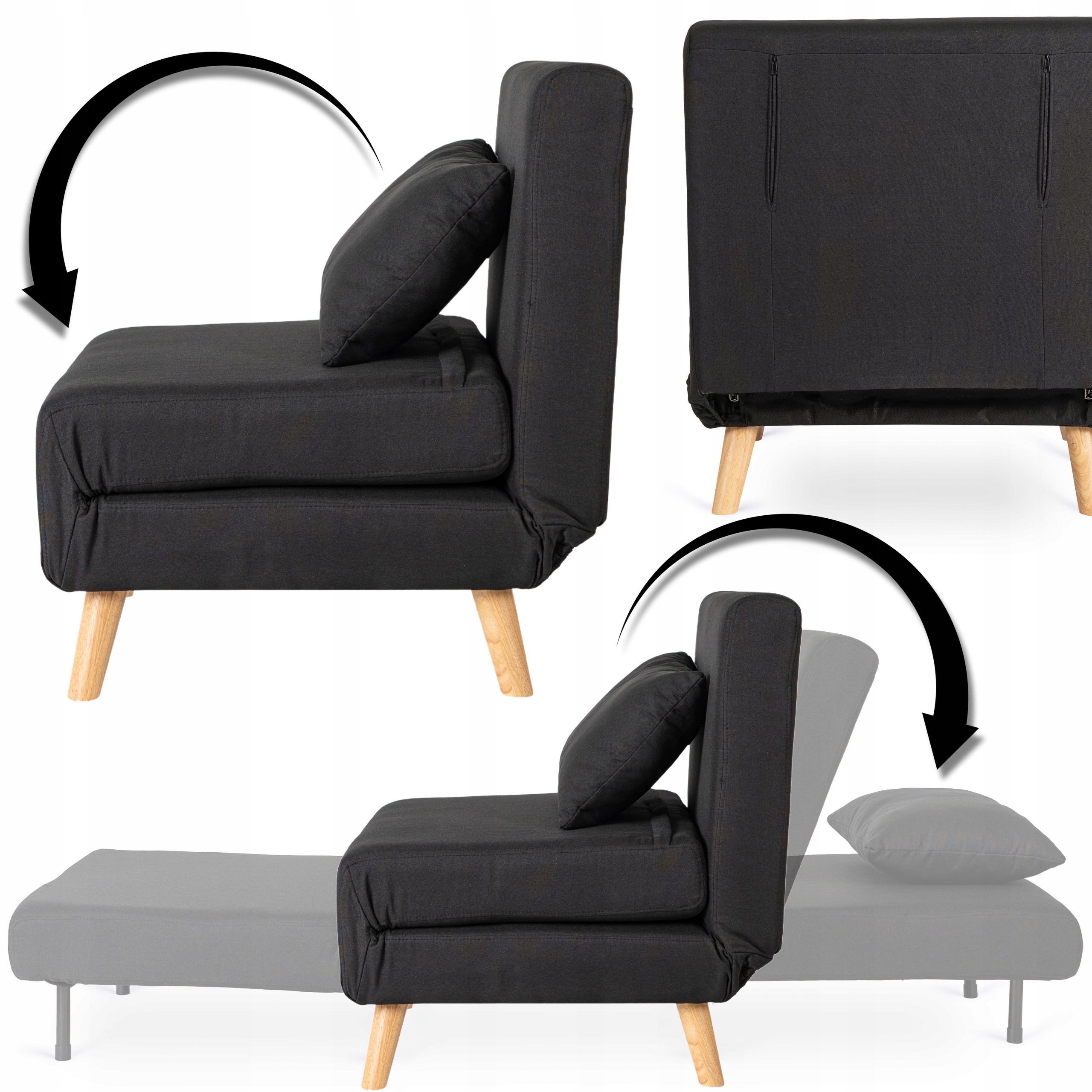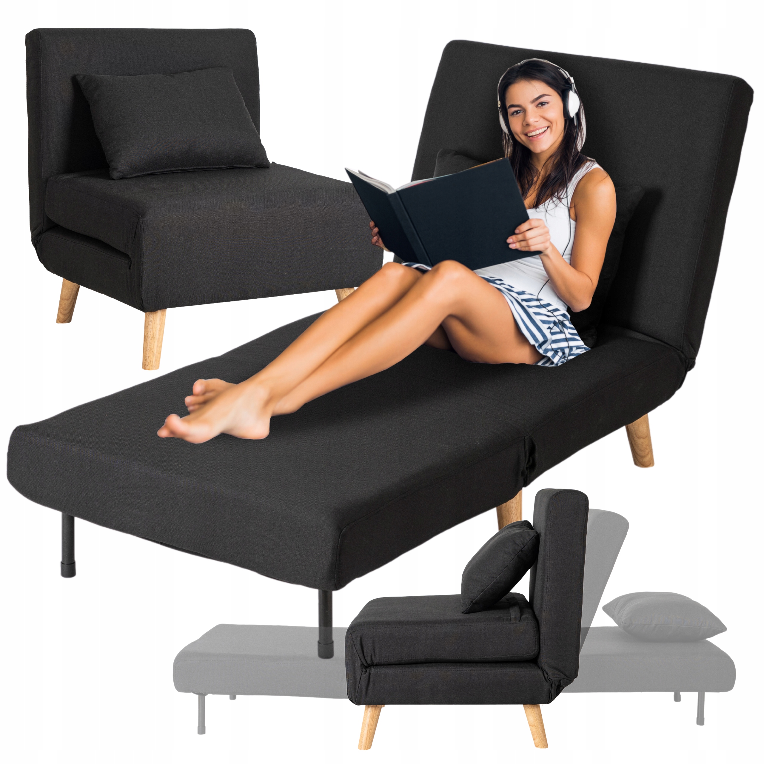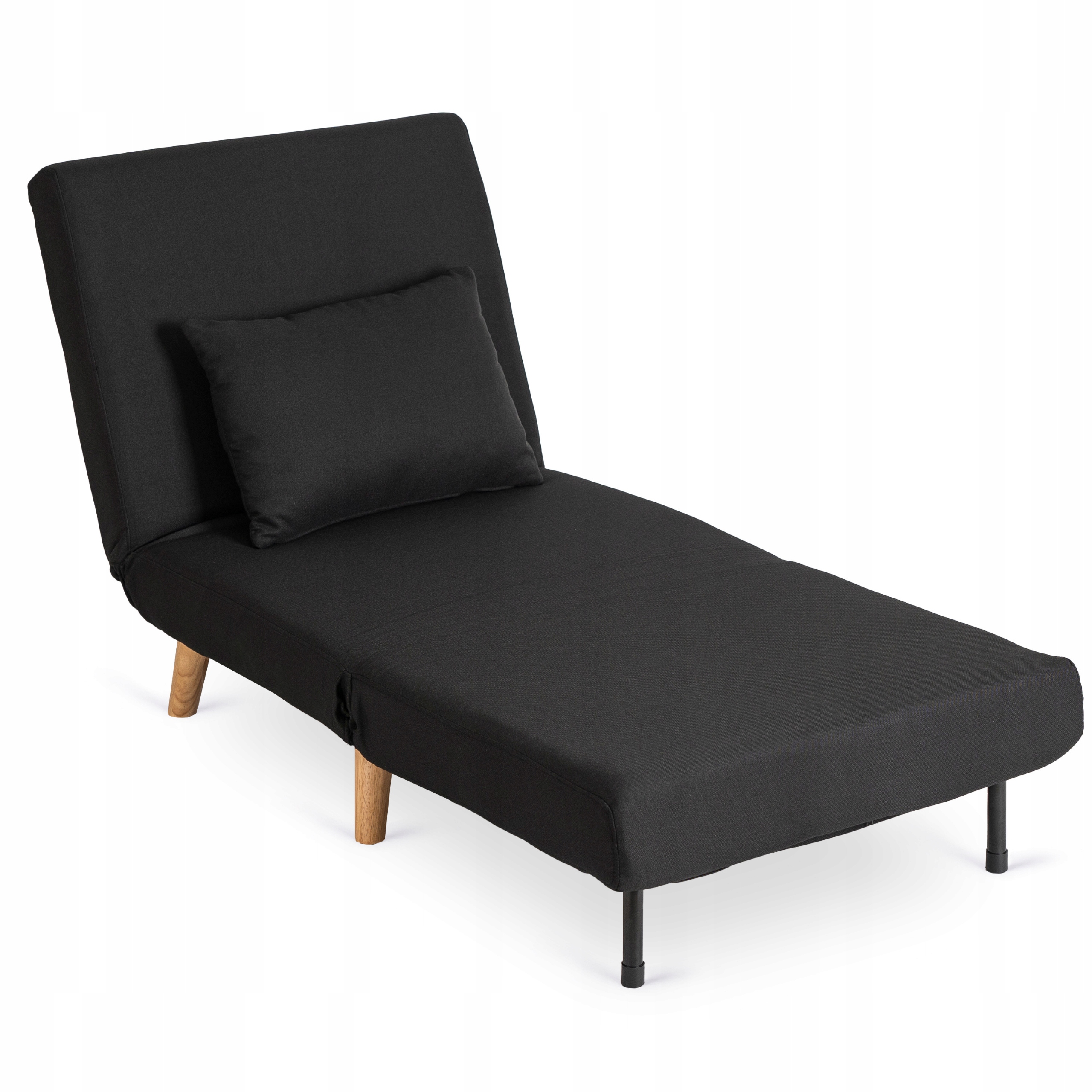 Fotel Rozkładany Do Spania Leżak Łóżko Sofa Jednoosobowa Czarny MARRY ⭐⭐⭐⭐⭐
