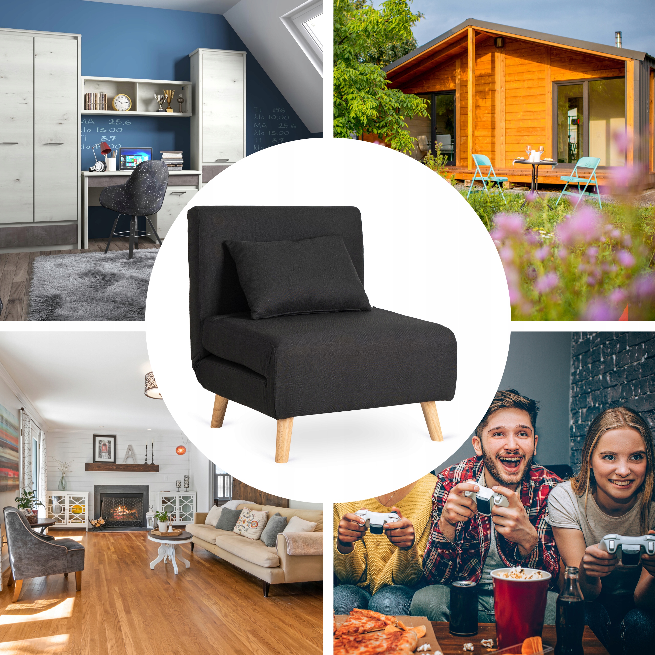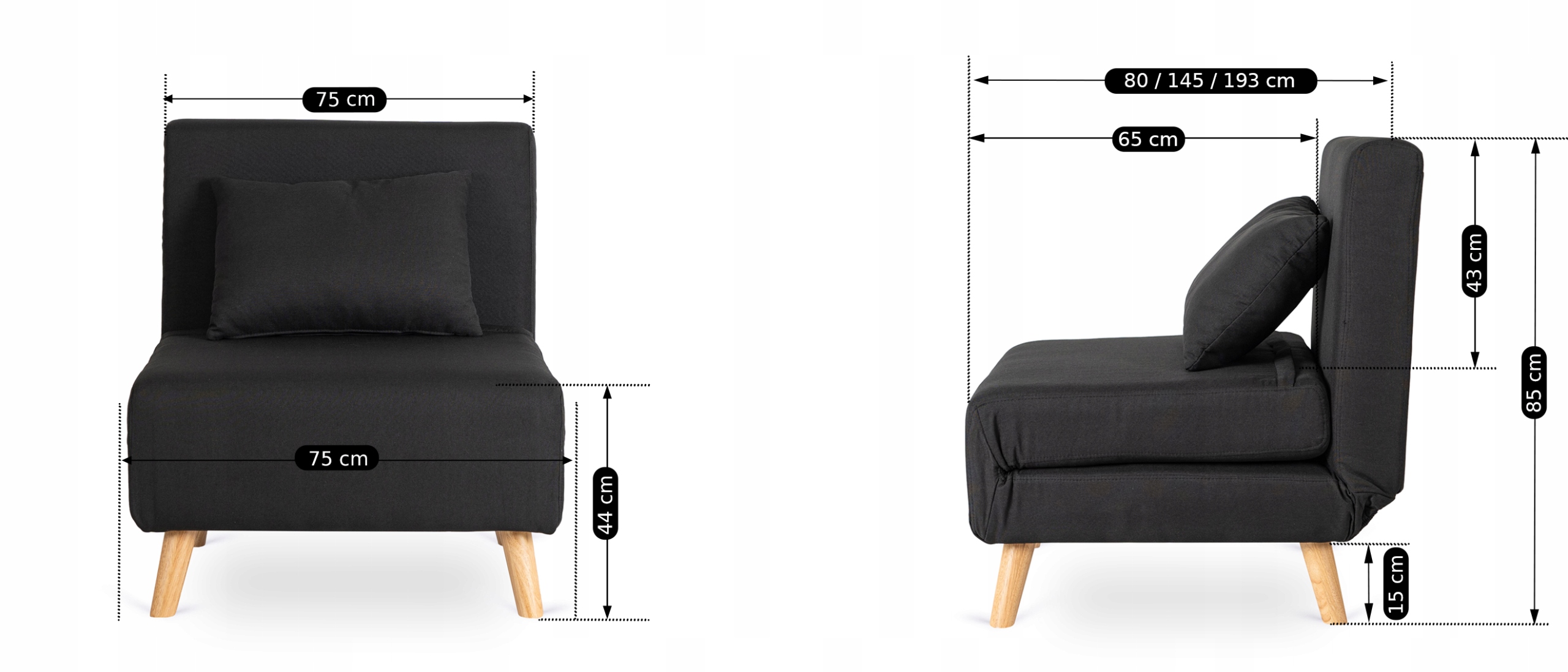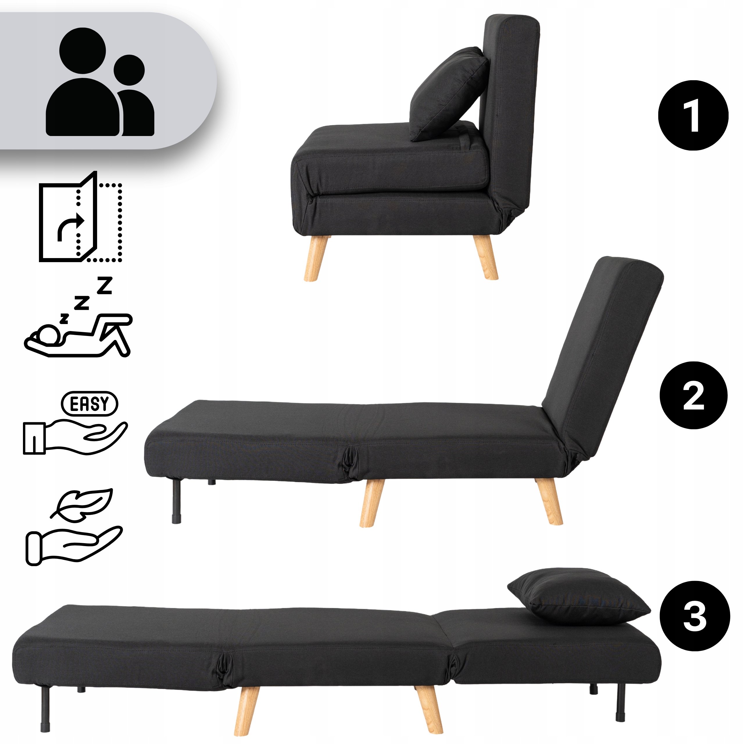 Fotel Rozkładany Do Spania Leżak Łóżko Sofa Jednoosobowa Czarny MARRY ⭐⭐⭐⭐⭐