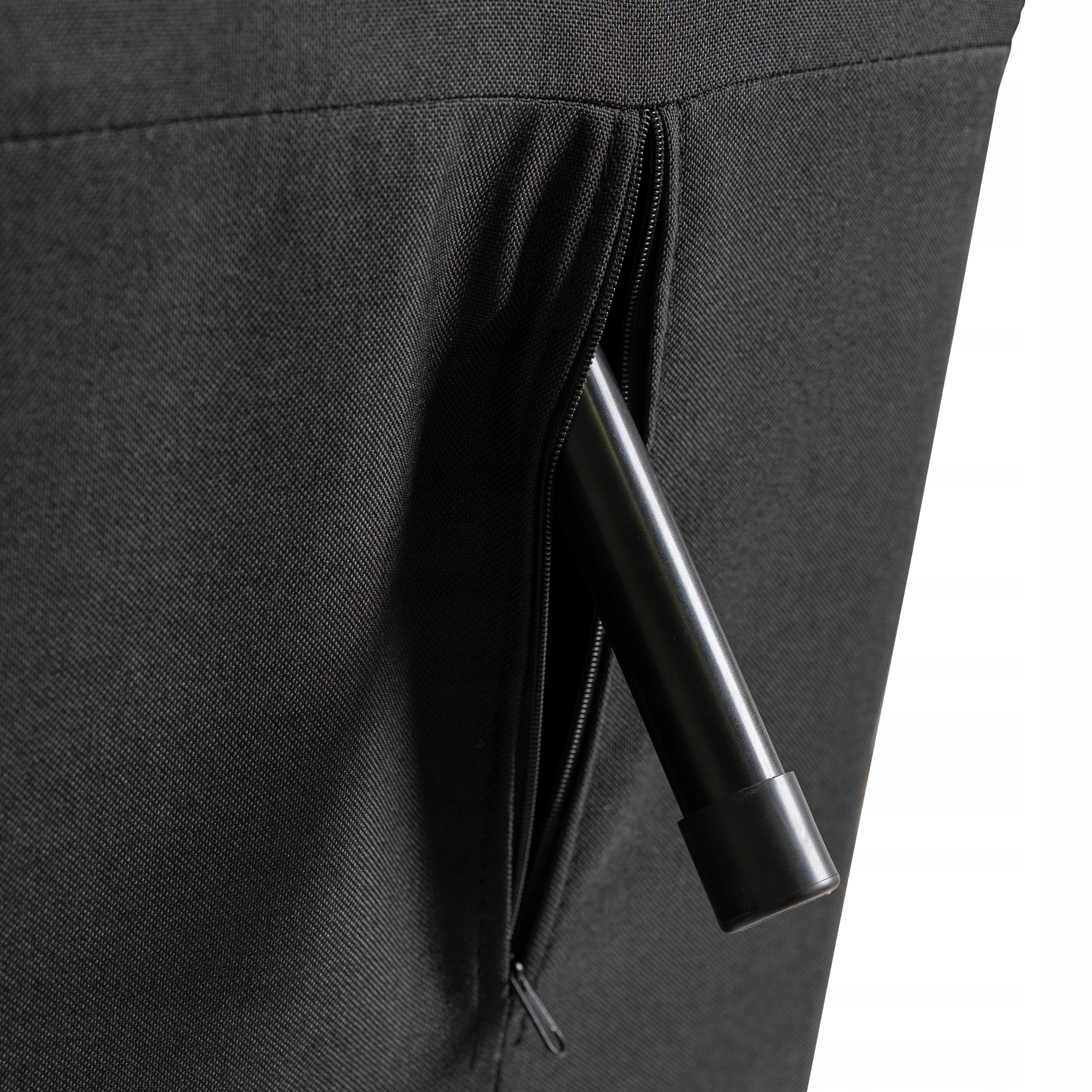 Z tyłu oparcia należy rozpiąć suwakiem zamki, aby rozłożyć nóżki, jeśli potrzebujesz opuścić oparcie na płasko.