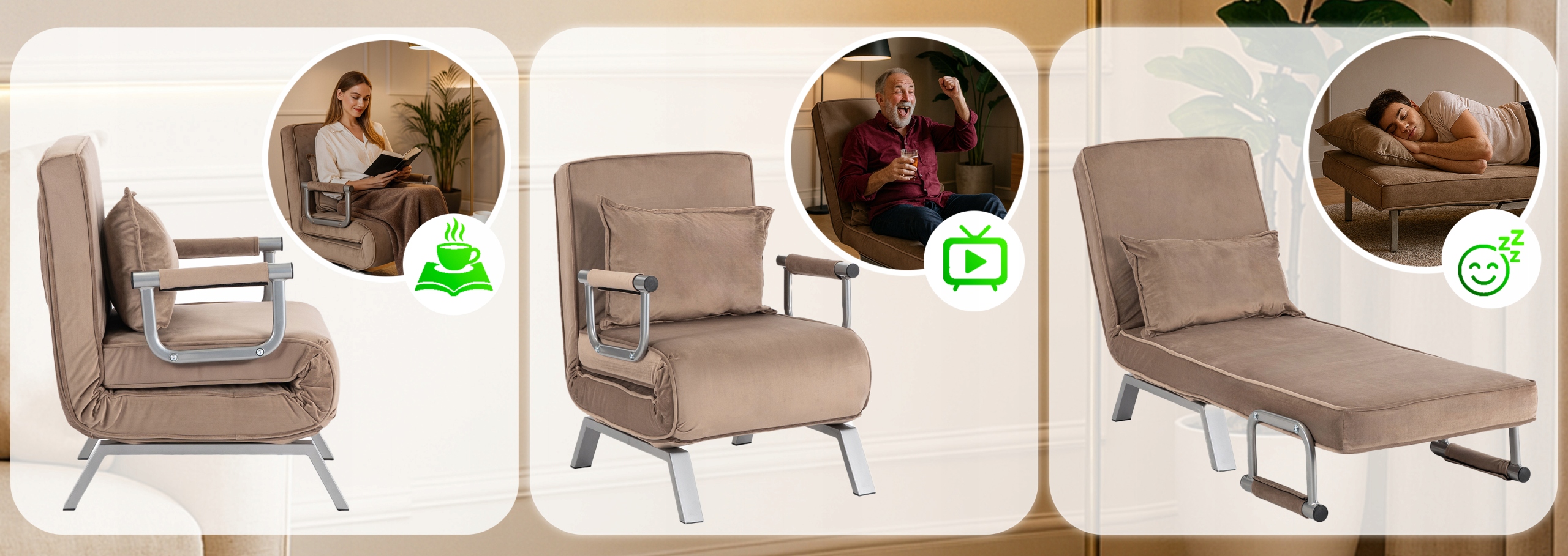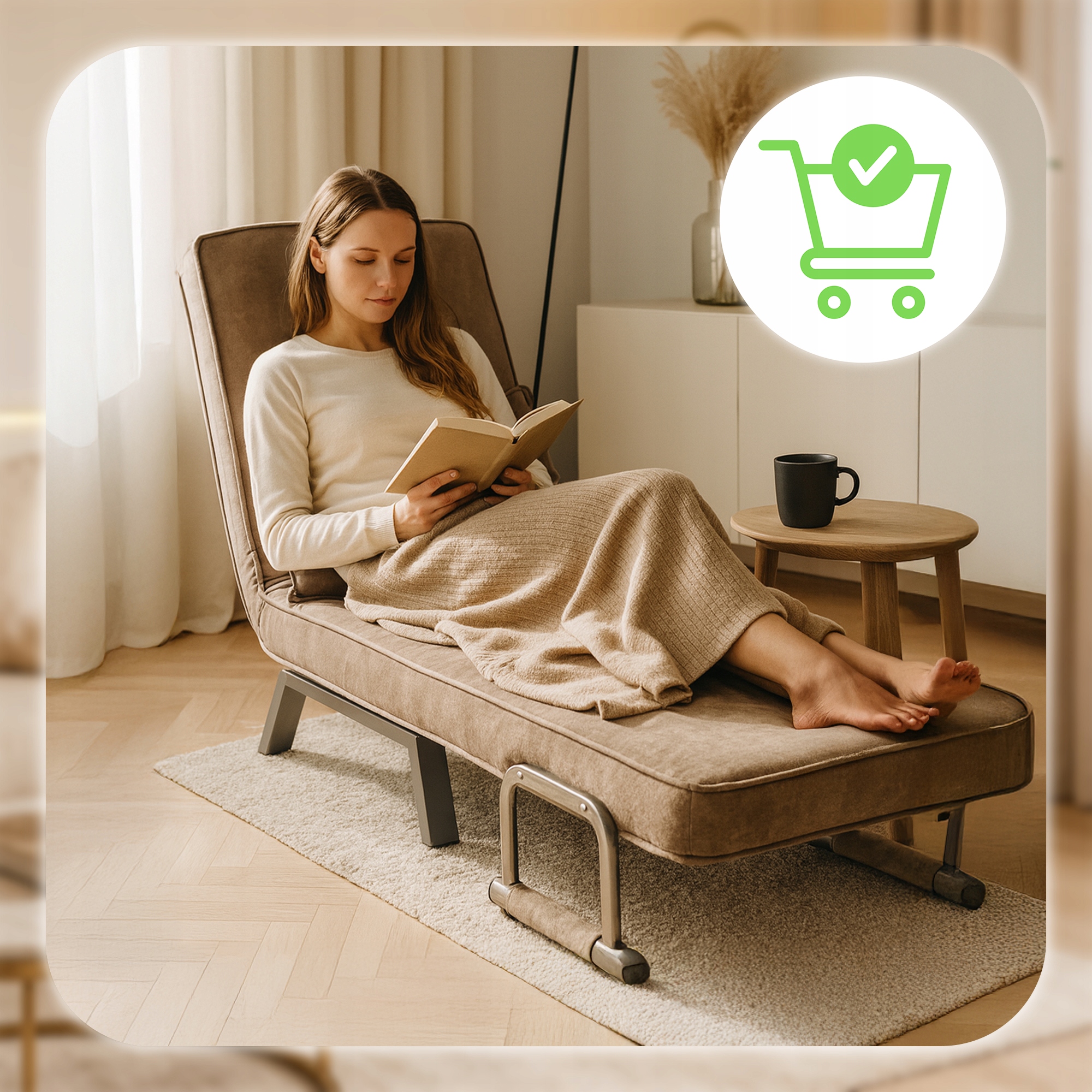 - Wszechstronność 3w1 – fotel, leżanka i łóżko w jednym.