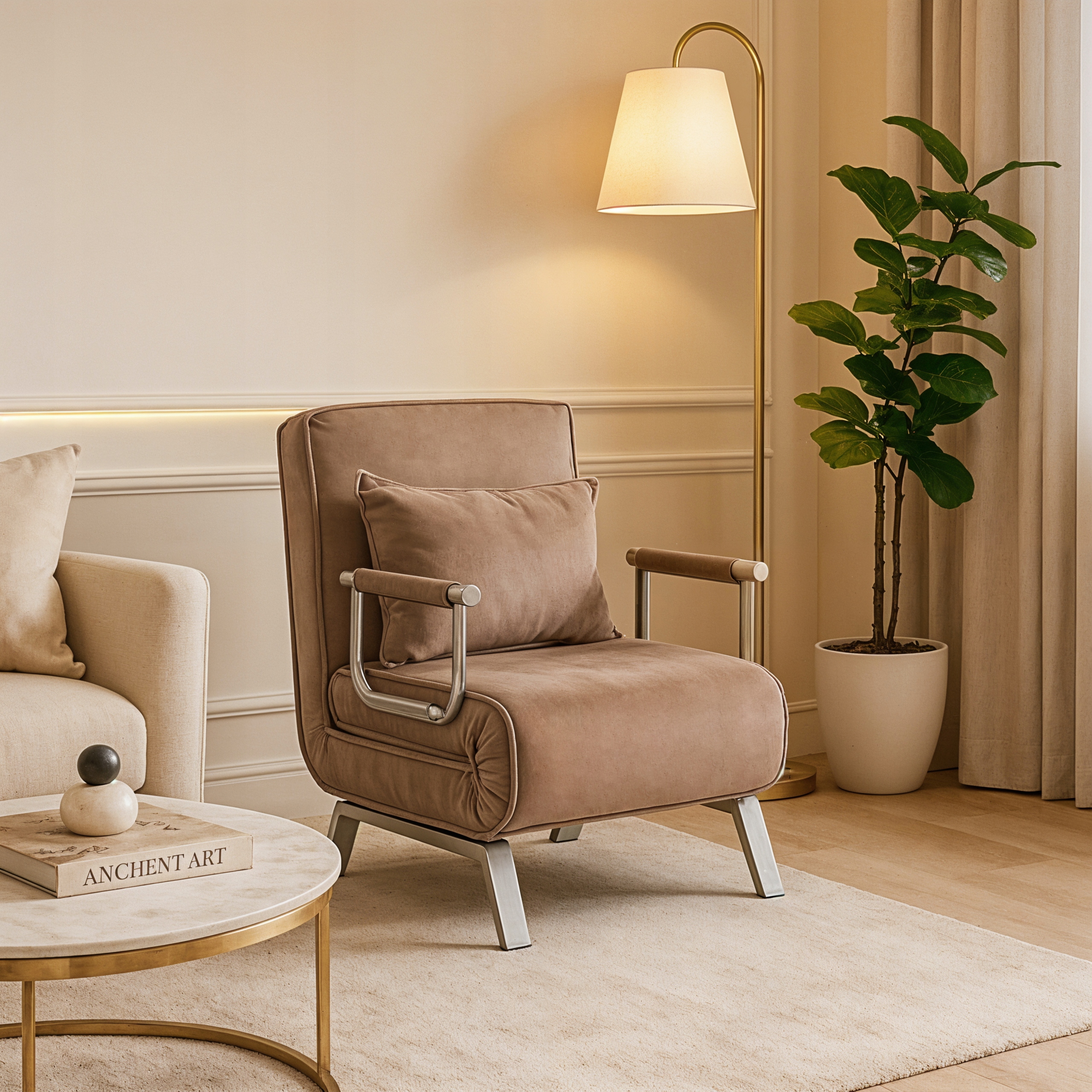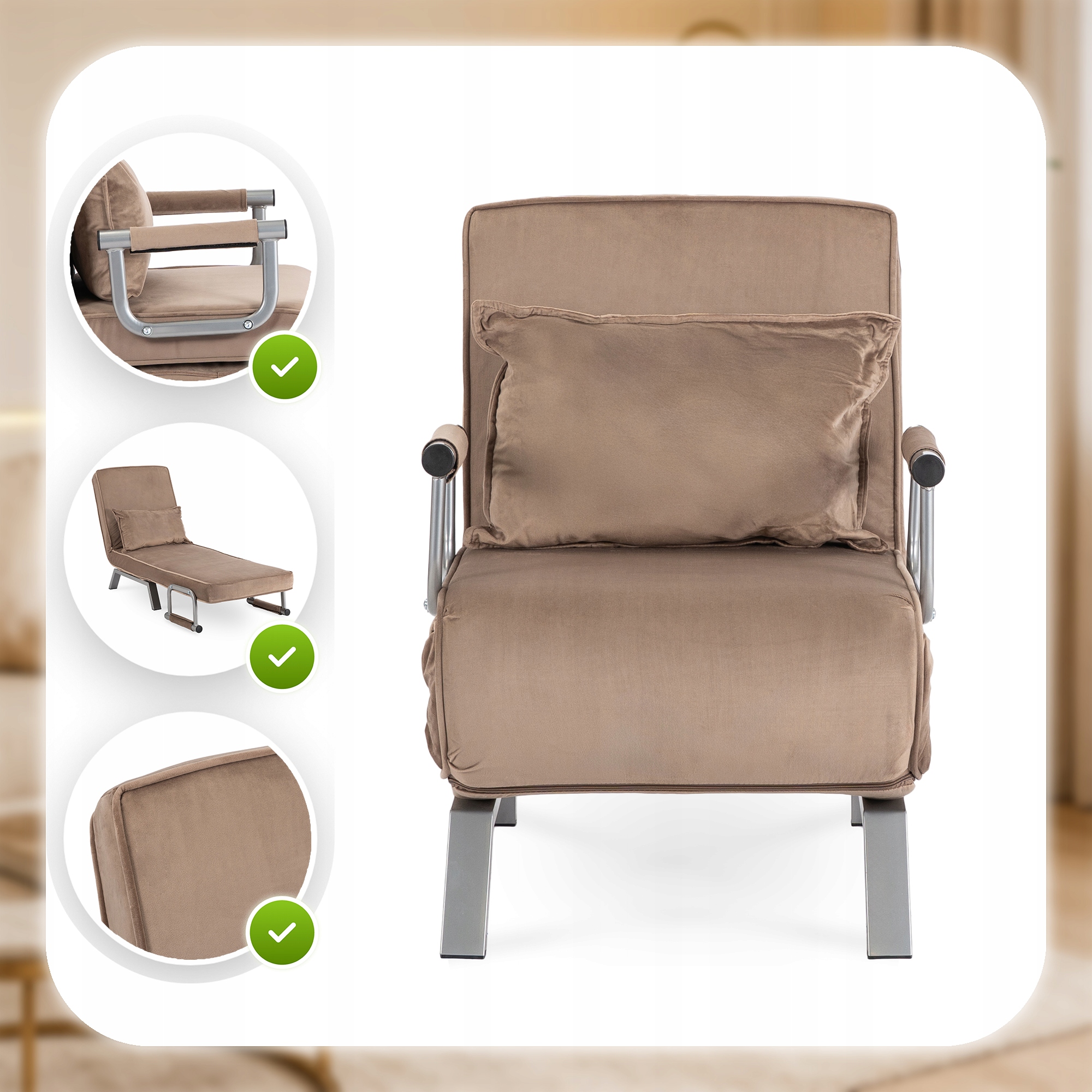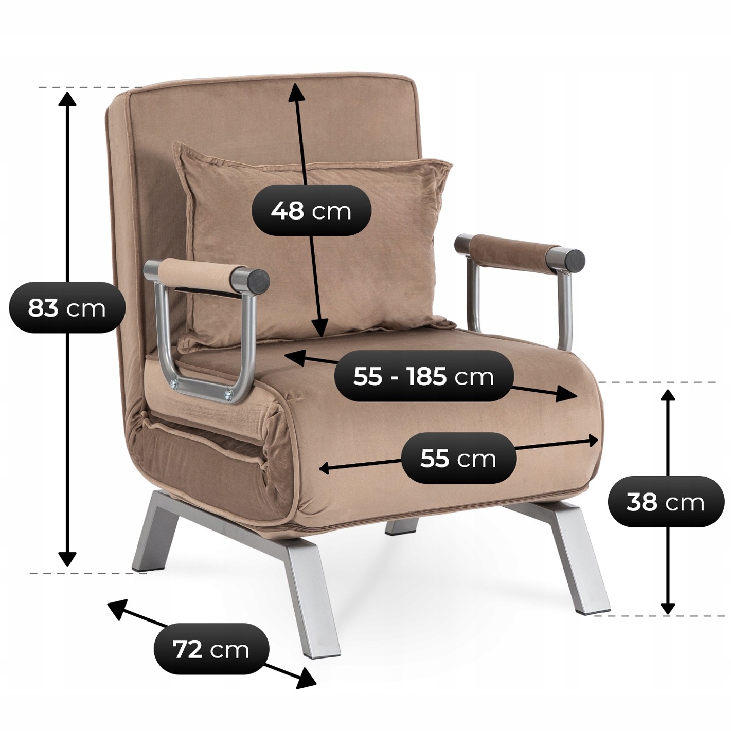 ✨ Fotel Rozkładany Do Spania Salonu Leżanka Jednoosobowa Welurowa Beżowy BART
