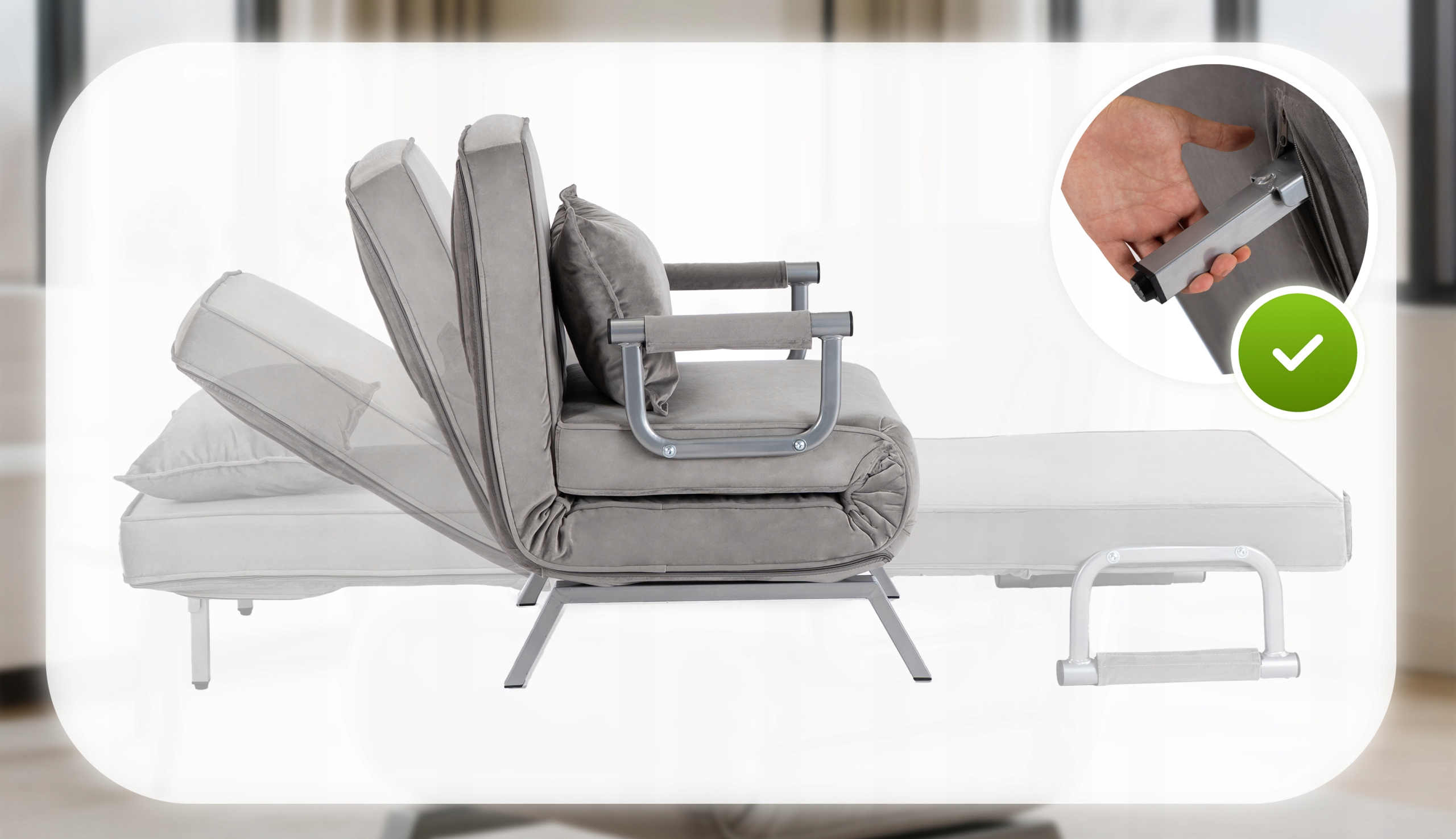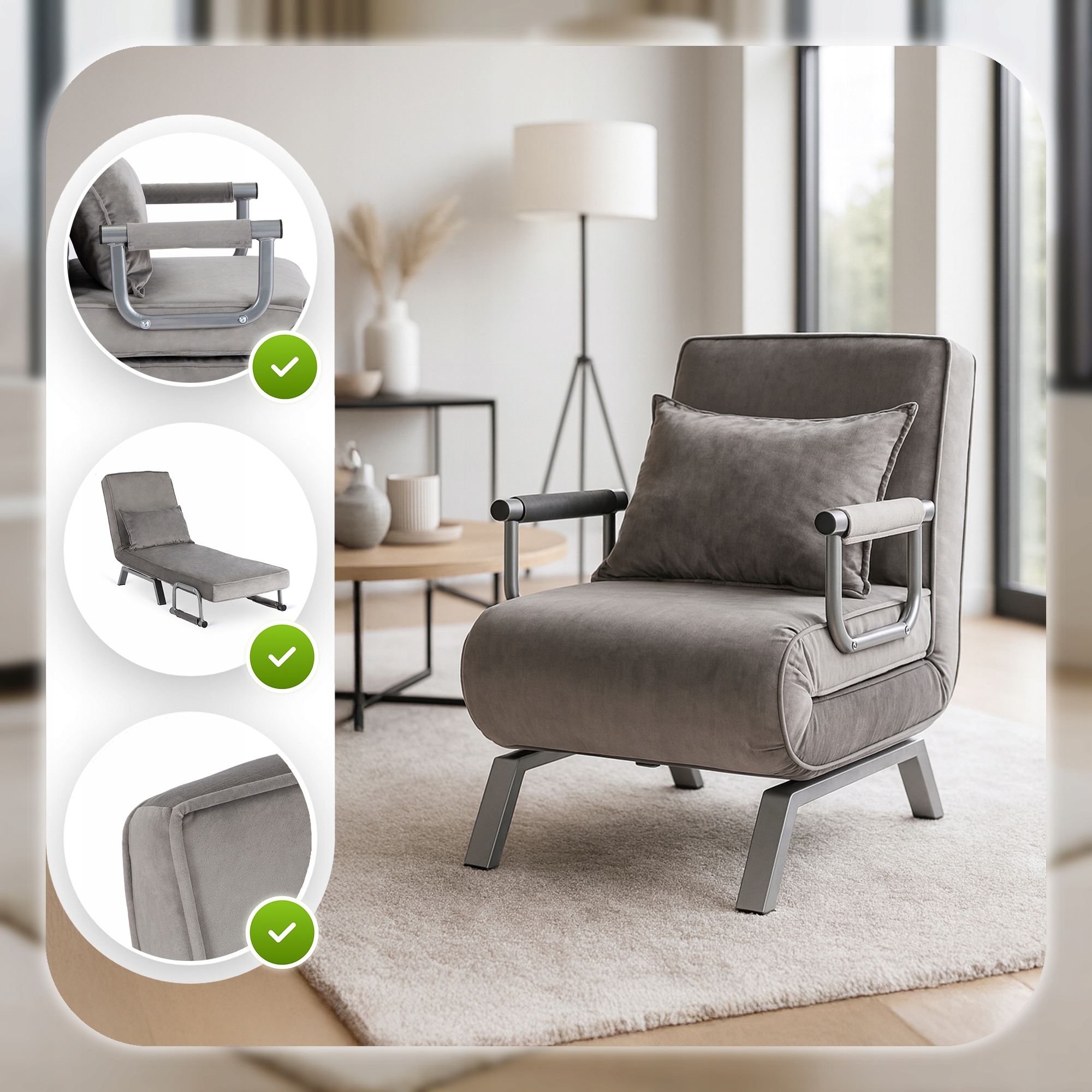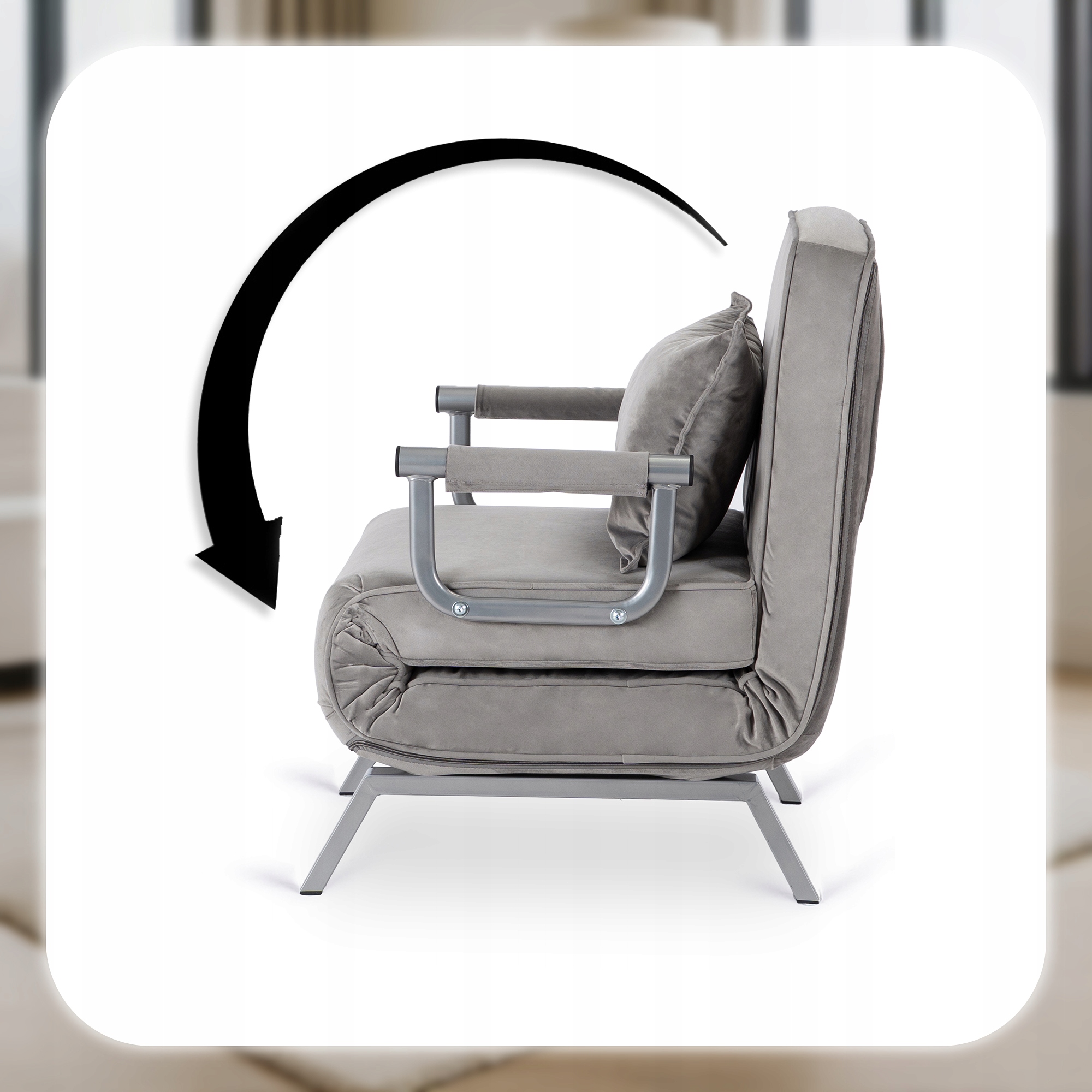 ✨ Fotel Rozkładany Do Spania Salonu Leżanka Jednoosobowa Welurowa Szary BART