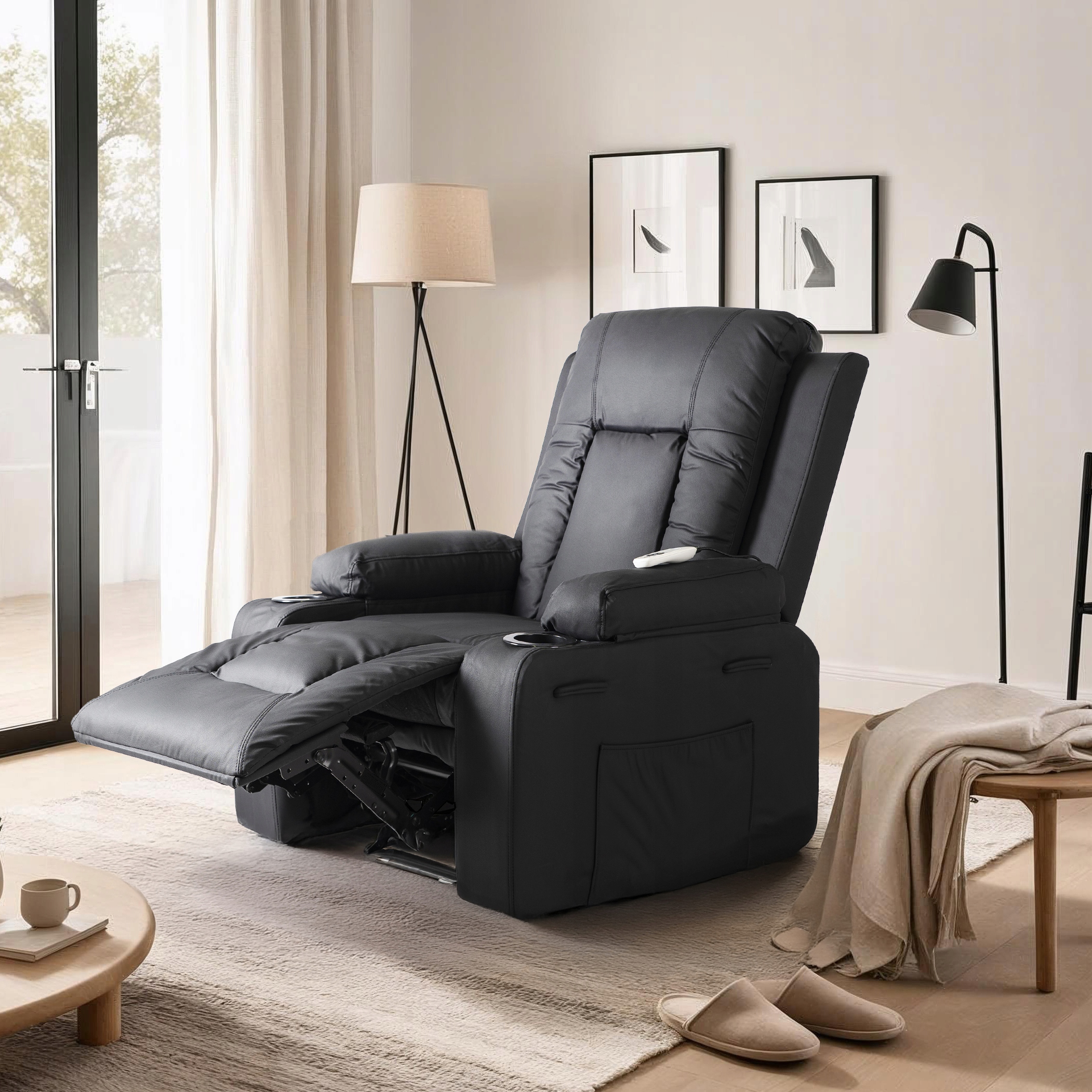 Fotel Masujący Rozkładany Wypoczynkowy Do Salonu z Podnóżkiem Czarny BOX ⭐⭐⭐⭐⭐