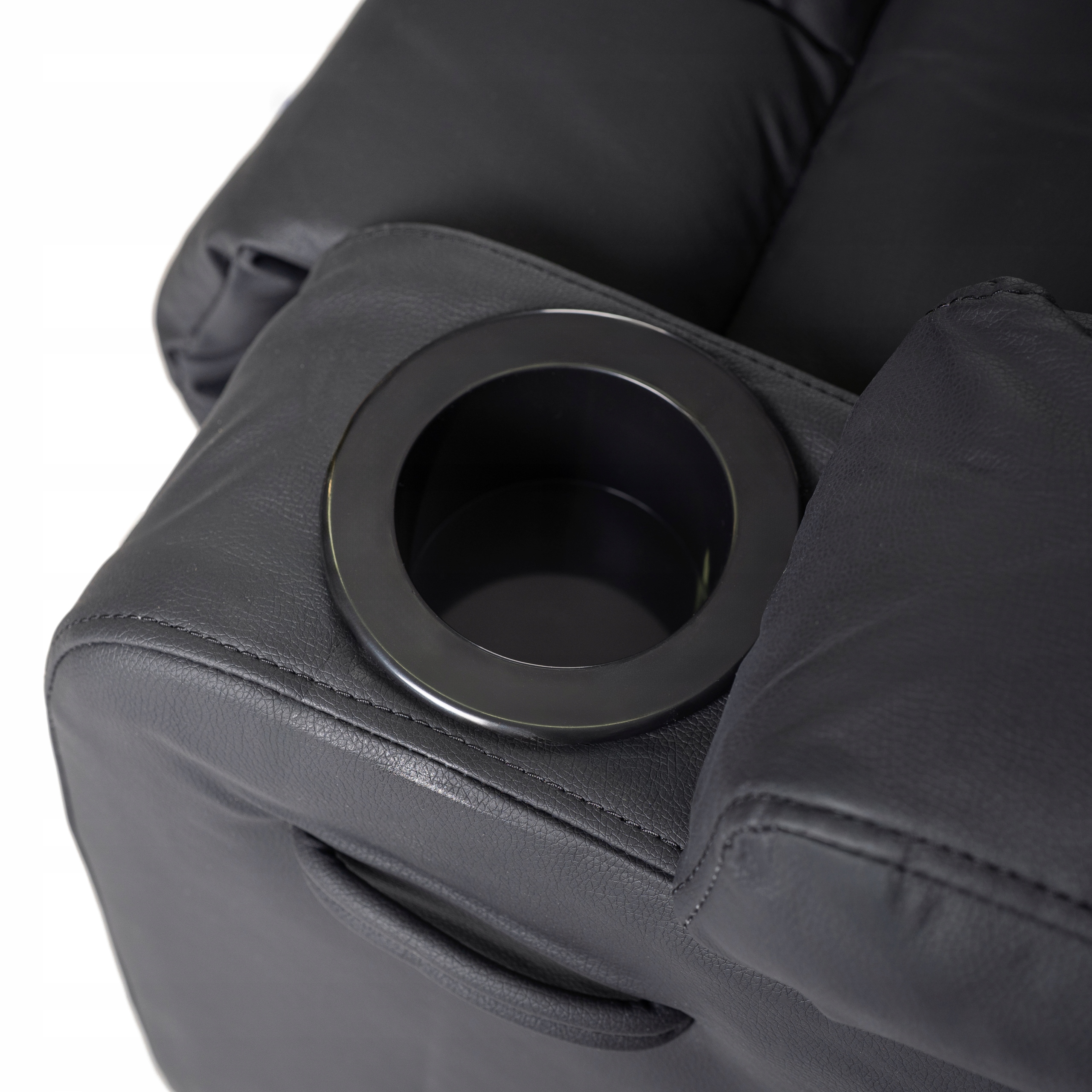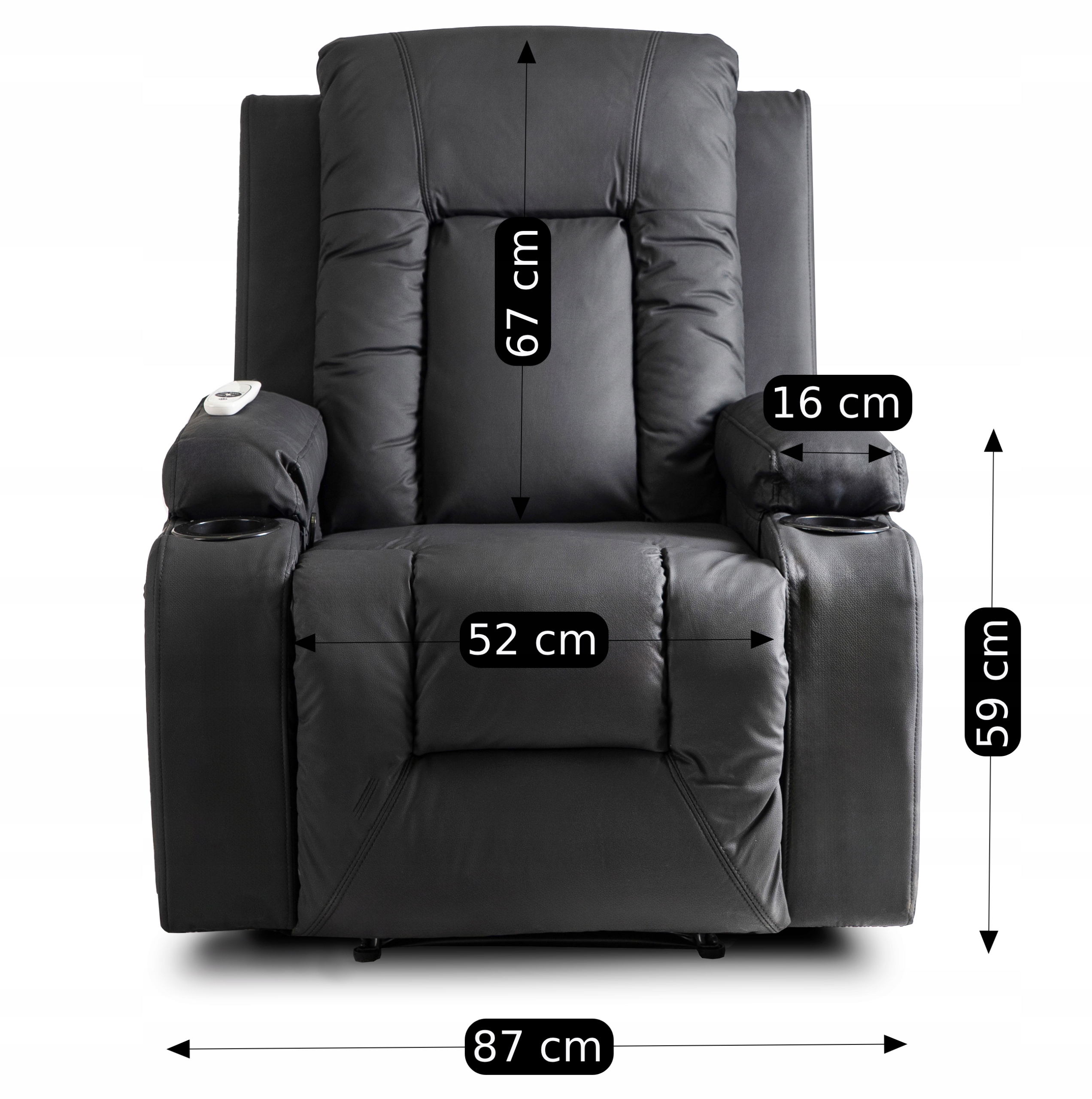 ✨ Fotel BOX to doskonałe połączenie nowoczesnego designu z wygodą. Jest rozkładany do pozycji półleżącej i posiada sterowaną pilotem funkcję masażu. Ma wypełnienie z grubej warstwy pianki tapicerskiej, więc jest miękki i siedzi bądź leży się w nim naprawdę komfortowo. Fotel pokryty jest wysokiej jakości skórą ekologiczną w czarnym kolorze, która dodaje elegancji.