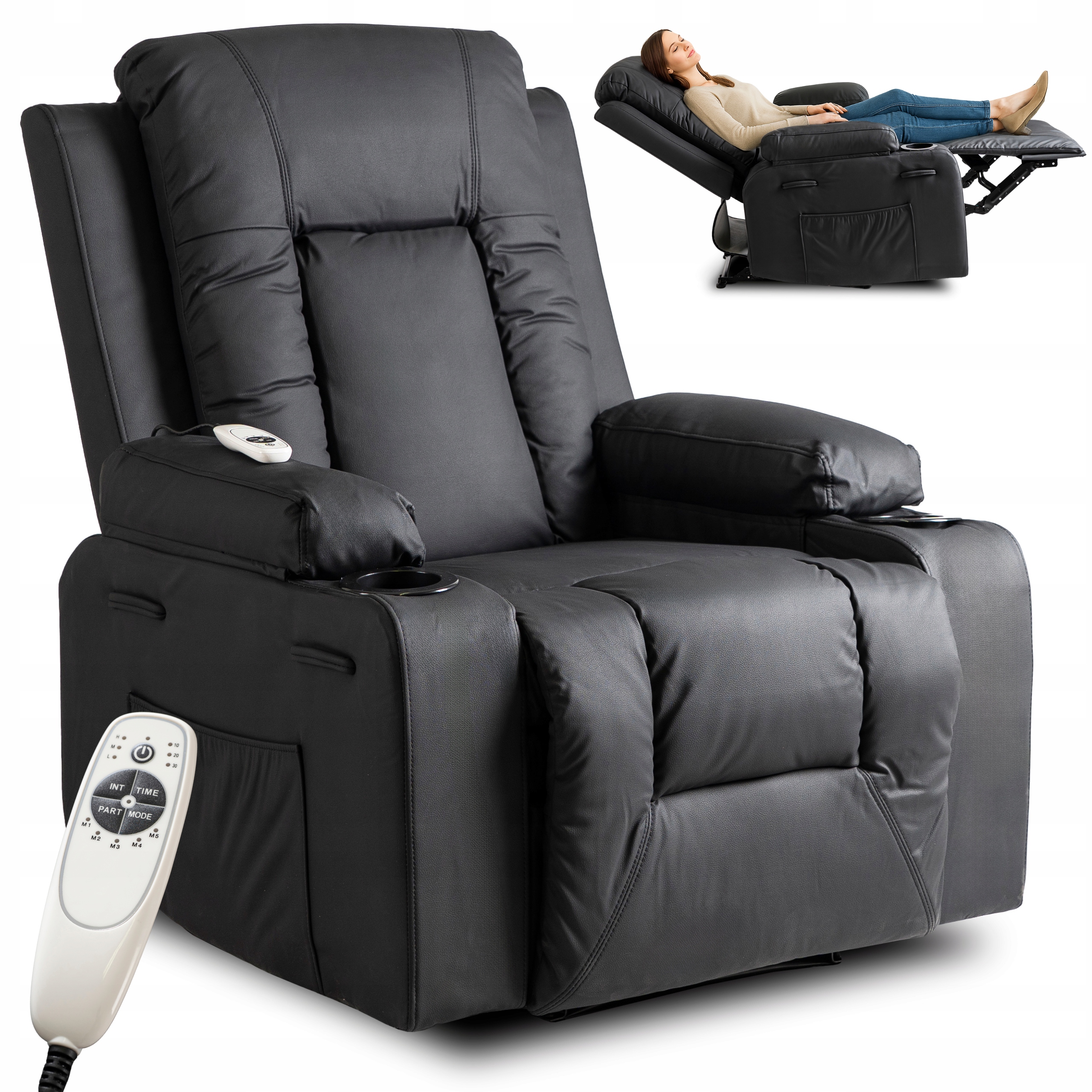 - Fotel rozkładany z funkcją masażu BOX w kolorze czarny