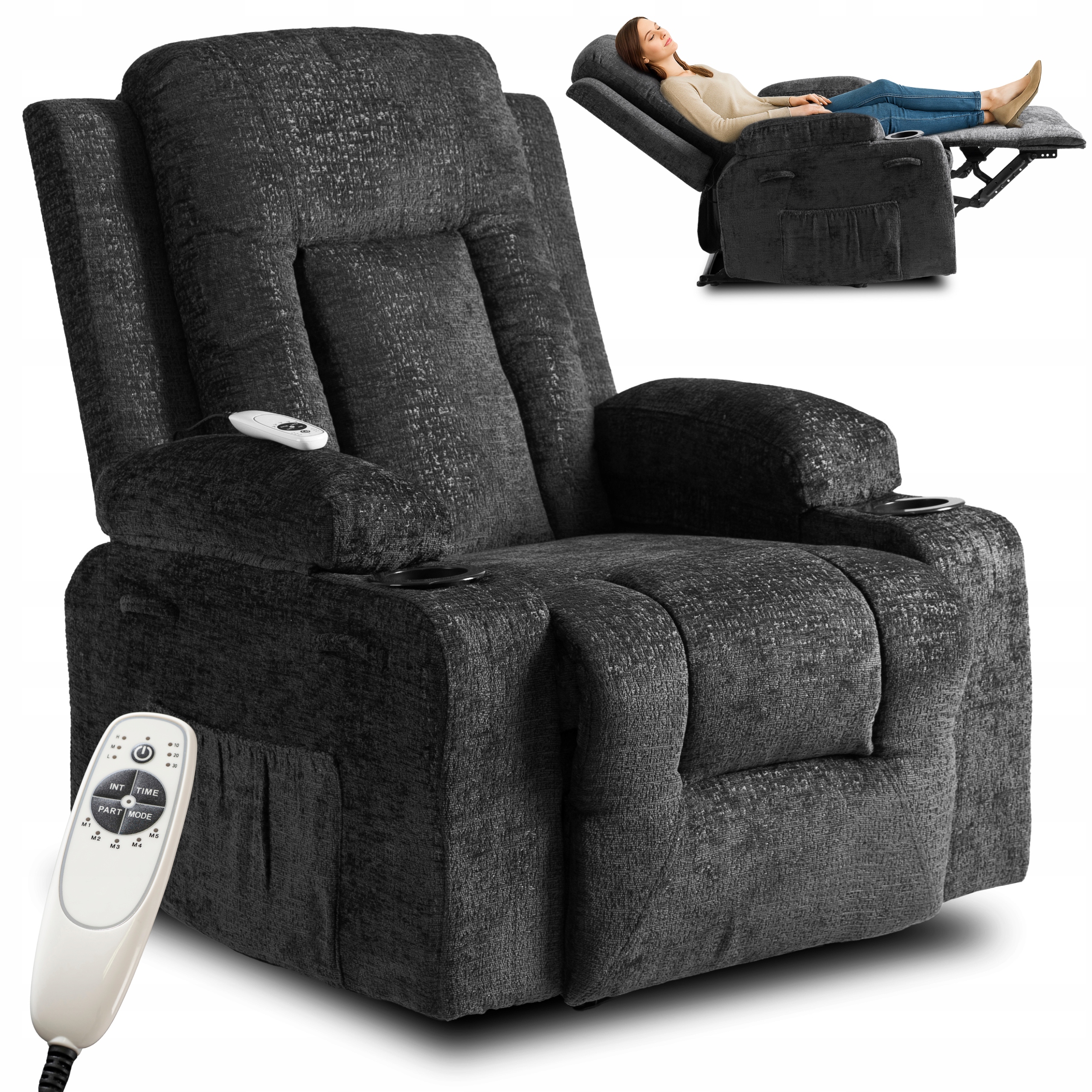 - Fotel rozkładany z funkcją masażu BOX w kolorze czarny