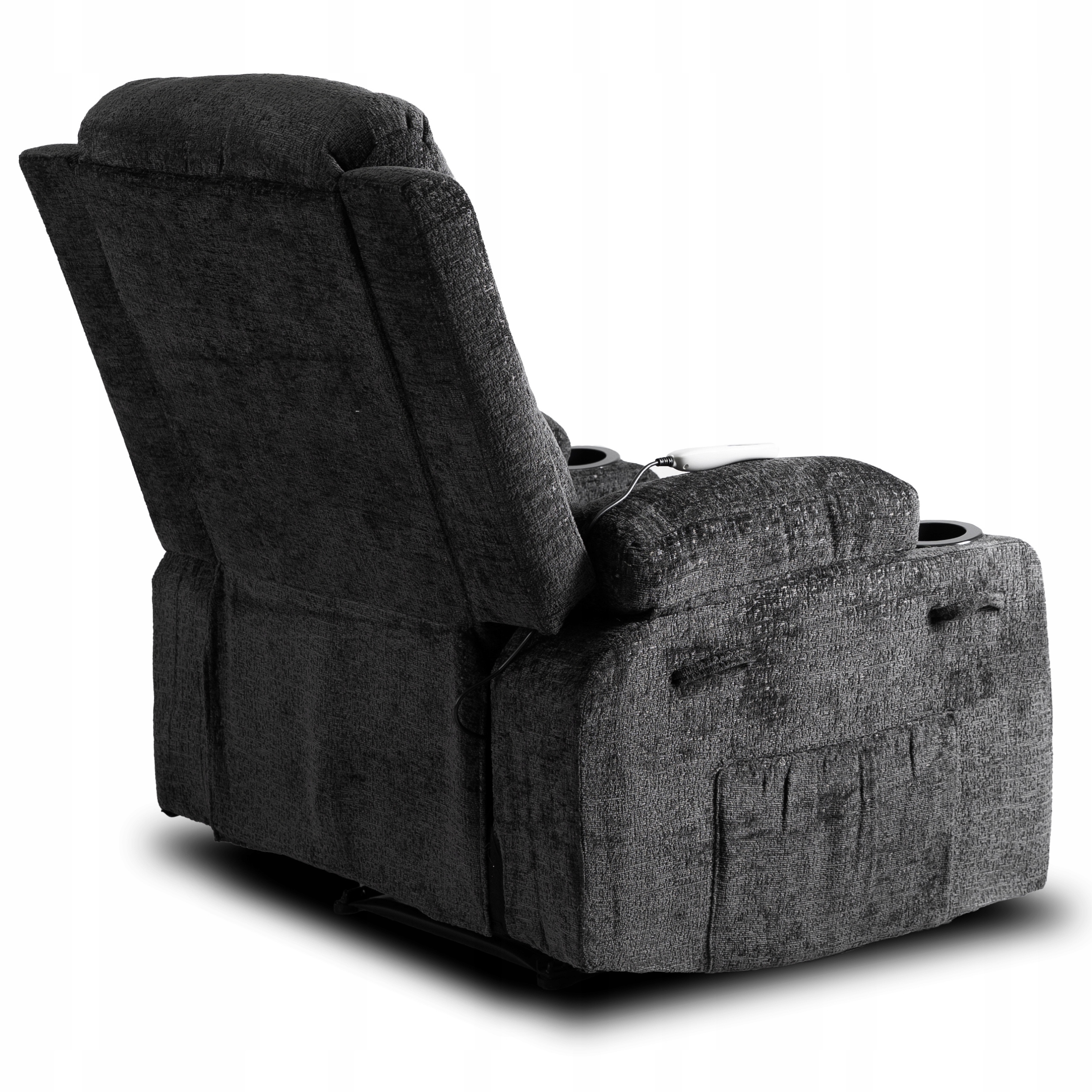 ✨ Fotel BOX to doskonałe połączenie nowoczesnego designu z wygodą. Jest rozkładany do pozycji półleżącej i posiada sterowaną pilotem funkcję masażu. Ma wypełnienie z grubej warstwy pianki tapicerskiej, więc jest miękki i siedzi bądź leży się w nim naprawdę komfortowo. Fotel pokryty jest wysokiej jakości tkaniną welurową w czarnym kolorze, która dodaje elegancji.