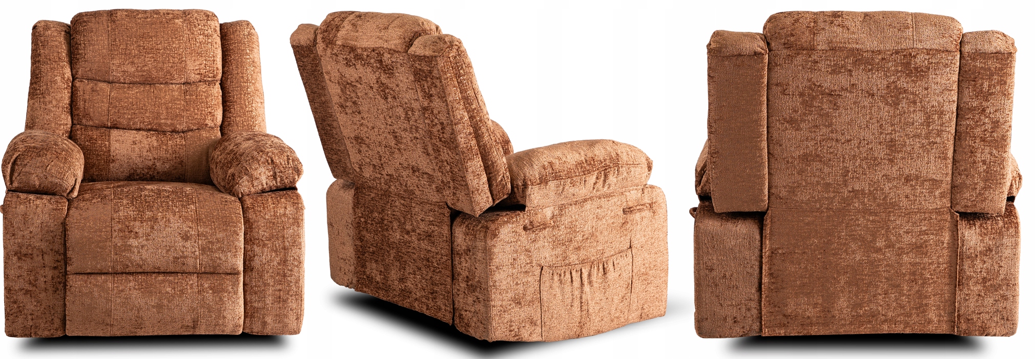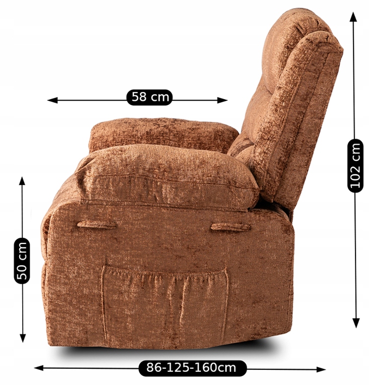 ✨ Z boku fotela znajduje się pojemna kieszeń na pilota, książkę lub inne drobiazgi.