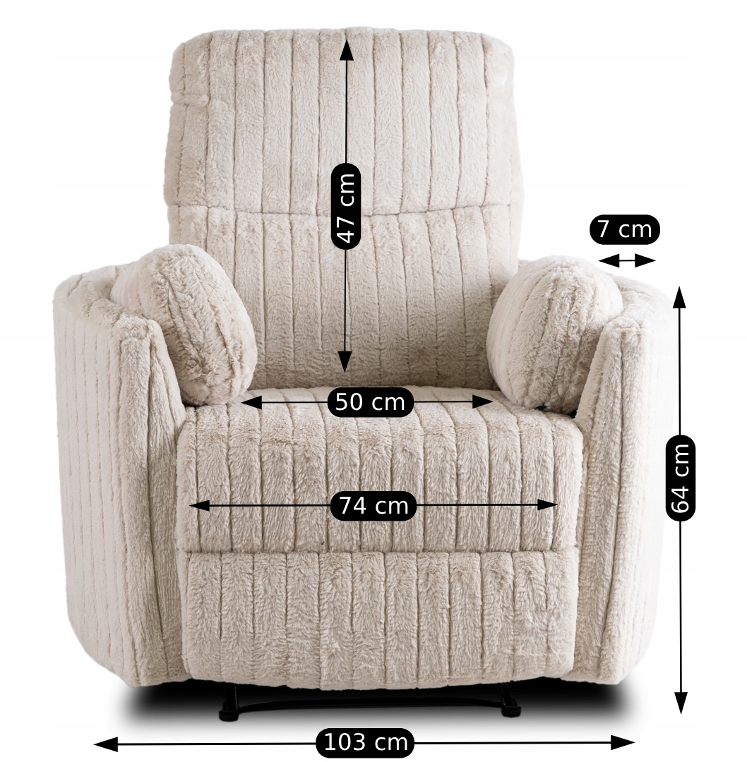 Fotel rozkładany to wygodny i stylowy mebel z 3 pozycjami rozłożenia, idealny do relaksu. Tapicerowany bardzo przyjemną i przytulną tkaniną pluszową, świetnie sprawdza się w codziennym użytkowaniu.