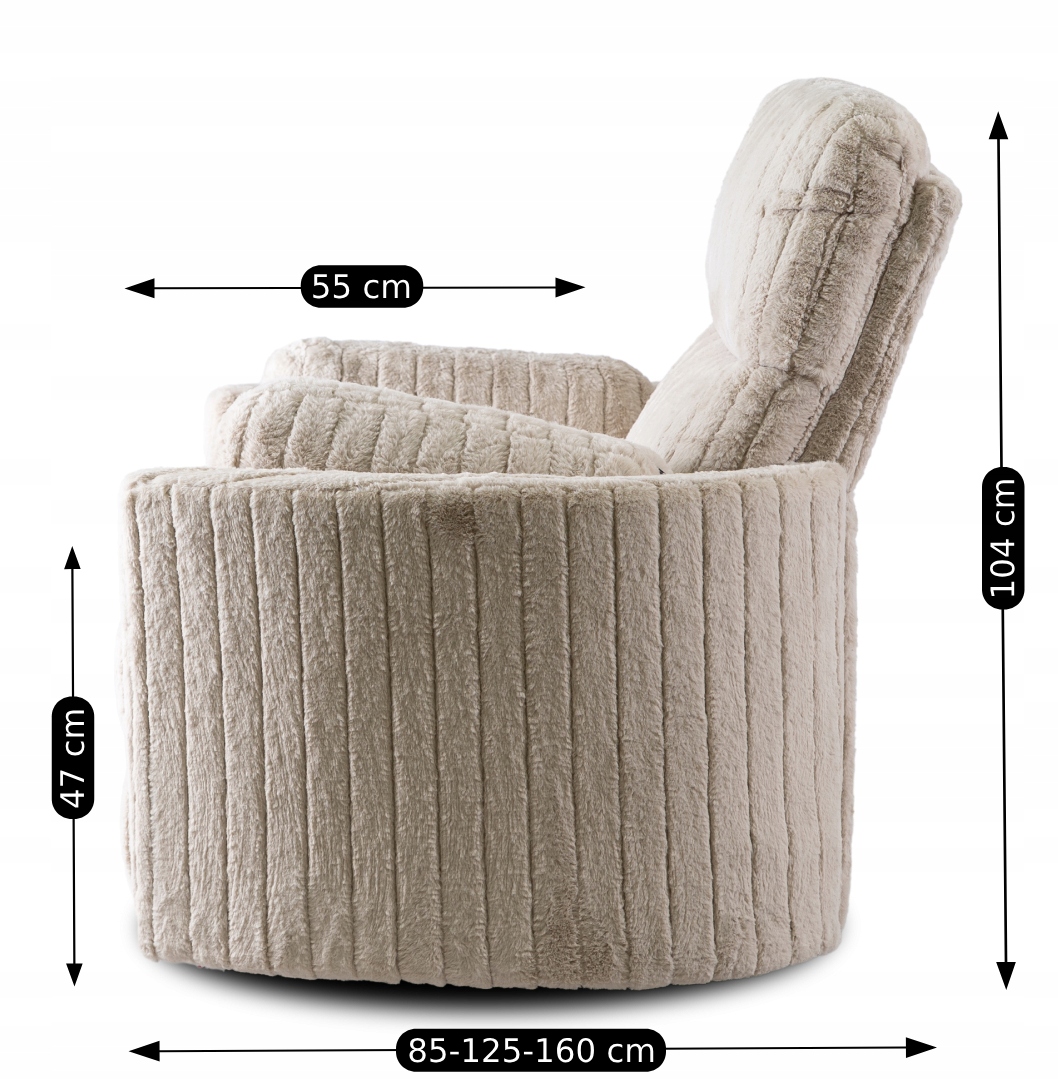 Pluszowy materiał z miękkimi włoskami sprawia, że fotel prezentuje się elegancko i nowocześnie. Tkanina nie tylko świetnie wygląda, ale również jest praktyczna – łatwa do utrzymania w czystości i odporna na codzienne użytkowanie.