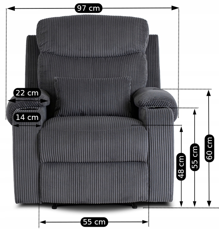 Fotel rozkładany to wygodny i stylowy mebel z 3 pozycjami rozłożenia, idealny do relaksu. Wykonany z wytrzymałej, miękkiej w dotyku tkaniny sztruksowej, świetnie sprawdza się w codziennym użytkowaniu.