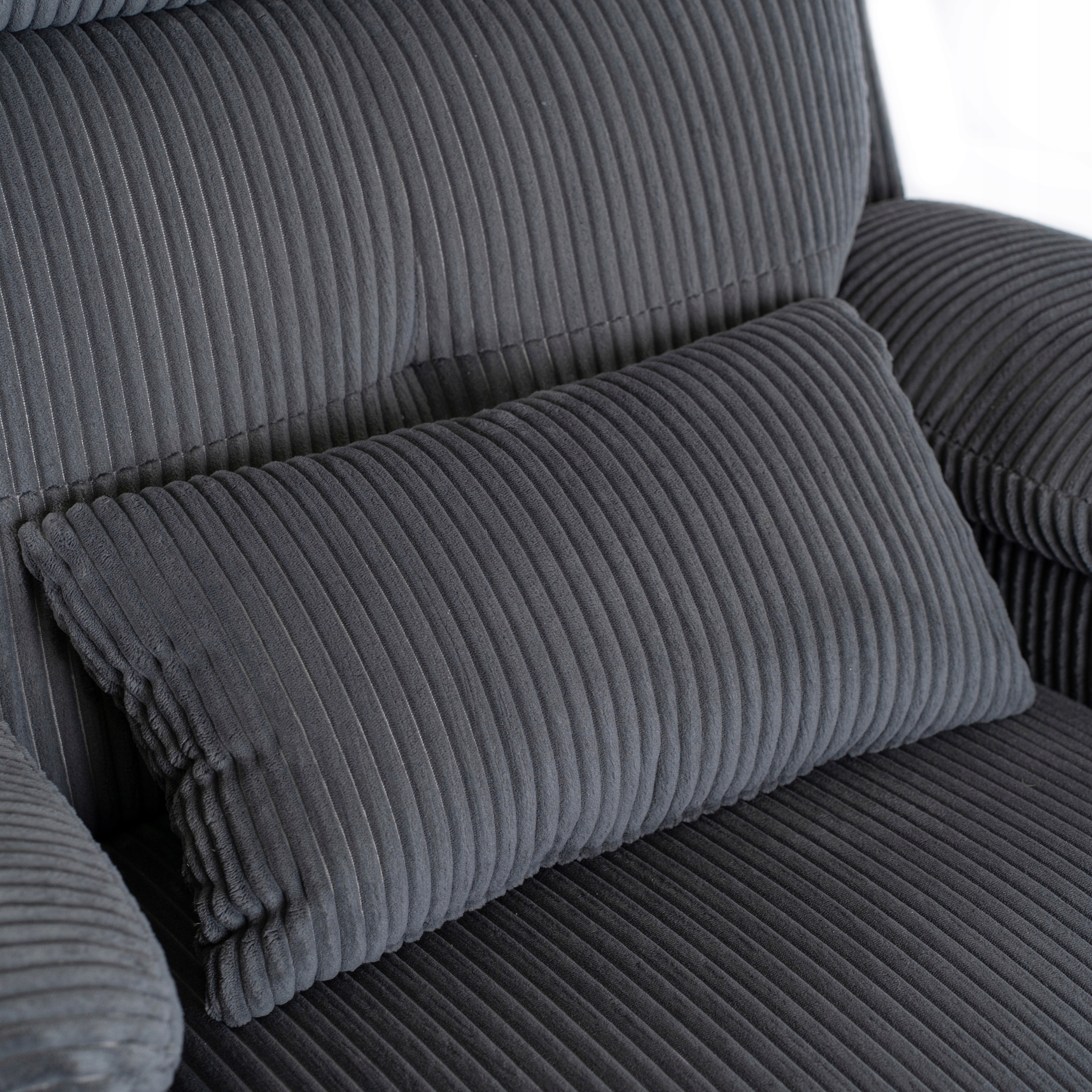 ⭐ Fotel wykonany jest z wysokiej jakości tkaniny sztruksowej łatwej do czyszczenia. To idealny wybór dla rodzin z dziećmi i właścicieli zwierząt. Miękka poduszka pod odcinek lędźwiowy zapewnia dodatkowy komfort podczas siedzenia.