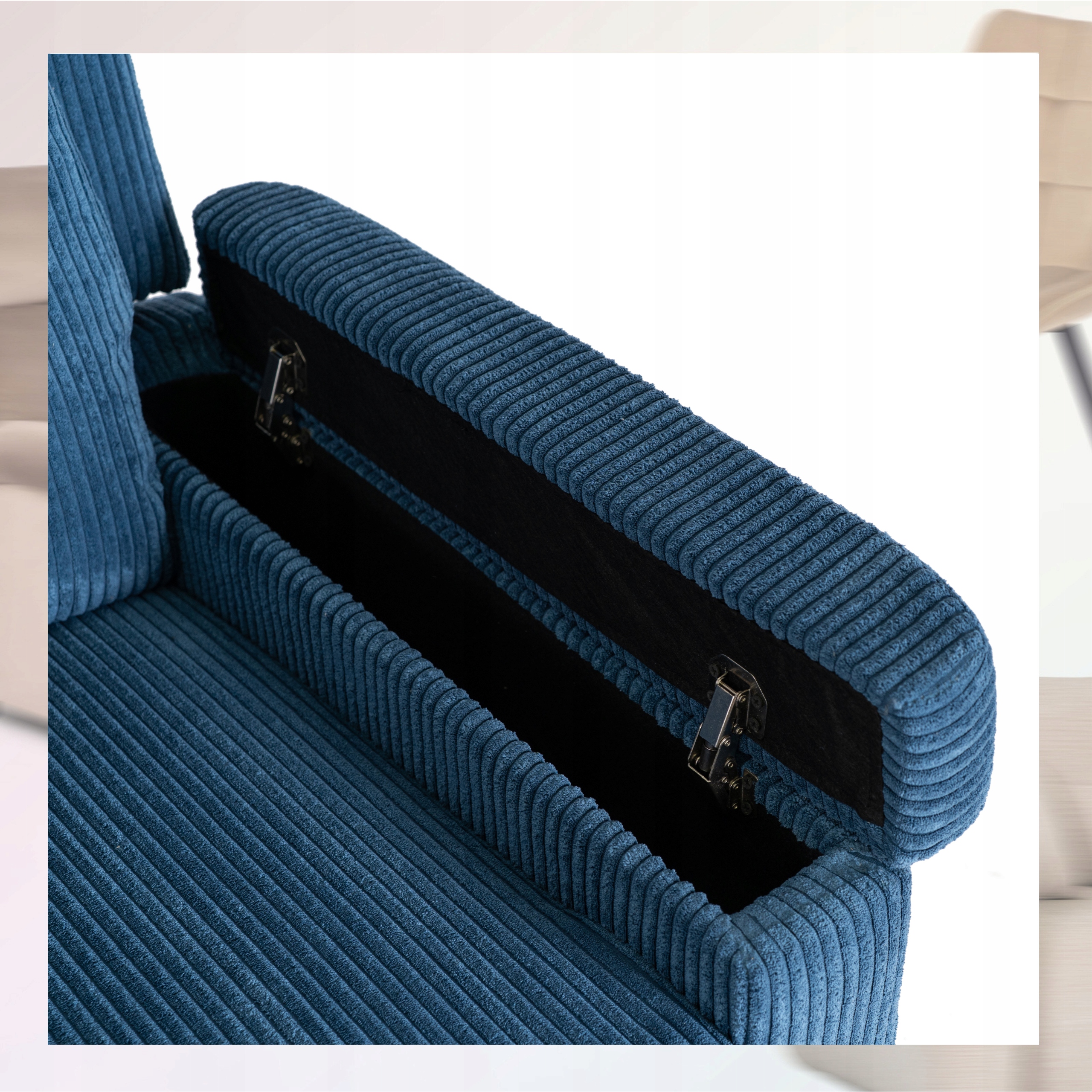 ⭐ Podłokietniki można otworzyć, uzyskując wtedy dostęp do schowków.