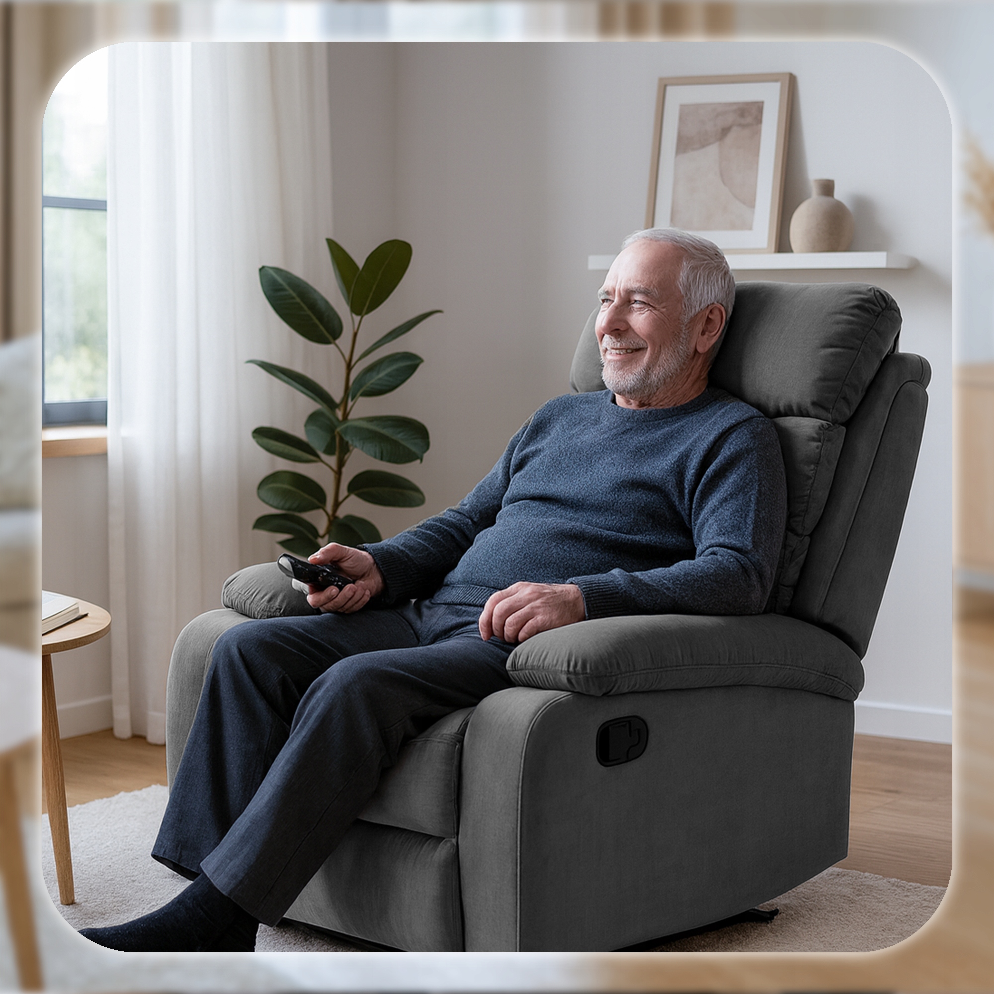✅ To bardzo proste – wystarczy pociągnąć za boczną wajchę i lekko oprzeć się na oparciu. Podnóżek uniesie się automatycznie, a oparcie płynnie się rozłoży. Nie potrzeba prądu ani dodatkowych akcesoriów.
