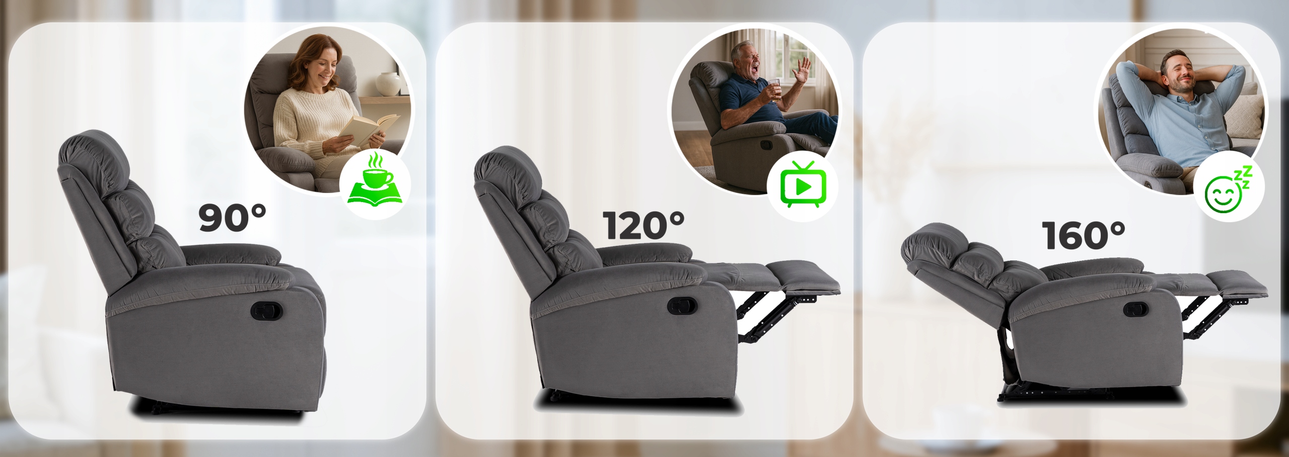 - Trzy poziomy rozkładania– wybierz idealną pozycję: do czytania, oglądania TV czy drzemki.