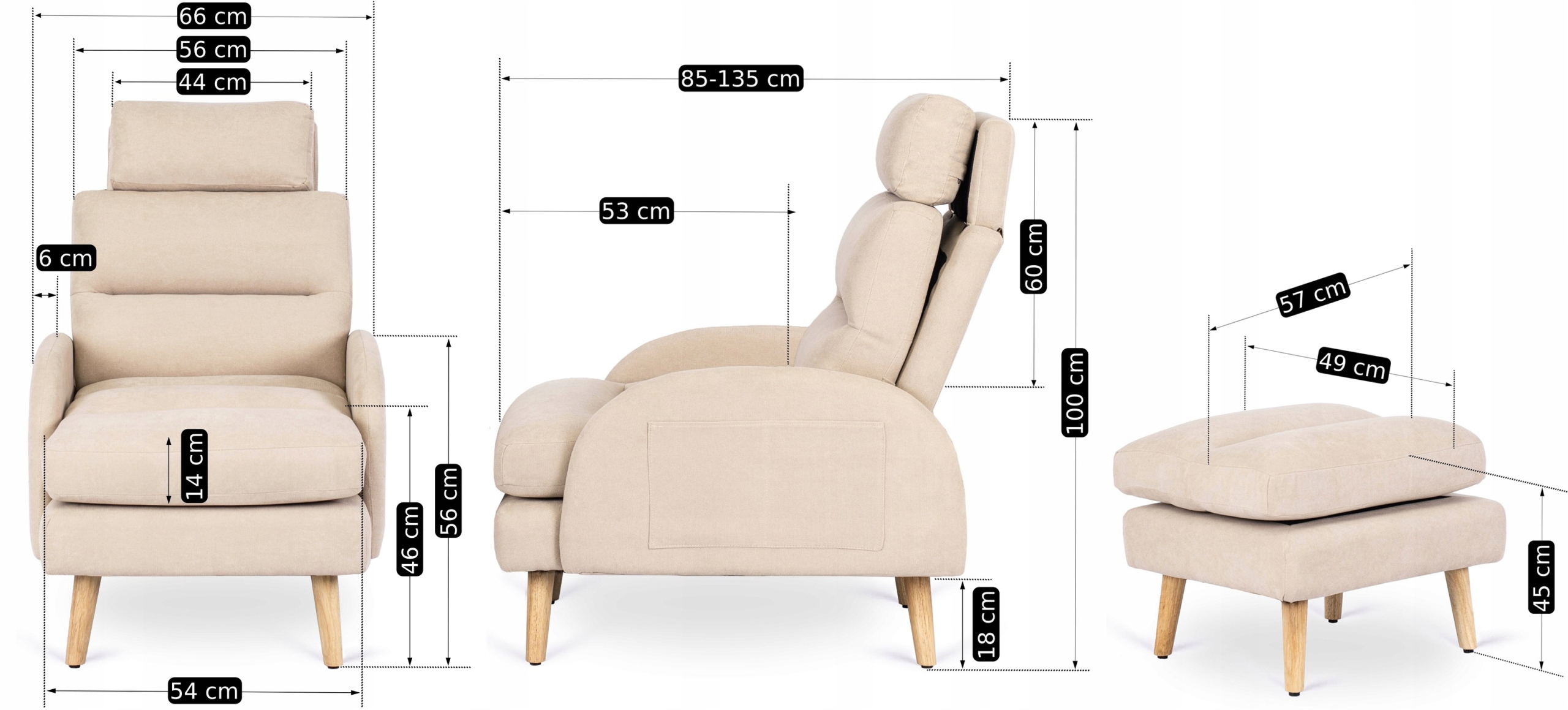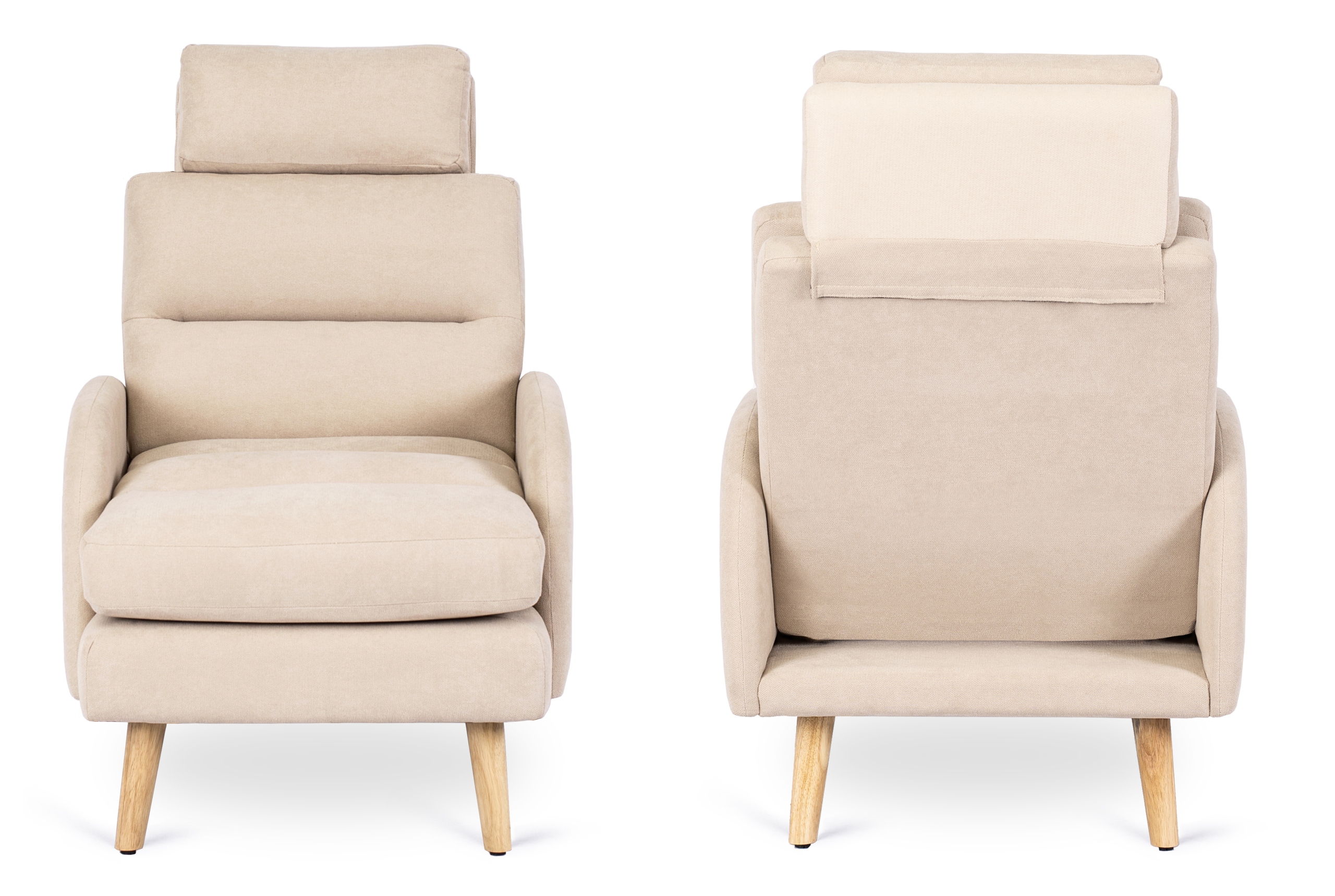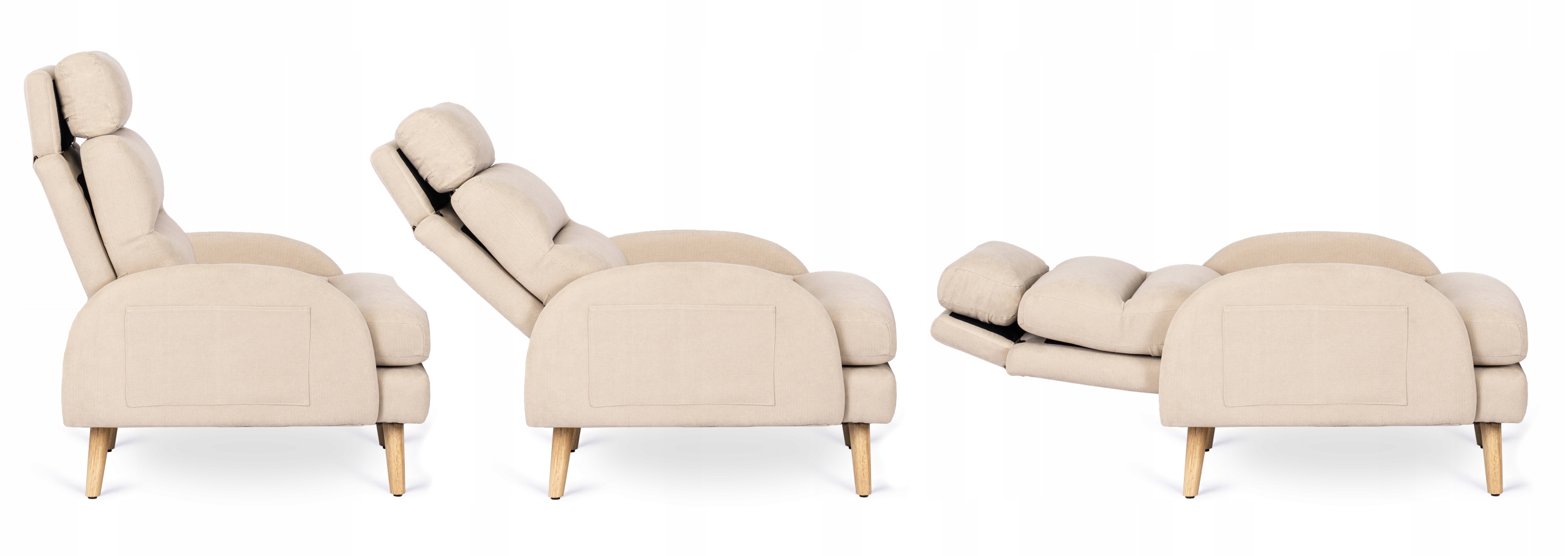 Pozycja półsiedząca z lekko odchylonym oparciem – perfekcyjna do czytania, oglądania TV czy popołudniowej drzemki. Miękkie wypełnienie fotela otula ciało a drewniany stelaż zapewnia stabilność i wygodę użytkowania.