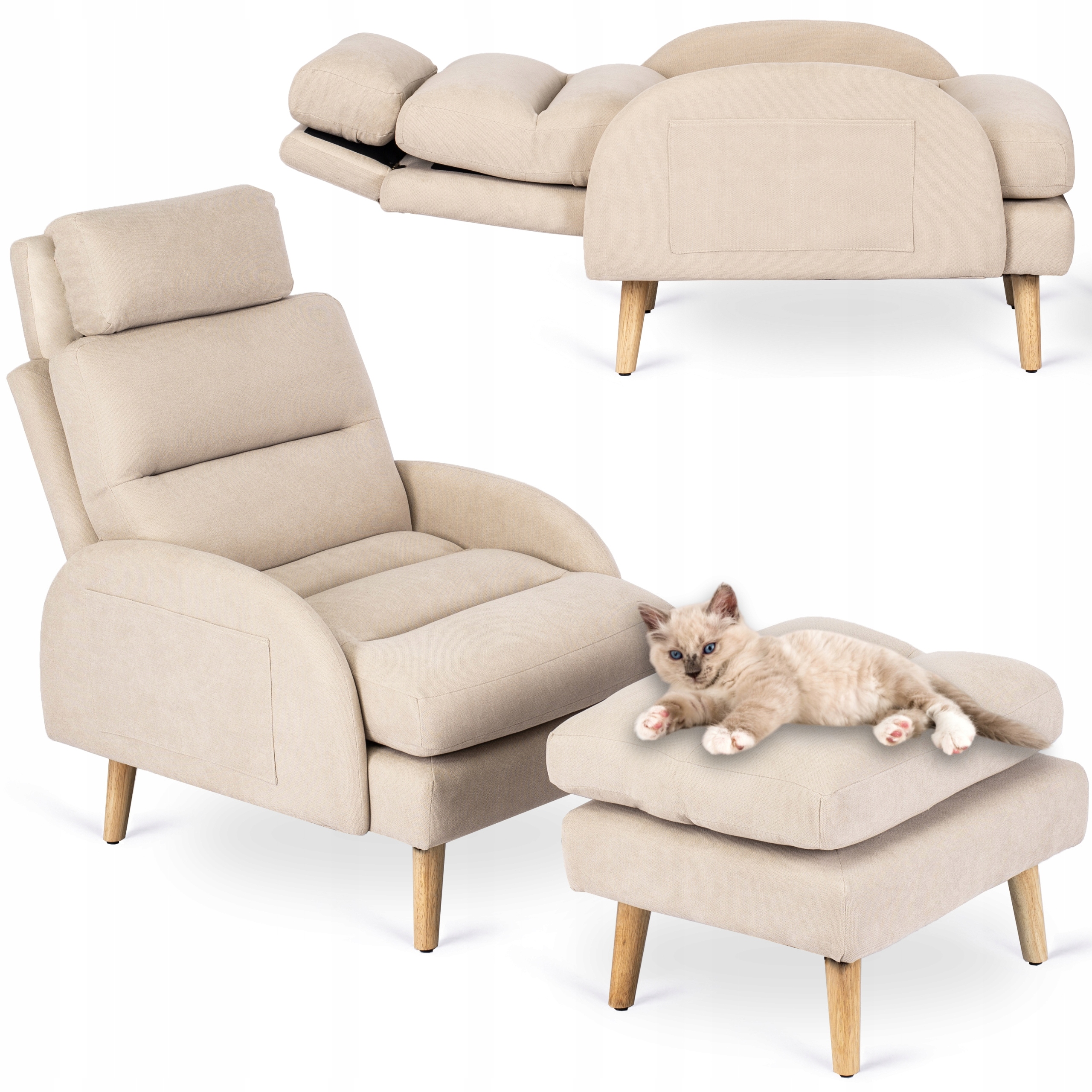 Fotel Rozkładany Wypoczynkowy z Podnóżkiem Wygodny Do Spania HENRY Beżowy ⭐⭐⭐⭐⭐