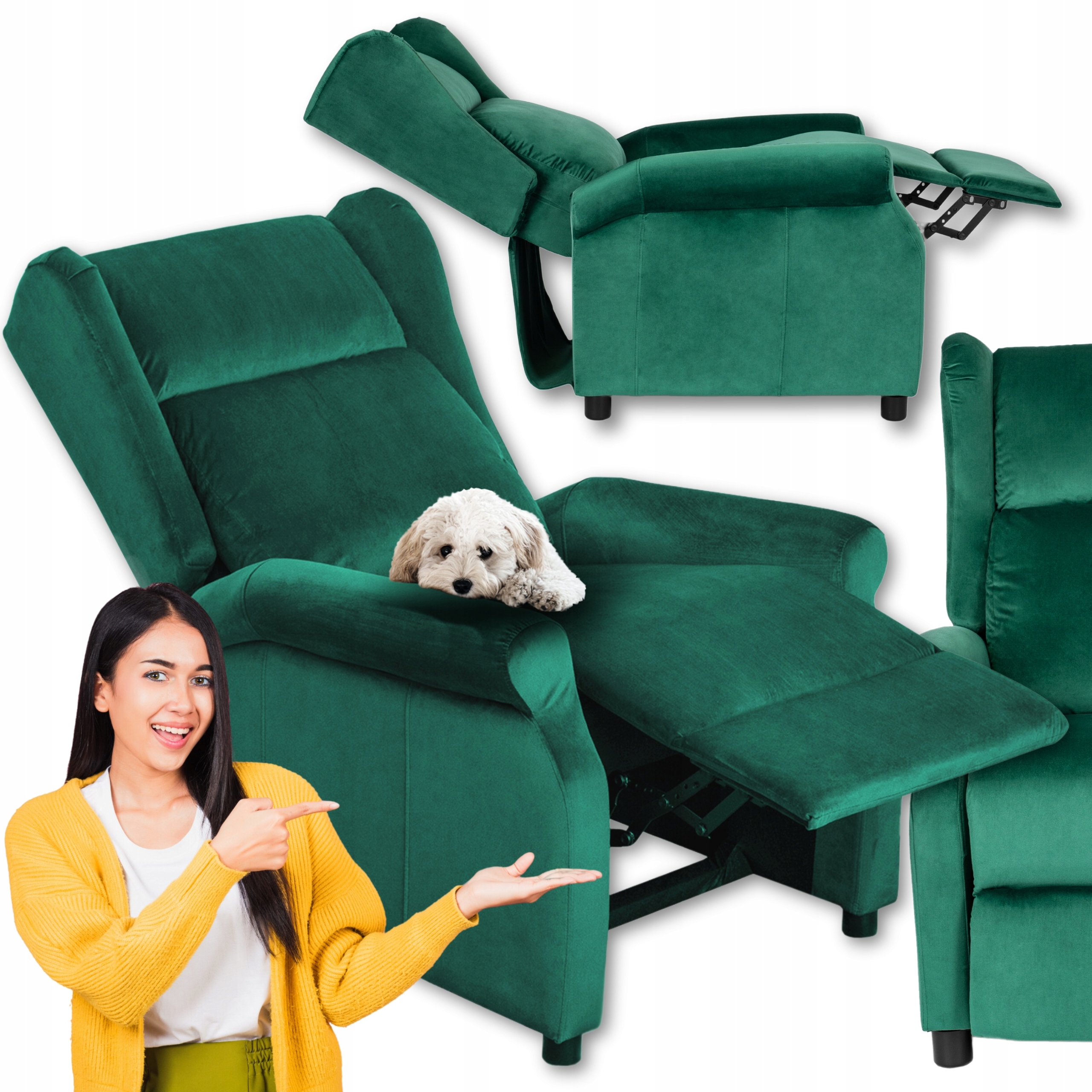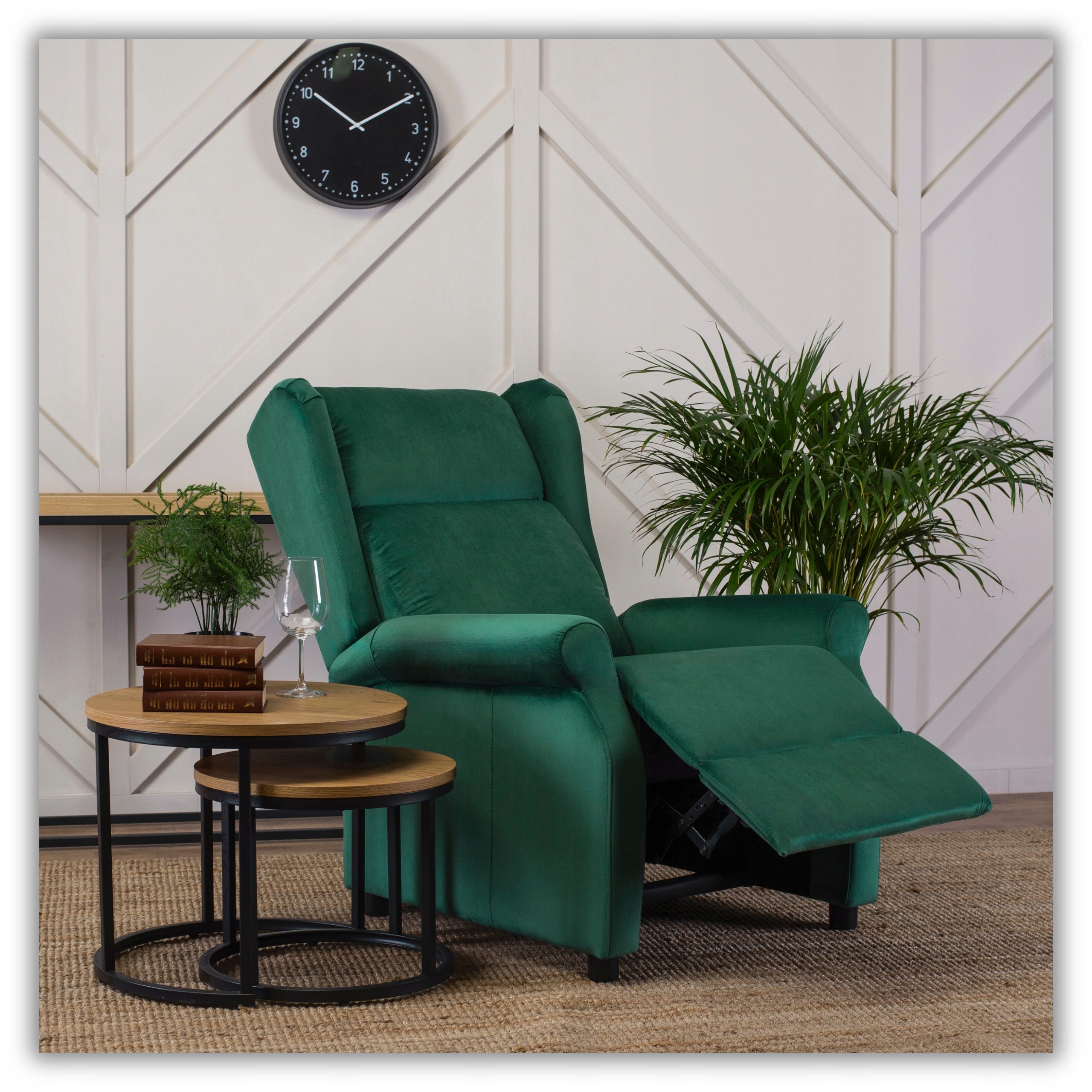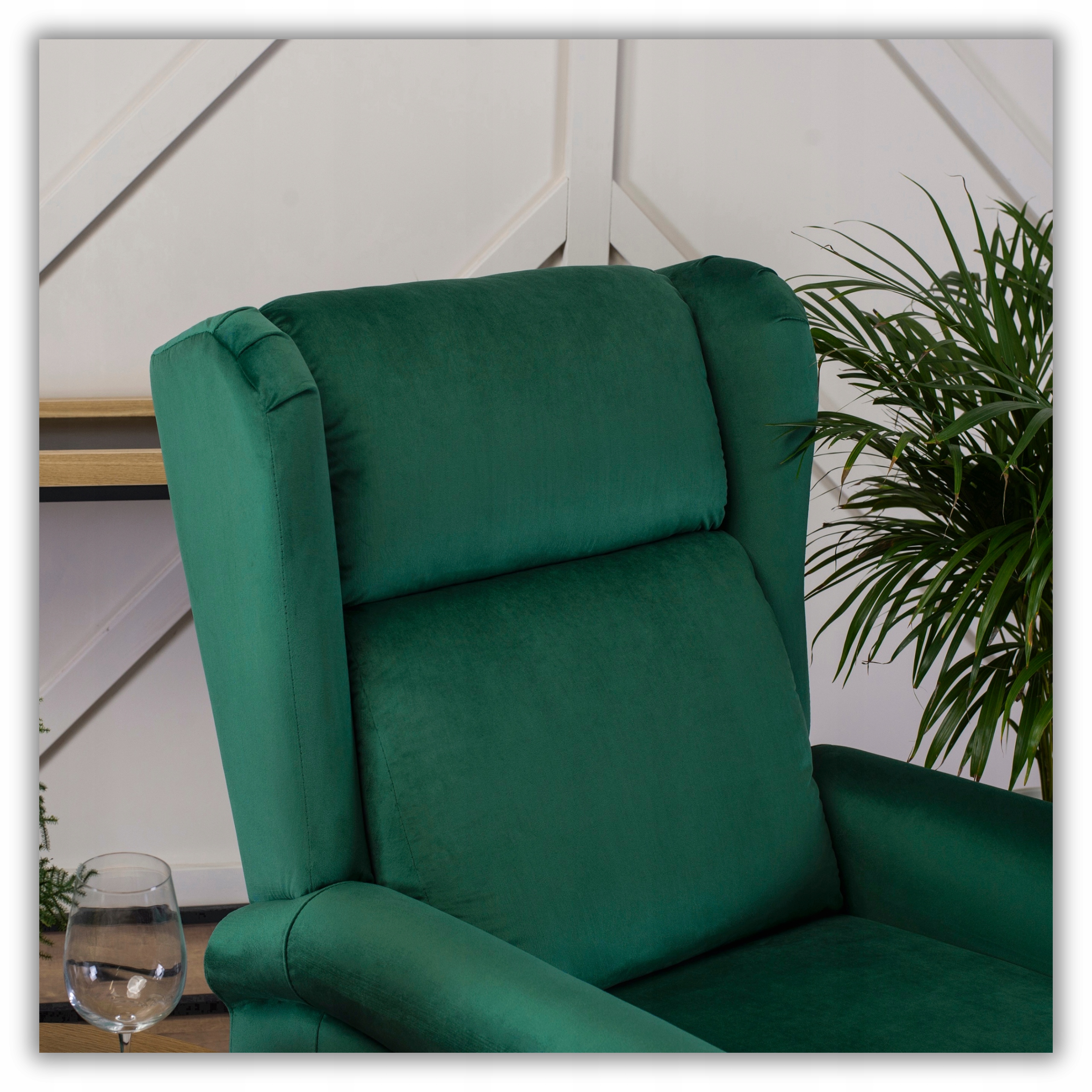 Fotel Wypoczynkowy Rozkładany Uszak Do Salonu Loft Welurowy Zielony SIMON ⭐⭐⭐⭐⭐
