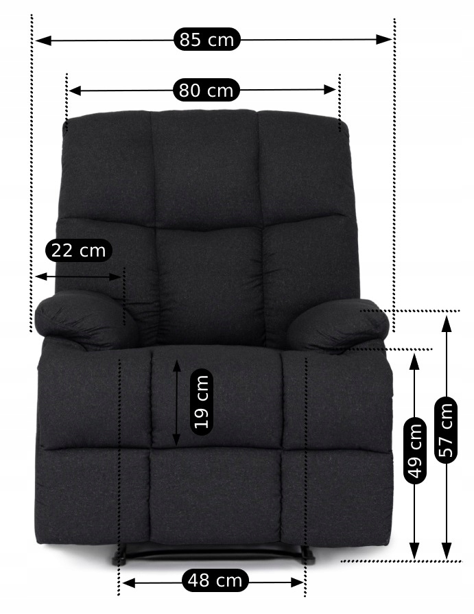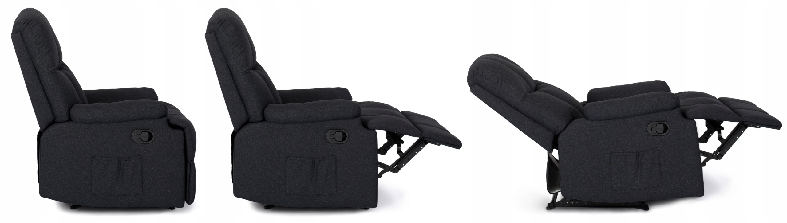 Rozkładanie fotela jest bardzo proste. W celu rozłożenia oparcia należy pociągnąć za czarny uchwyt znajdujący się po zewnętrznej stronie boku fotela, który spowoduje jego rozłożenie oraz uniesienie podnóżka.