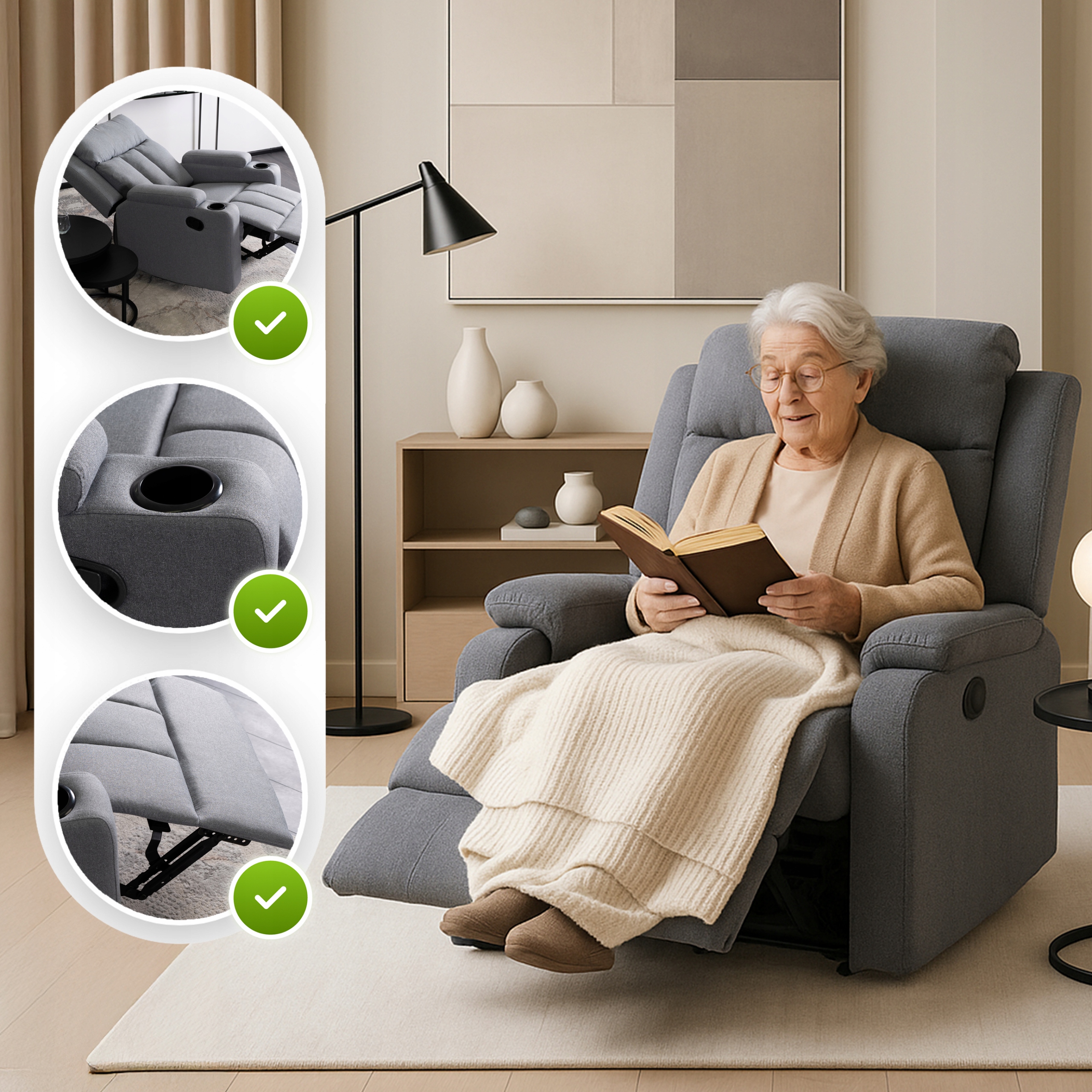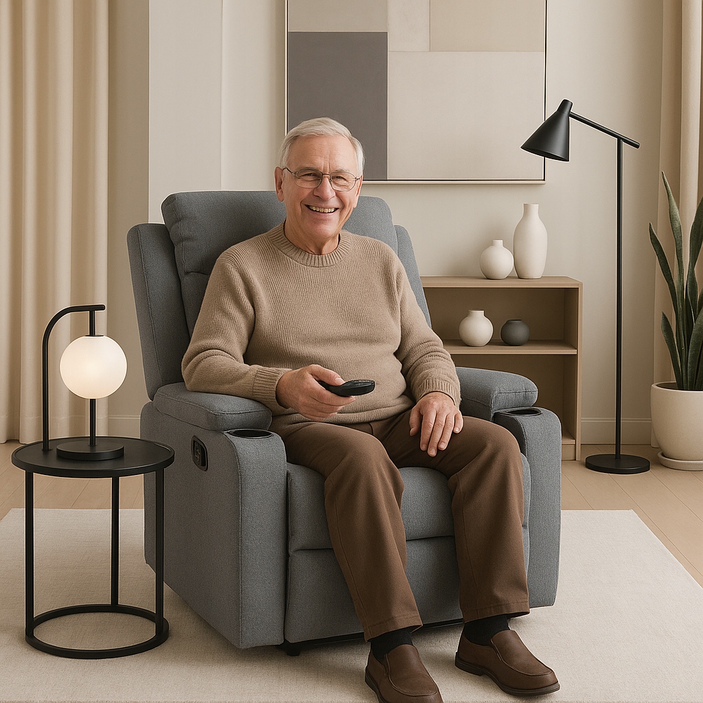 - W sypialni seniora – miękkie oparcie, stabilna konstrukcja i funkcja rozkładania czynią go bezpiecznym i komfortowym rozwiązaniem dla osób starszych.
