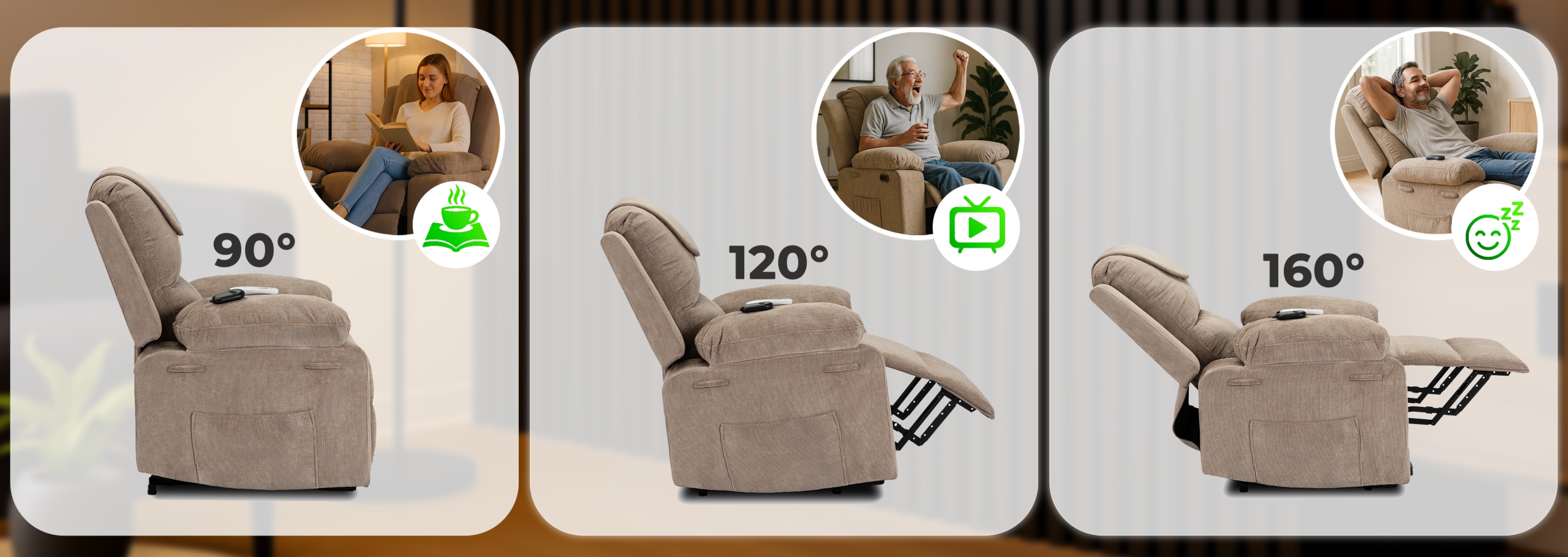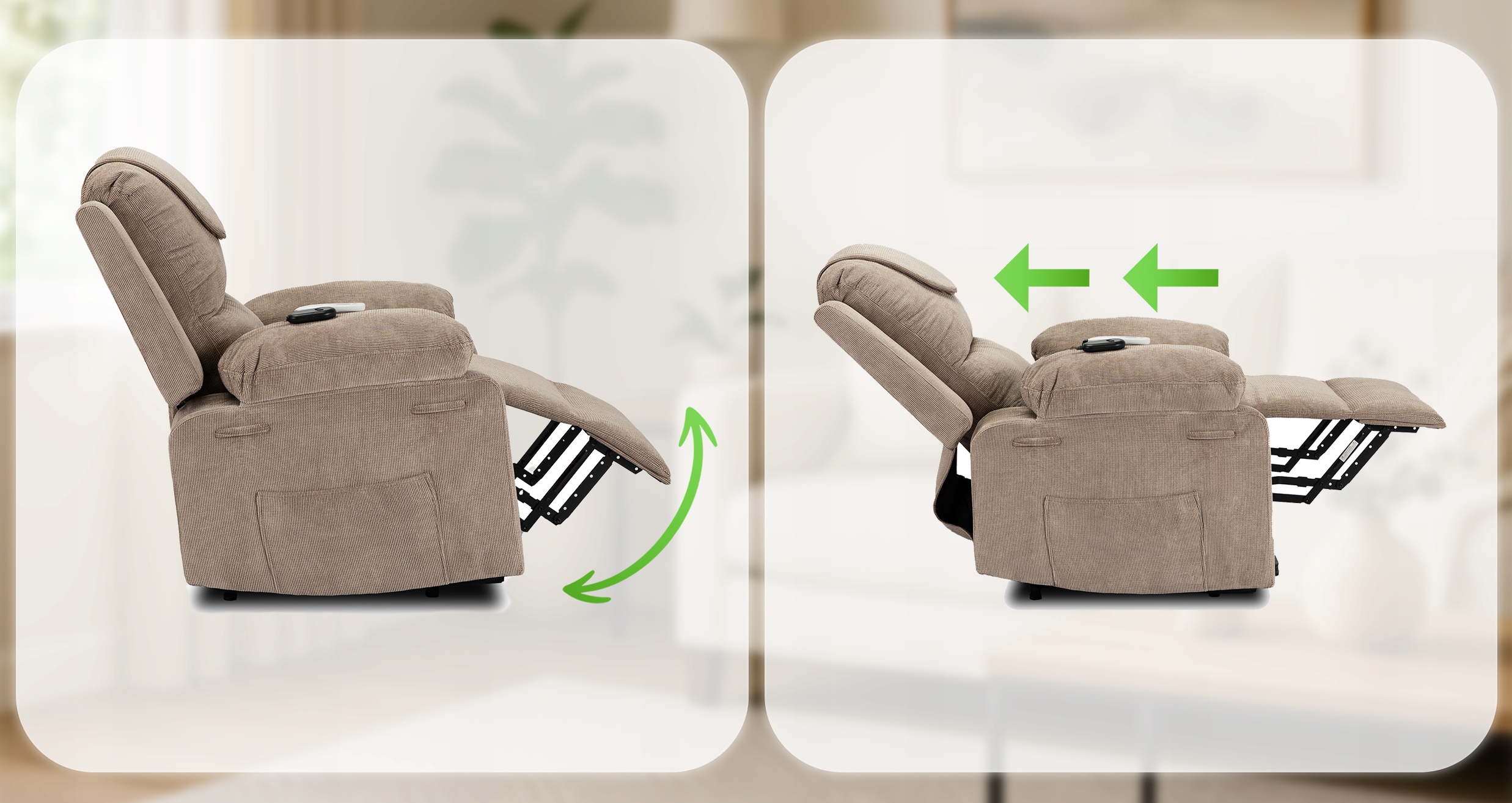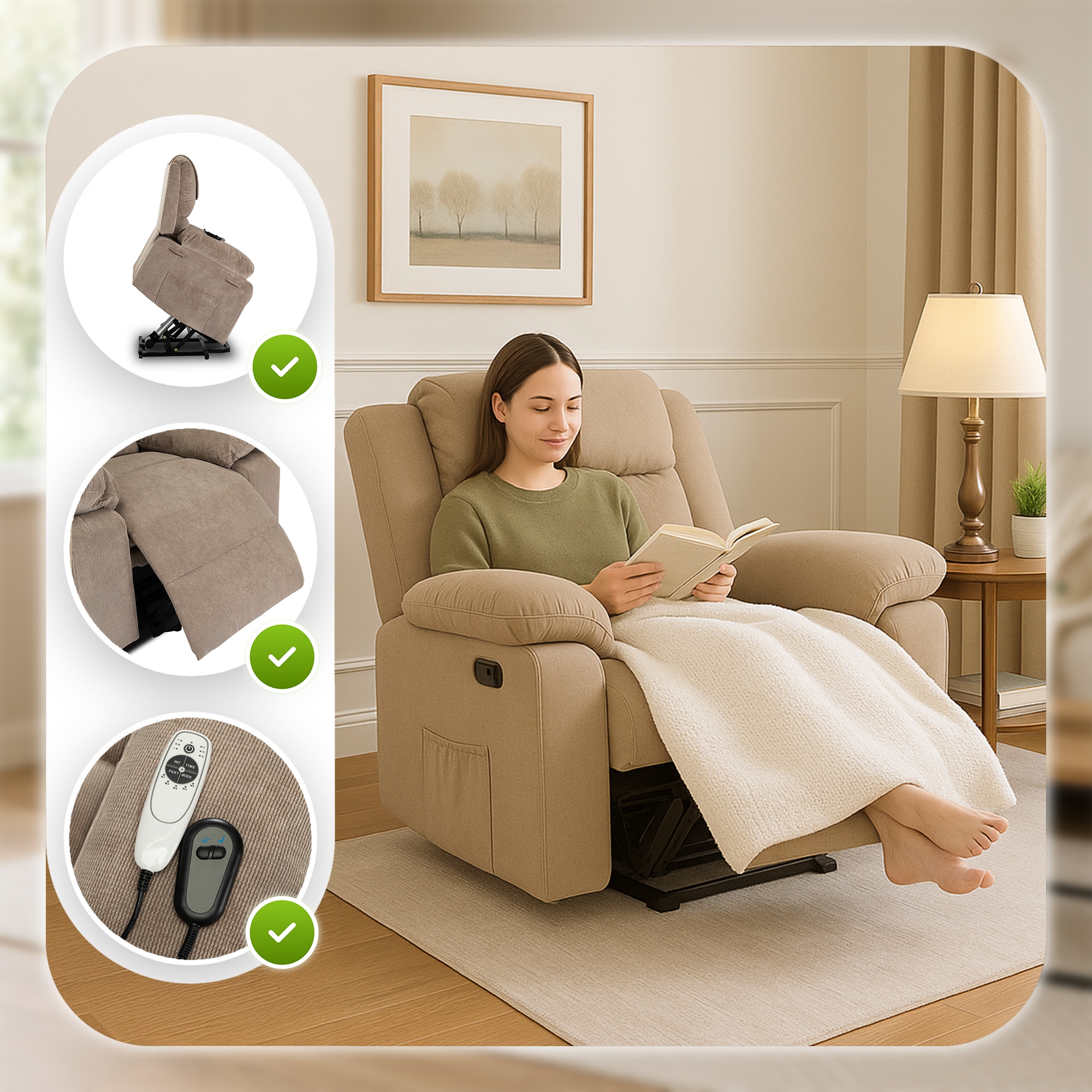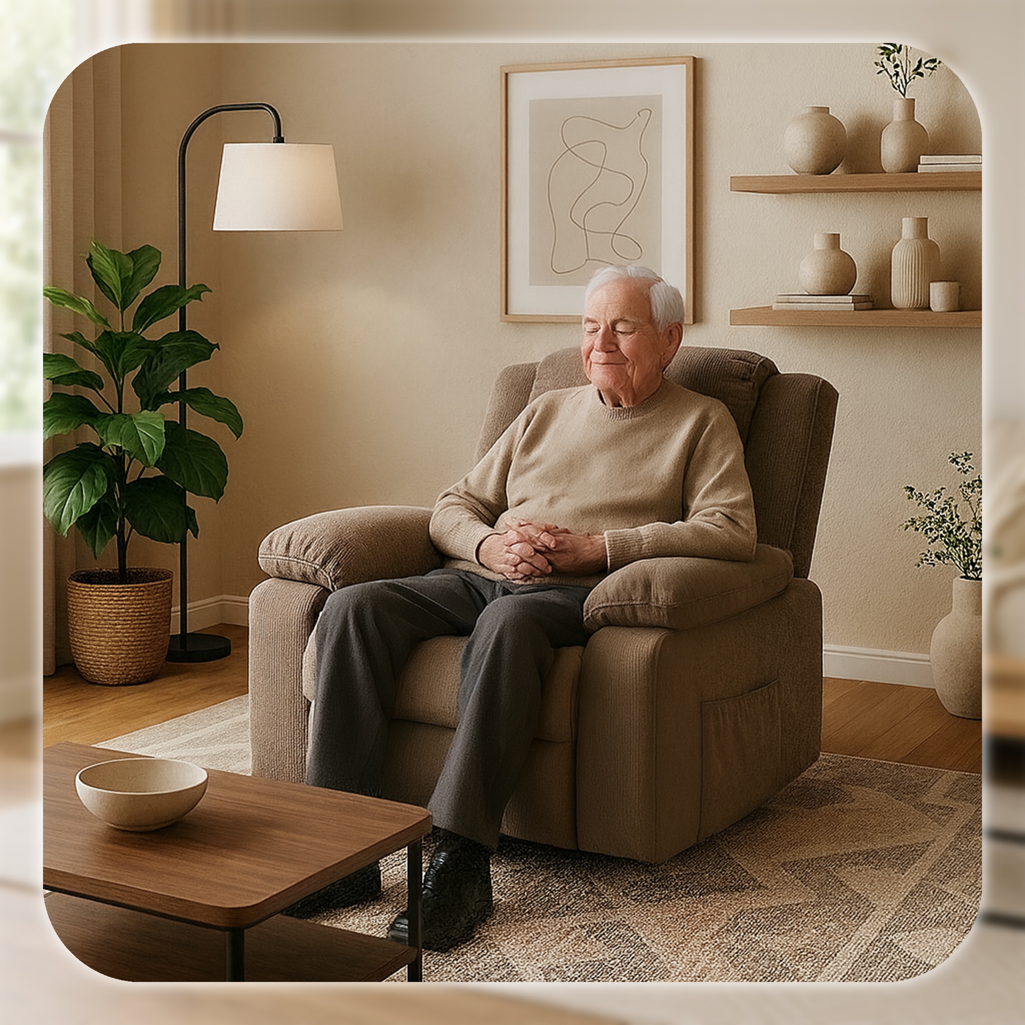 - Dla seniorów – doskonałe podparcie pleców i nóg wspiera krążenie i pomaga w codziennym odpoczynku, szczególnie przy problemach ze stawami. Dodatkowo funkcja podnoszenia siedziska ułatwia wstawanie.