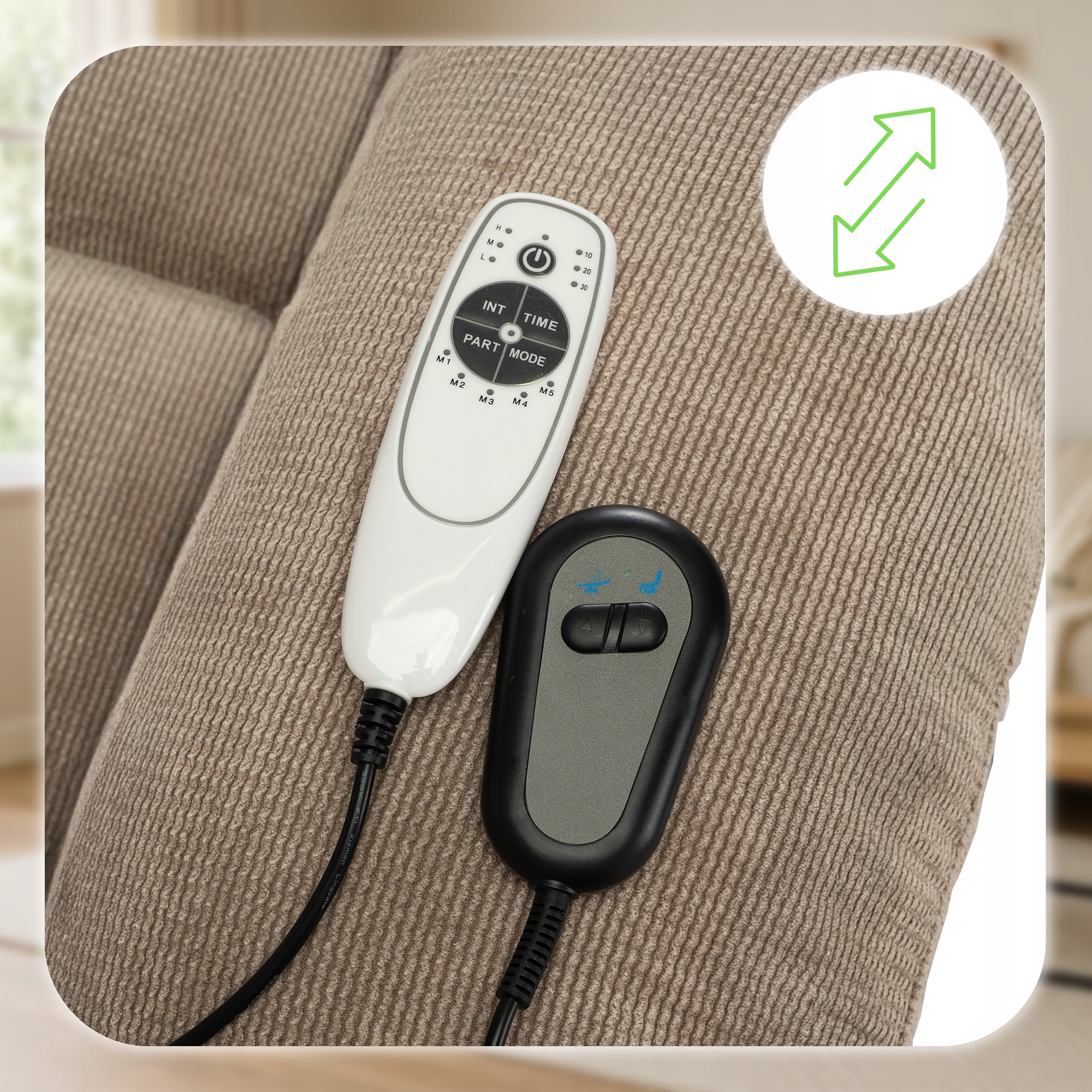 Wszystkimi funkcjami sterujesz intuicyjnym pilotem, który zapewnia pełną kontrolę bez konieczności wstawania z fotela. Komfort, relaks i regeneracja – wszystko na wyciągnięcie ręki.