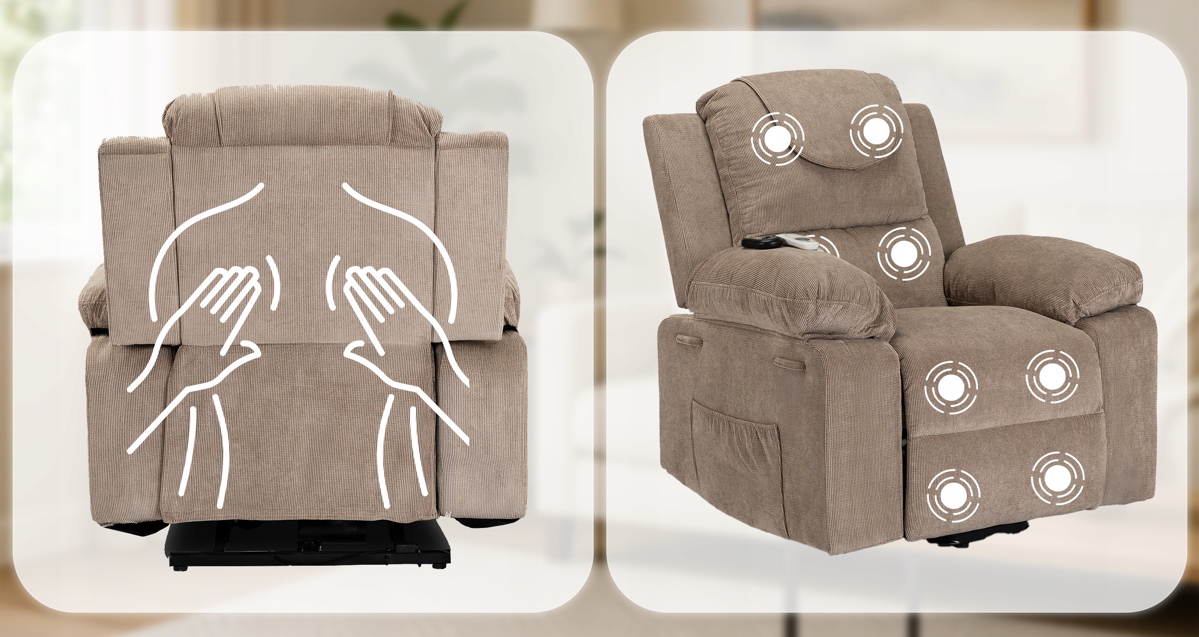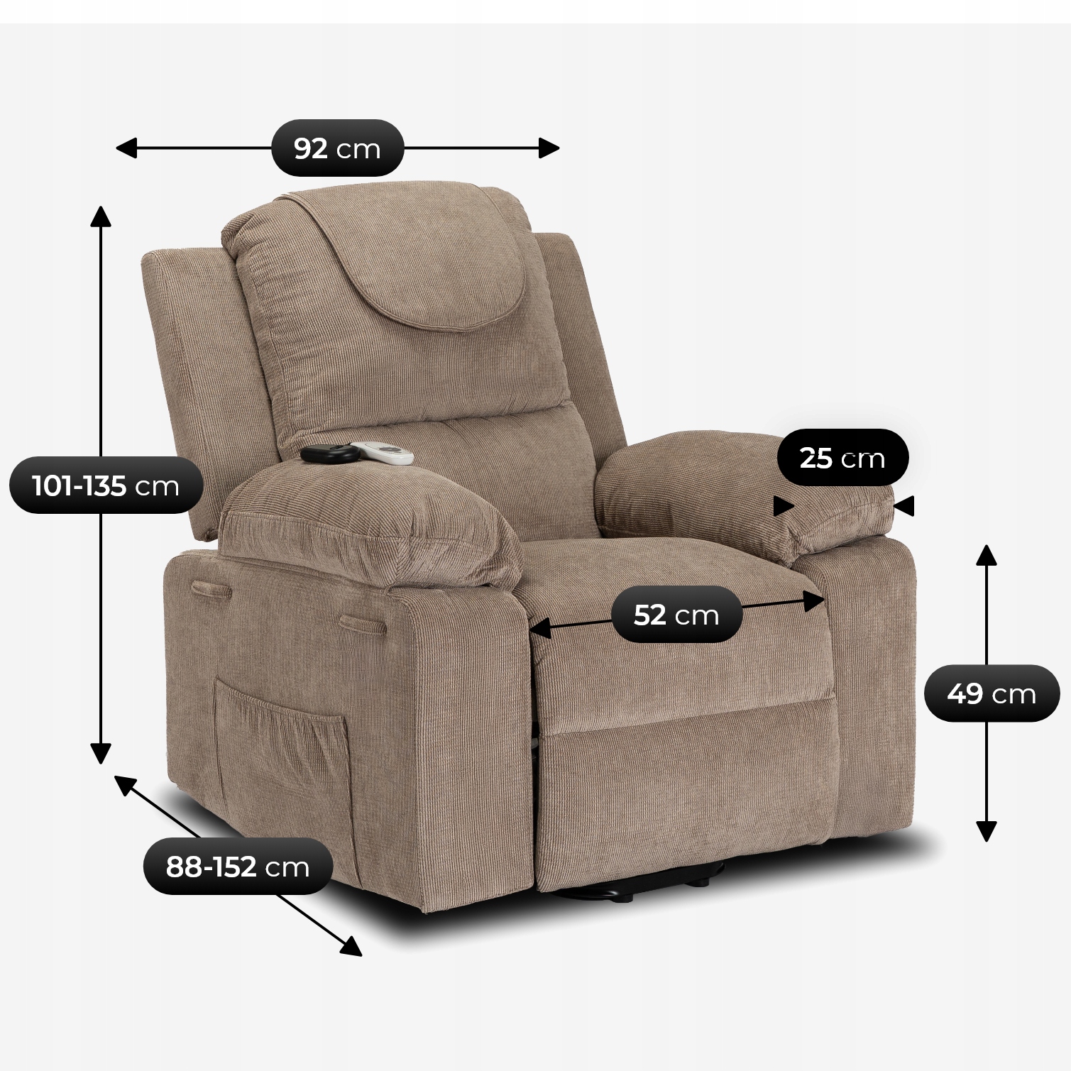 ✨ Fotel Rozkładany z Podnoszeniem Masujący Dla Seniora Masaż Beżowy FENIX