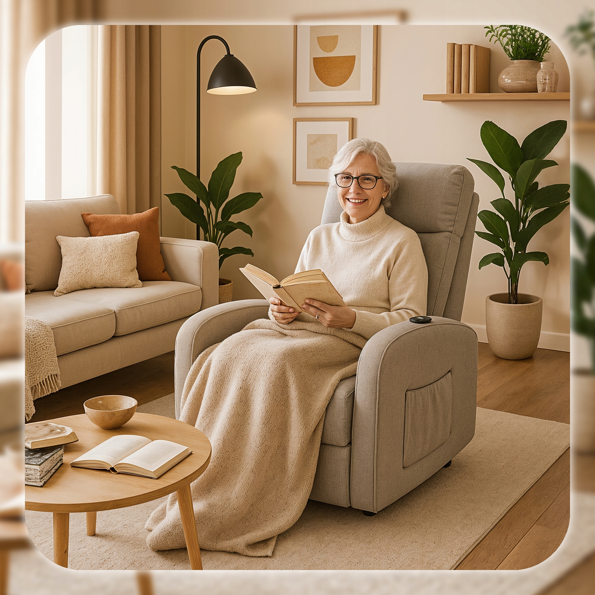 - Dla osób starszych – funkcja podnoszenia ułatwia wstawanie, a wygodne podparcie pleców i nóg wspiera codzienny odpoczynek.