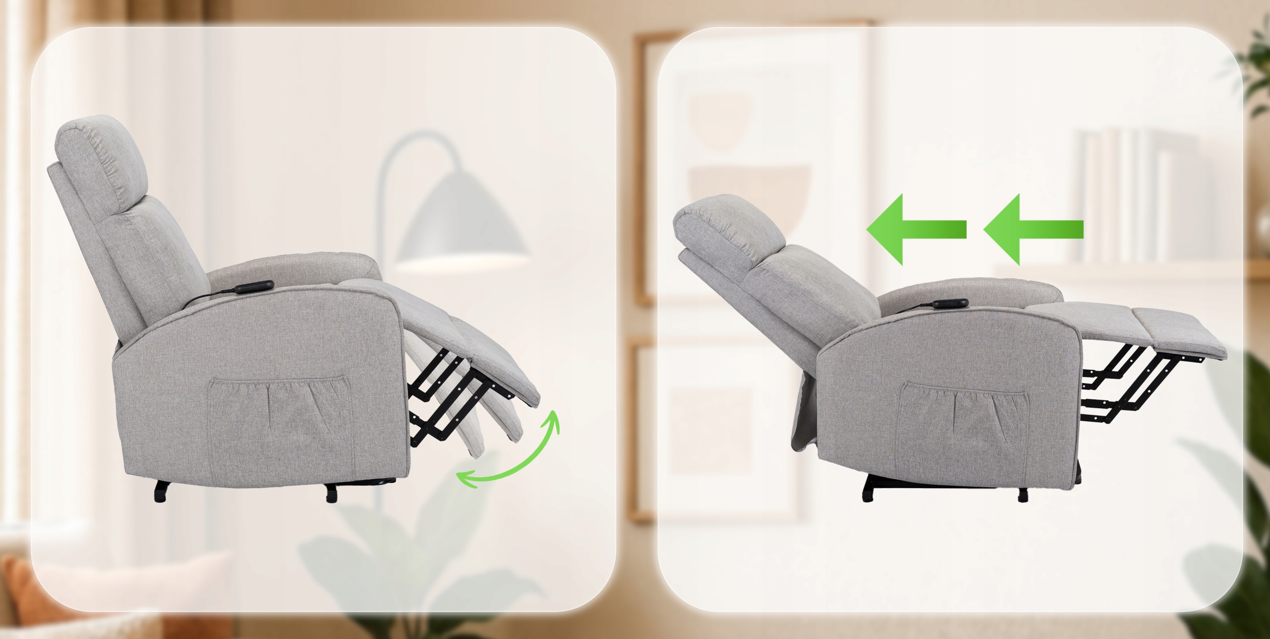 - Rozkładanie oparcia i podnóżka – uzyskaj idealną pozycję do relaksu