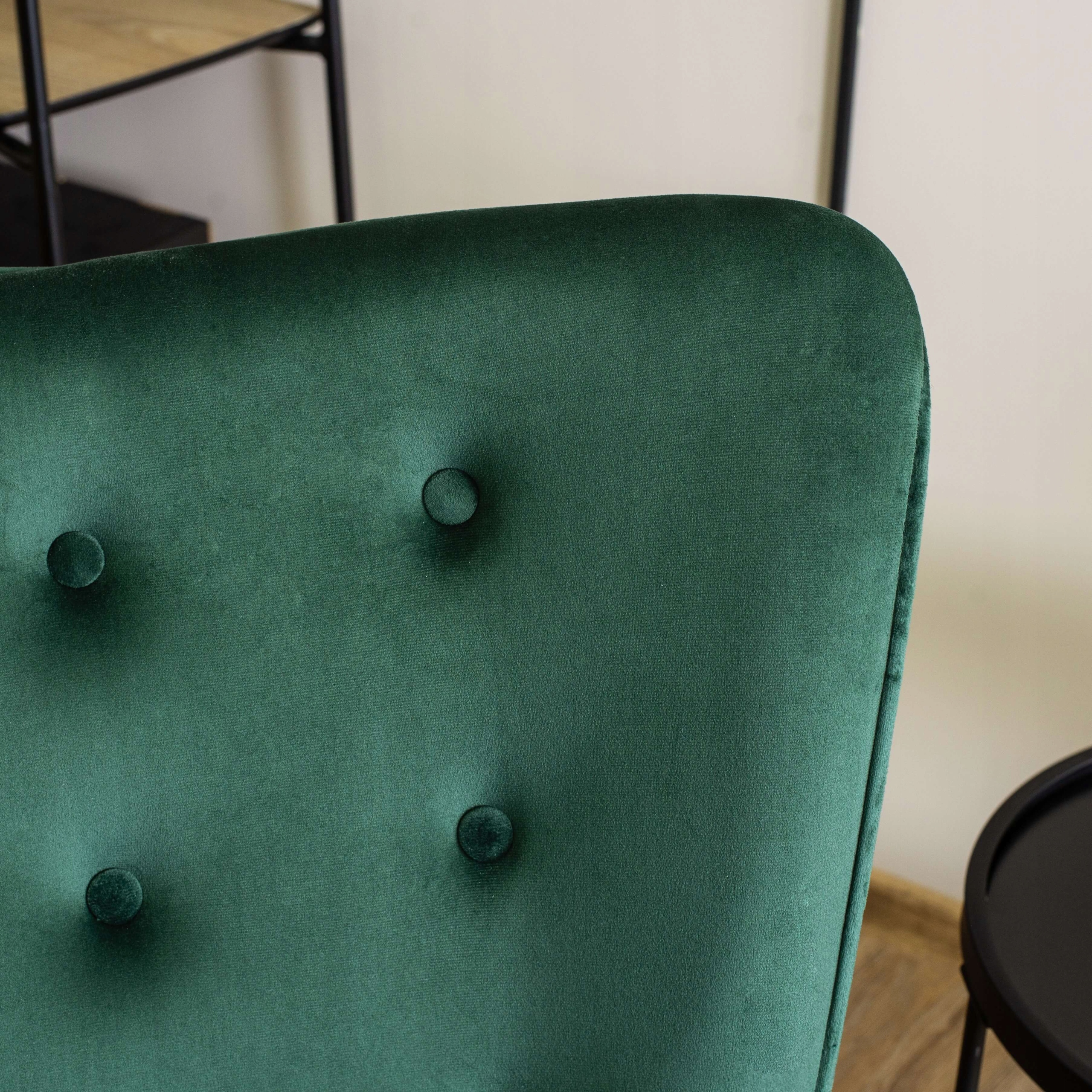 - Fotel bujany ELIS w kolorze ciemnej zieleni (butelkowej) z czarnymi płozami