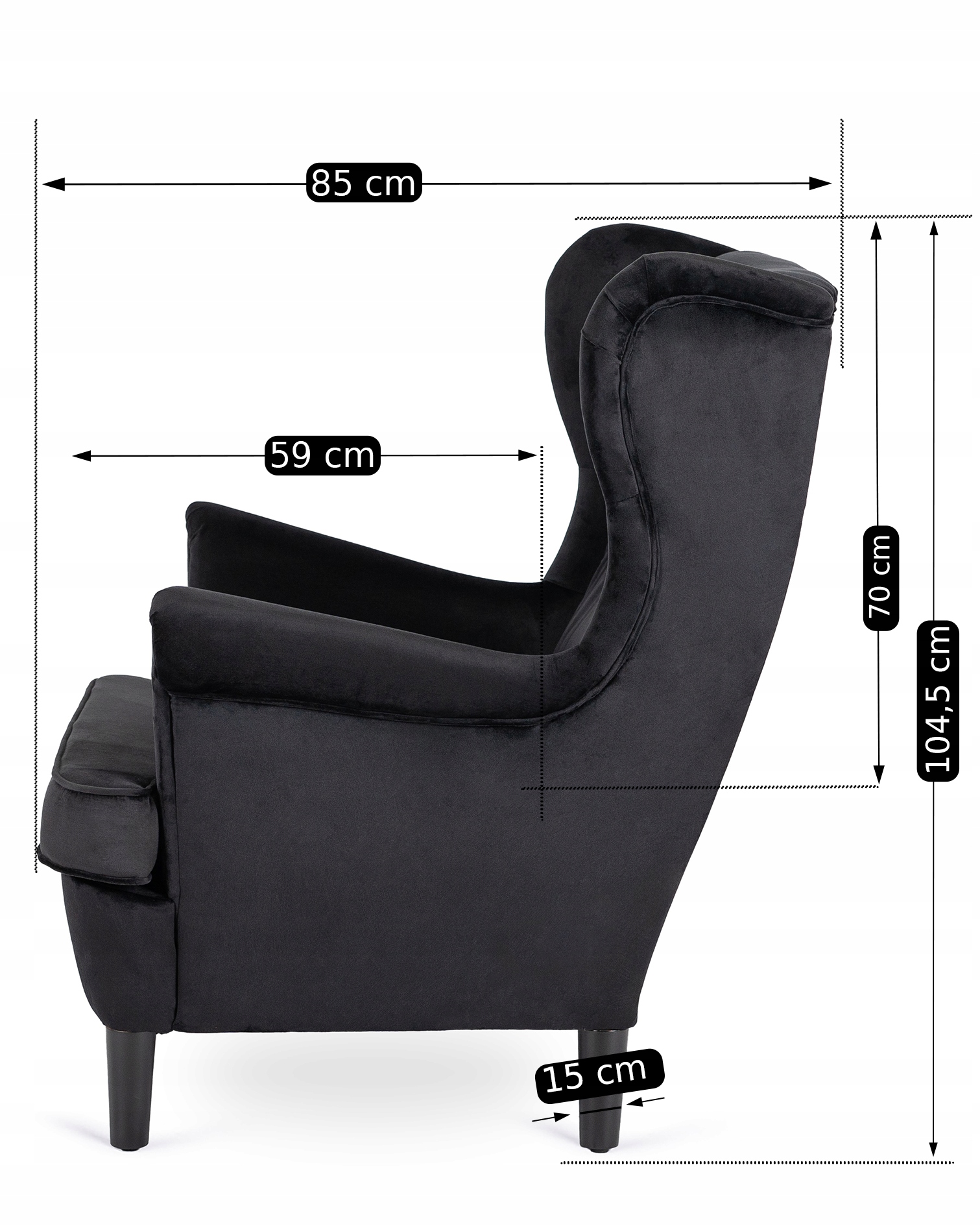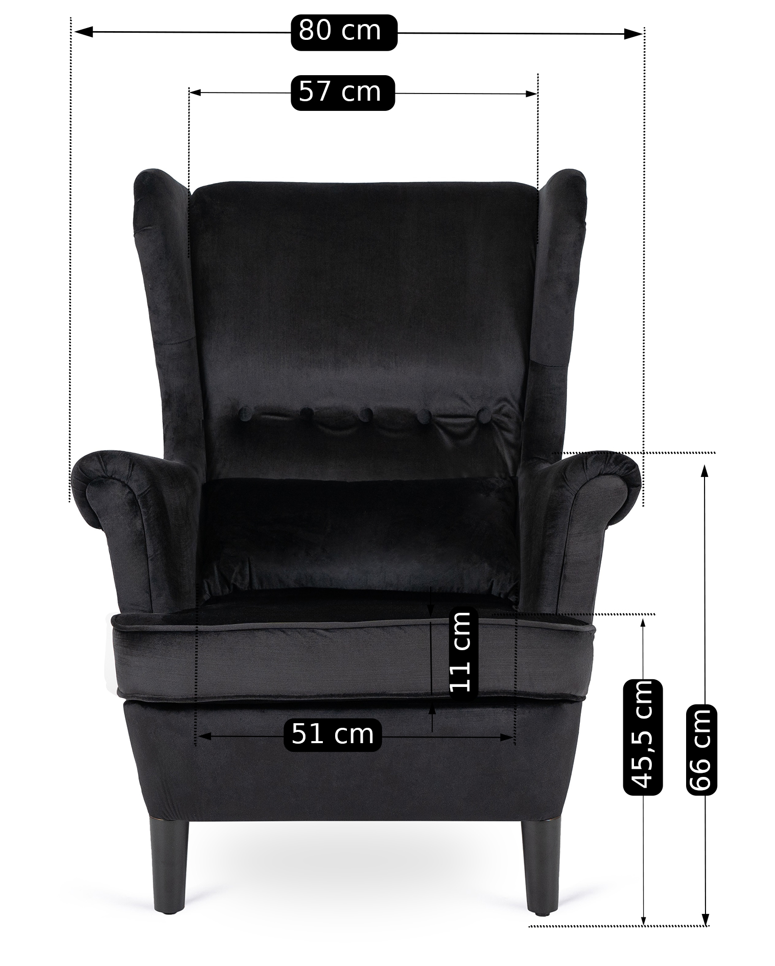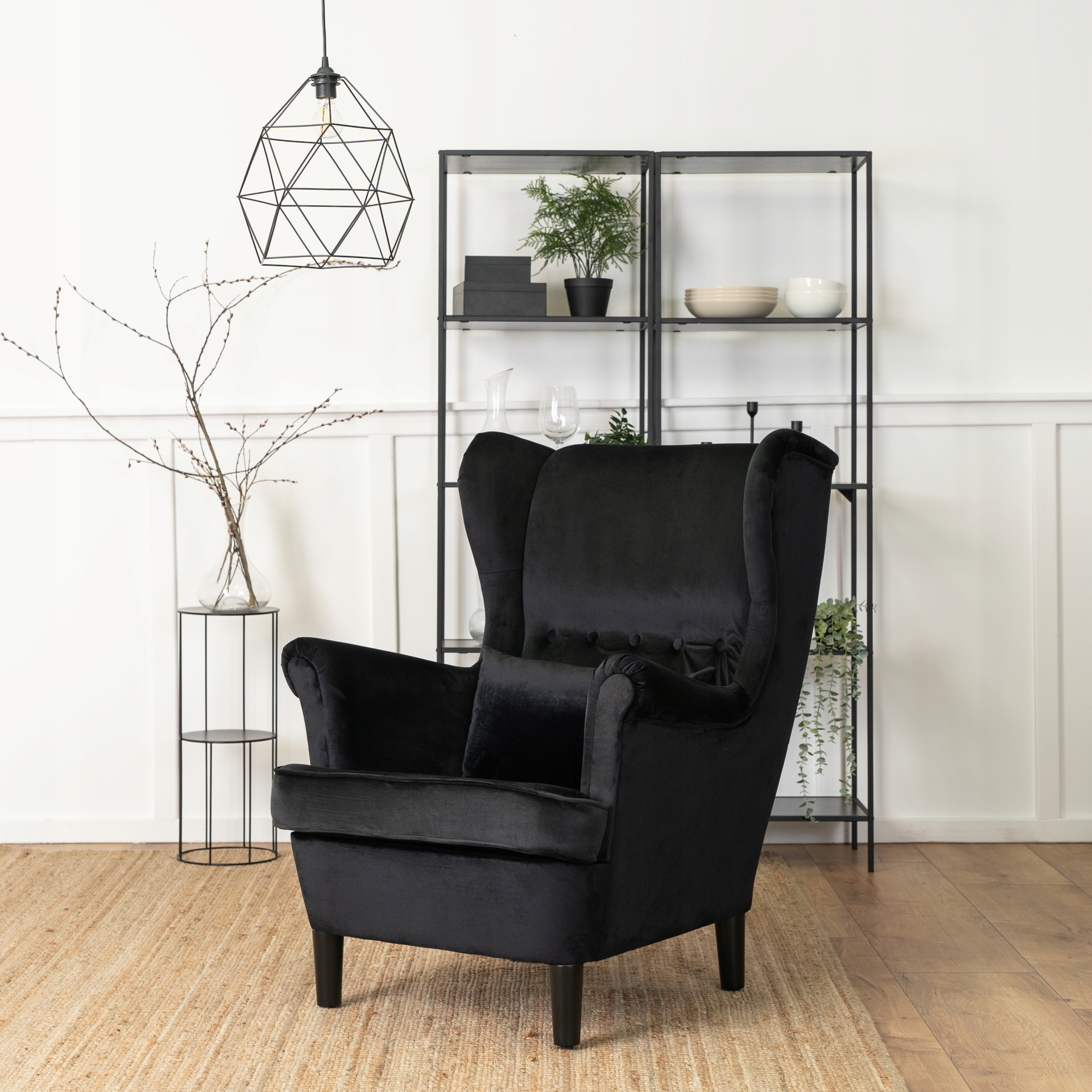 Fotel Uszak Do Salonu Skandynawski Wypoczynkowy Wygodny Czarny KLARIS 2 ⭐⭐⭐⭐⭐