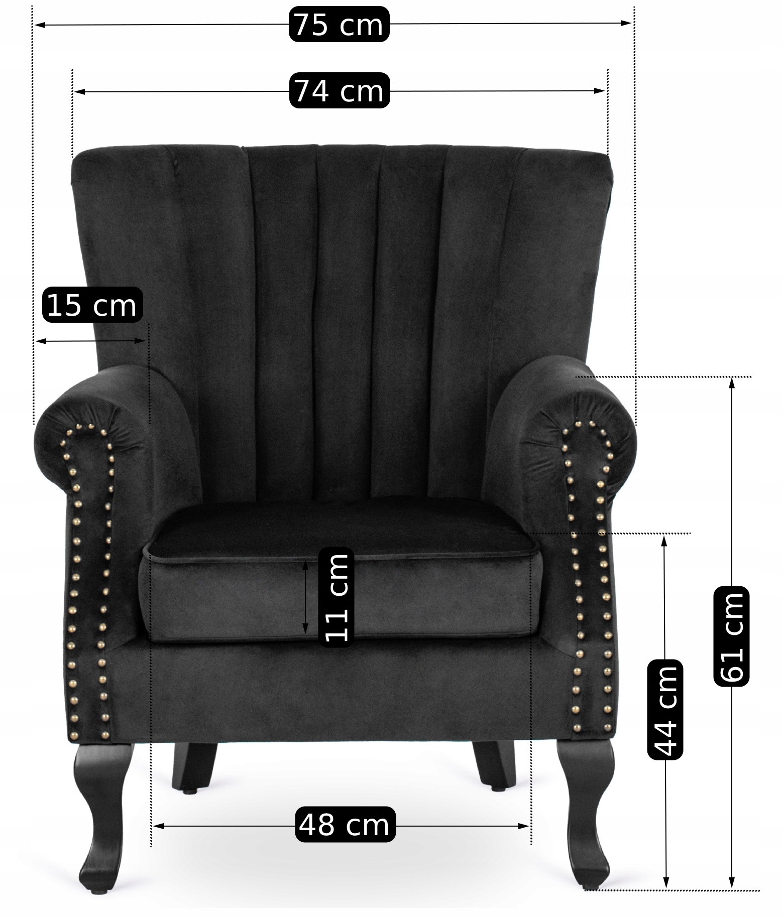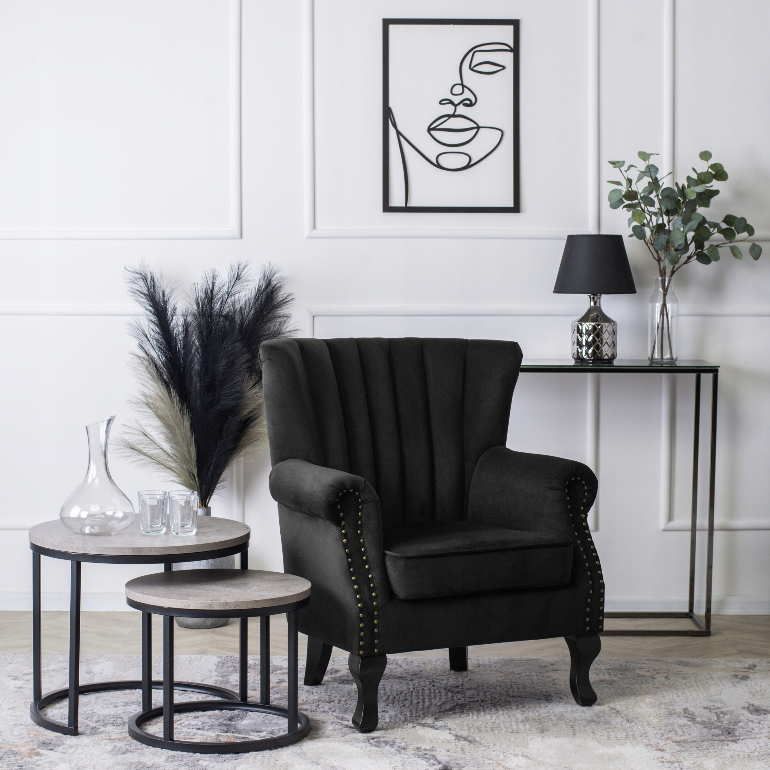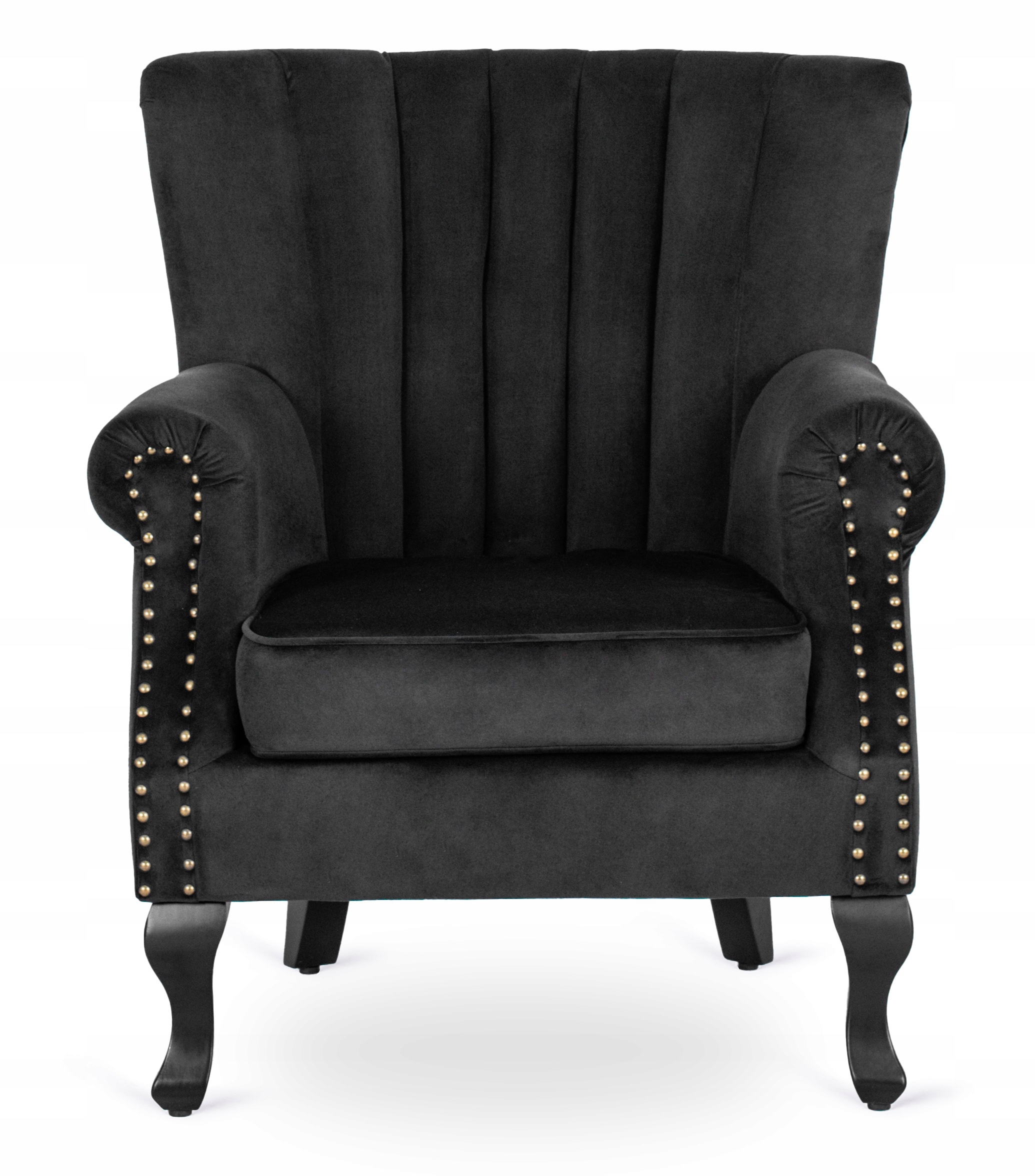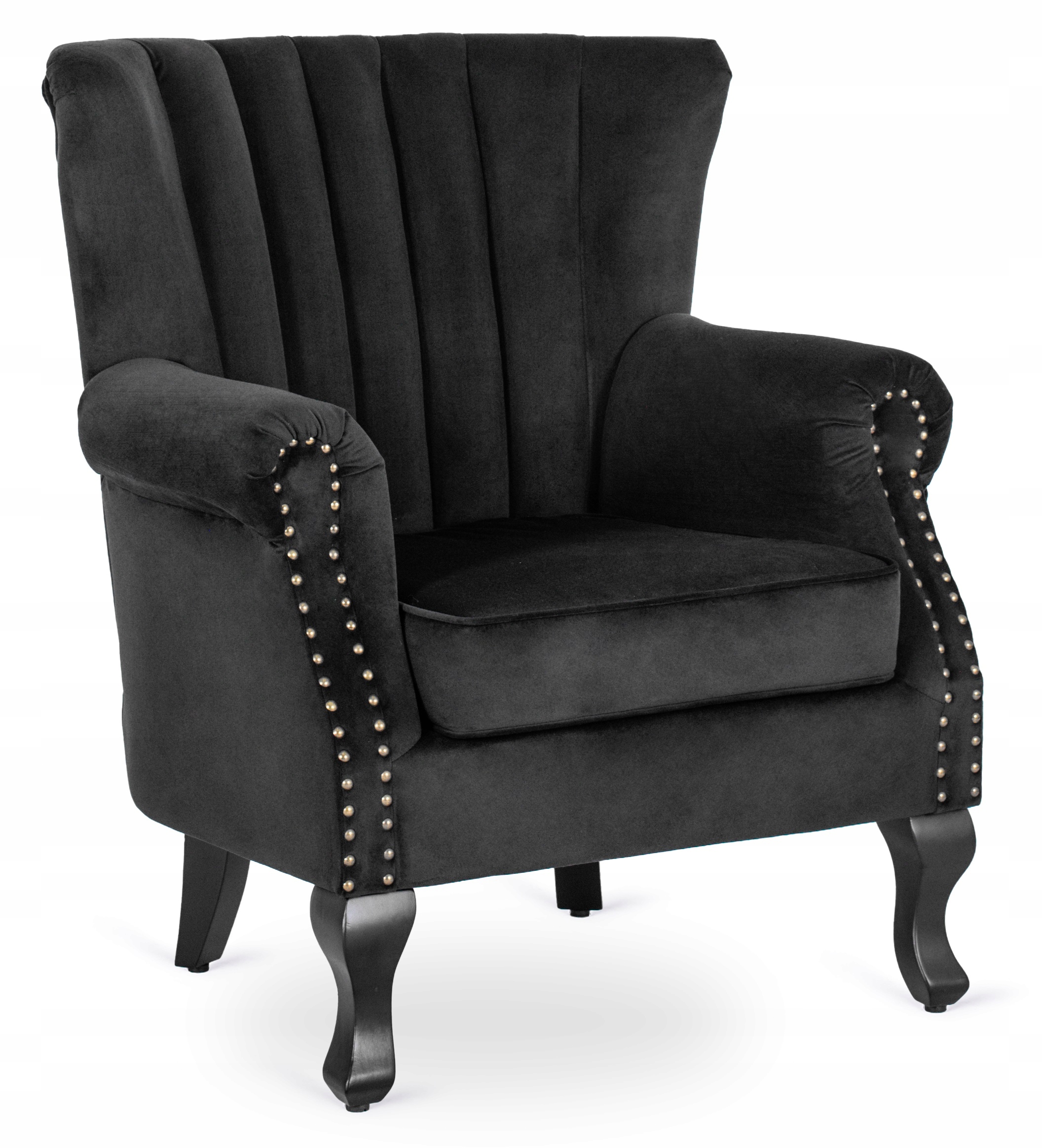 Fotel Uszak Wypoczynkowy Welurowy Wygodny Do Salonu Glamour Czarny MALLO ⭐⭐⭐⭐⭐