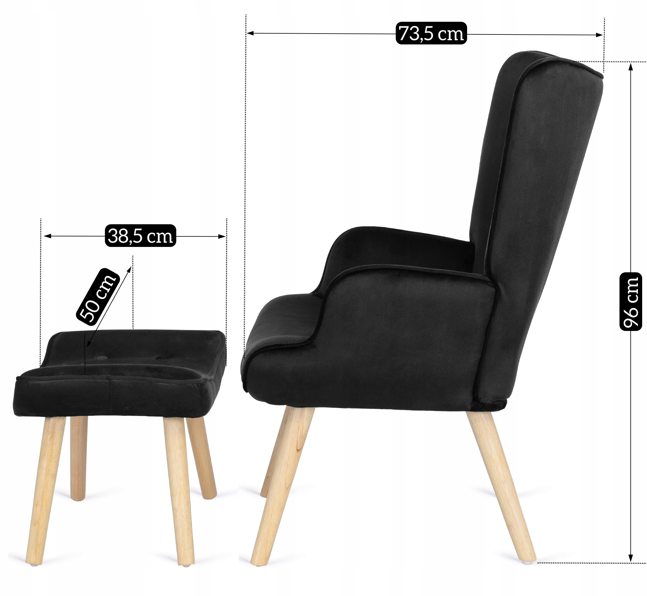 - Głębokość fotela: 73,5 cm (107 cm z podnóżkiem)