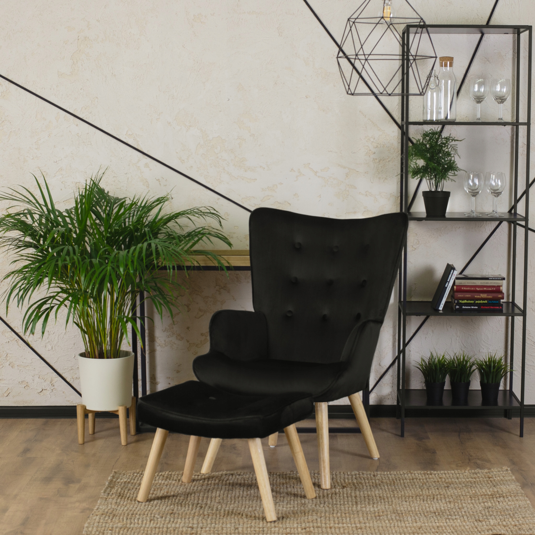 Fotel Uszak Wypoczynkowy z Podnóżkiem do Karmienia Welurowy Czarny LOZANO ⭐⭐⭐⭐⭐