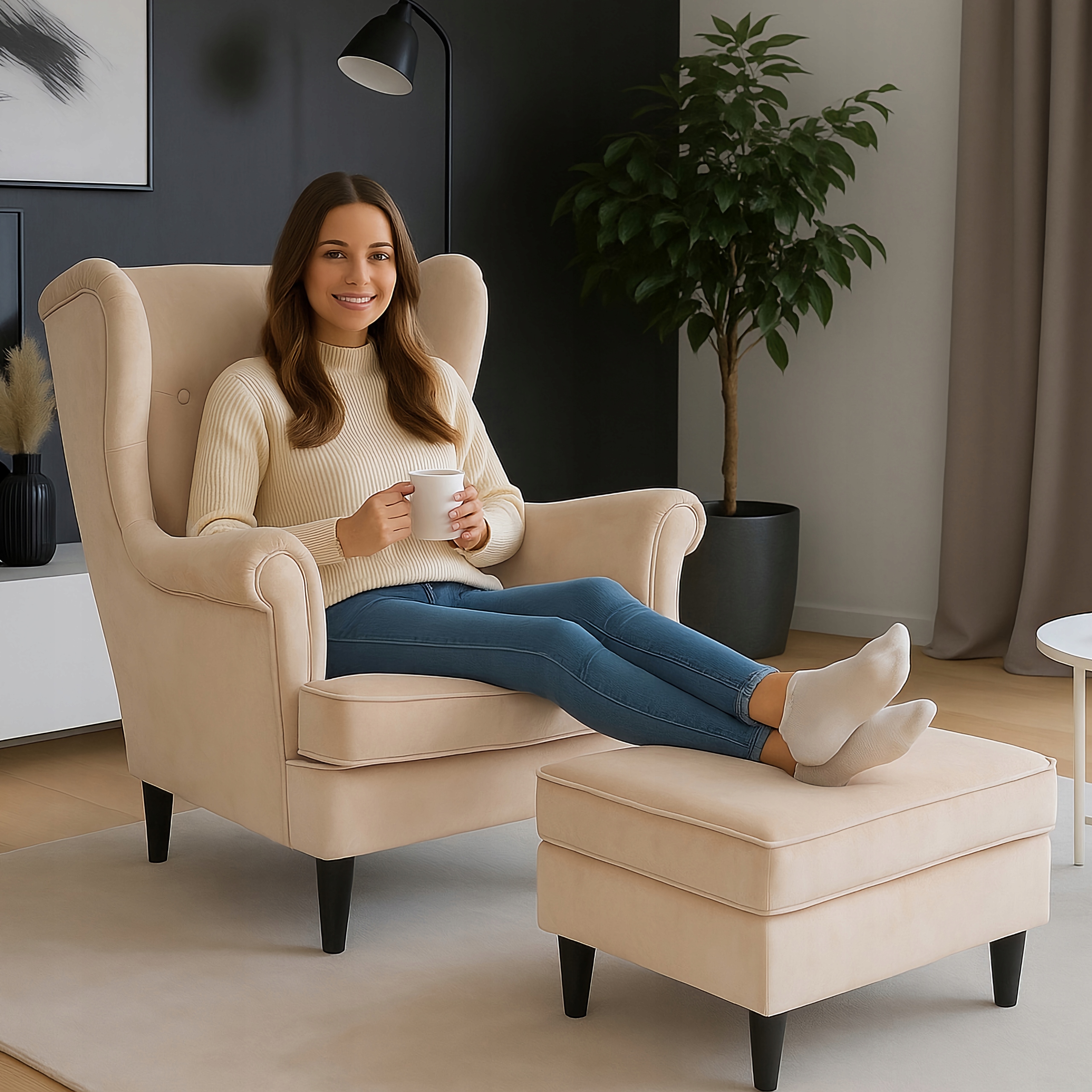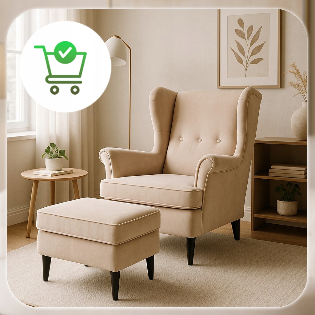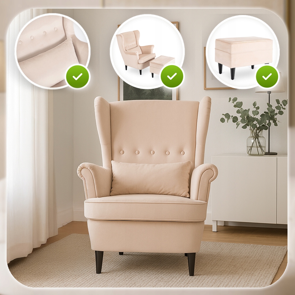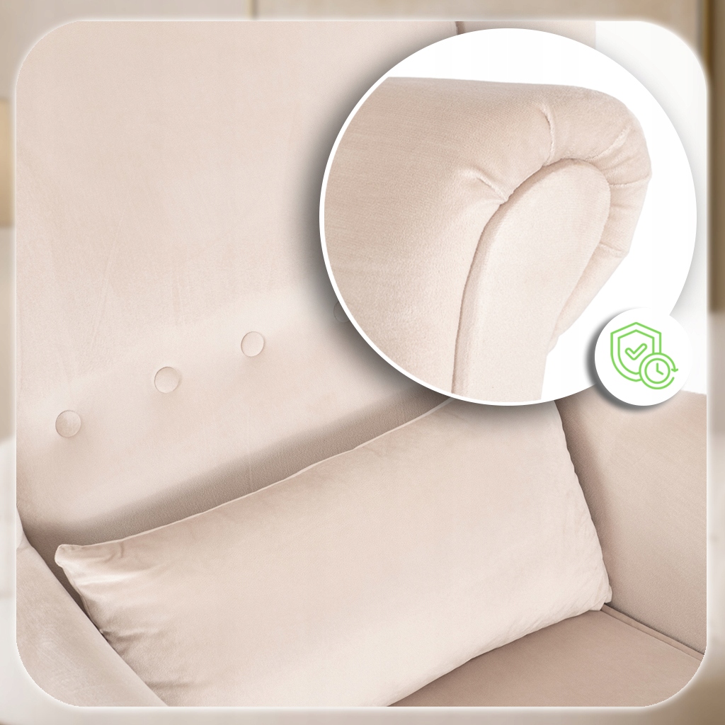 ✨ Fotel Uszak Z Podnóżkiem Wypoczynkowy Welurowy Do Salonu Beżowy EVAN 2