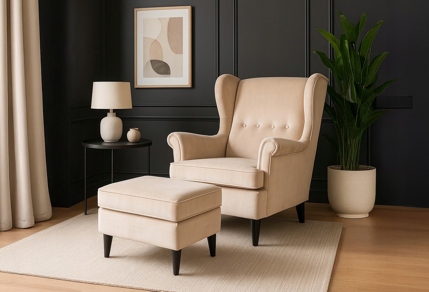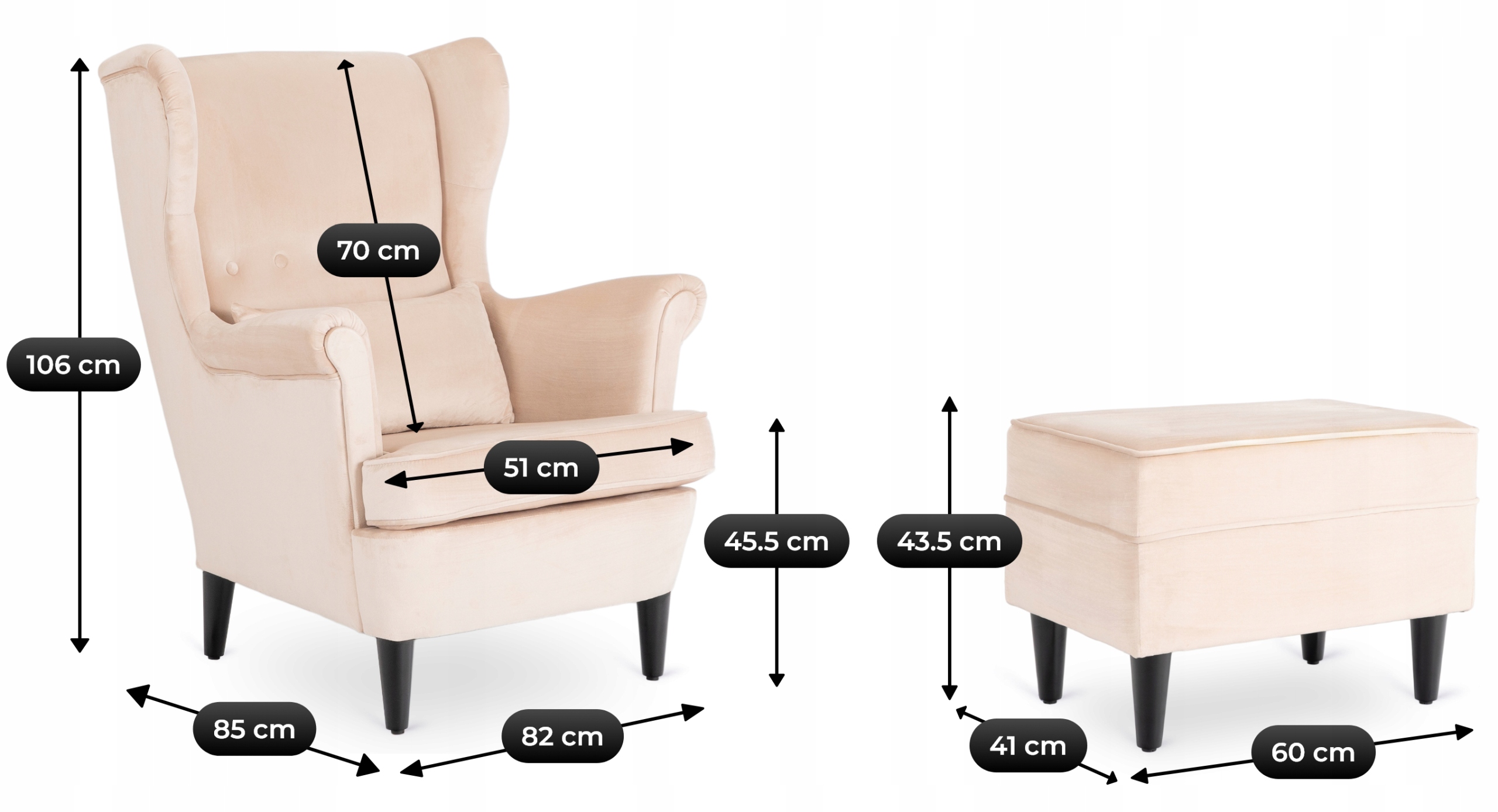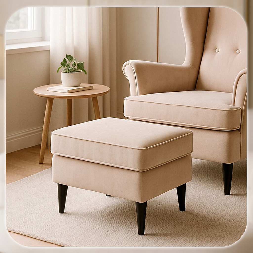 ✨ Fotel Uszak Z Podnóżkiem Wypoczynkowy Welurowy Do Salonu Beżowy EVAN 2