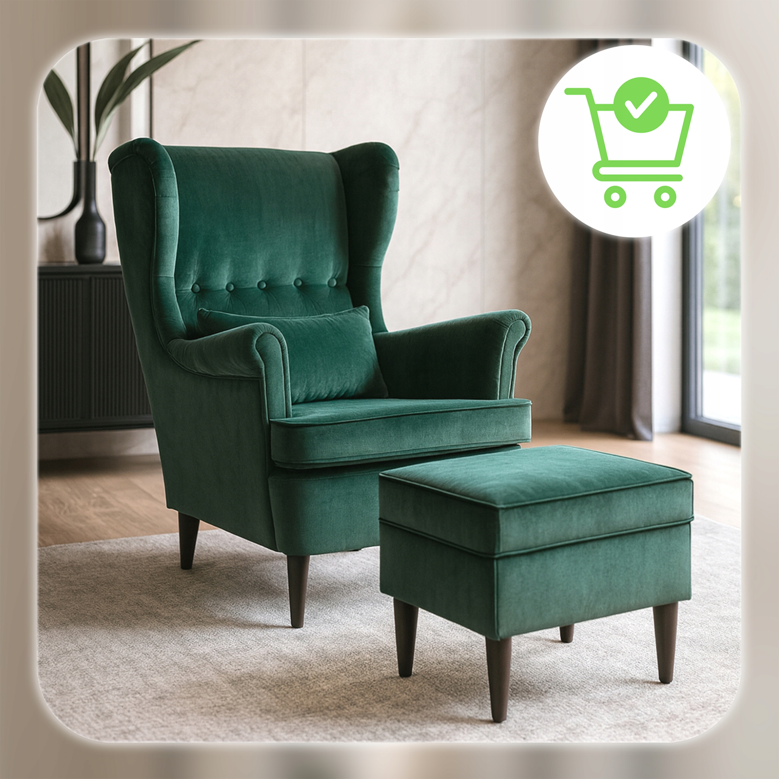 Zamów już teraz Fotel Uszak EVAN 2 Zielony Welur i ciesz się komfortem każdego dnia!