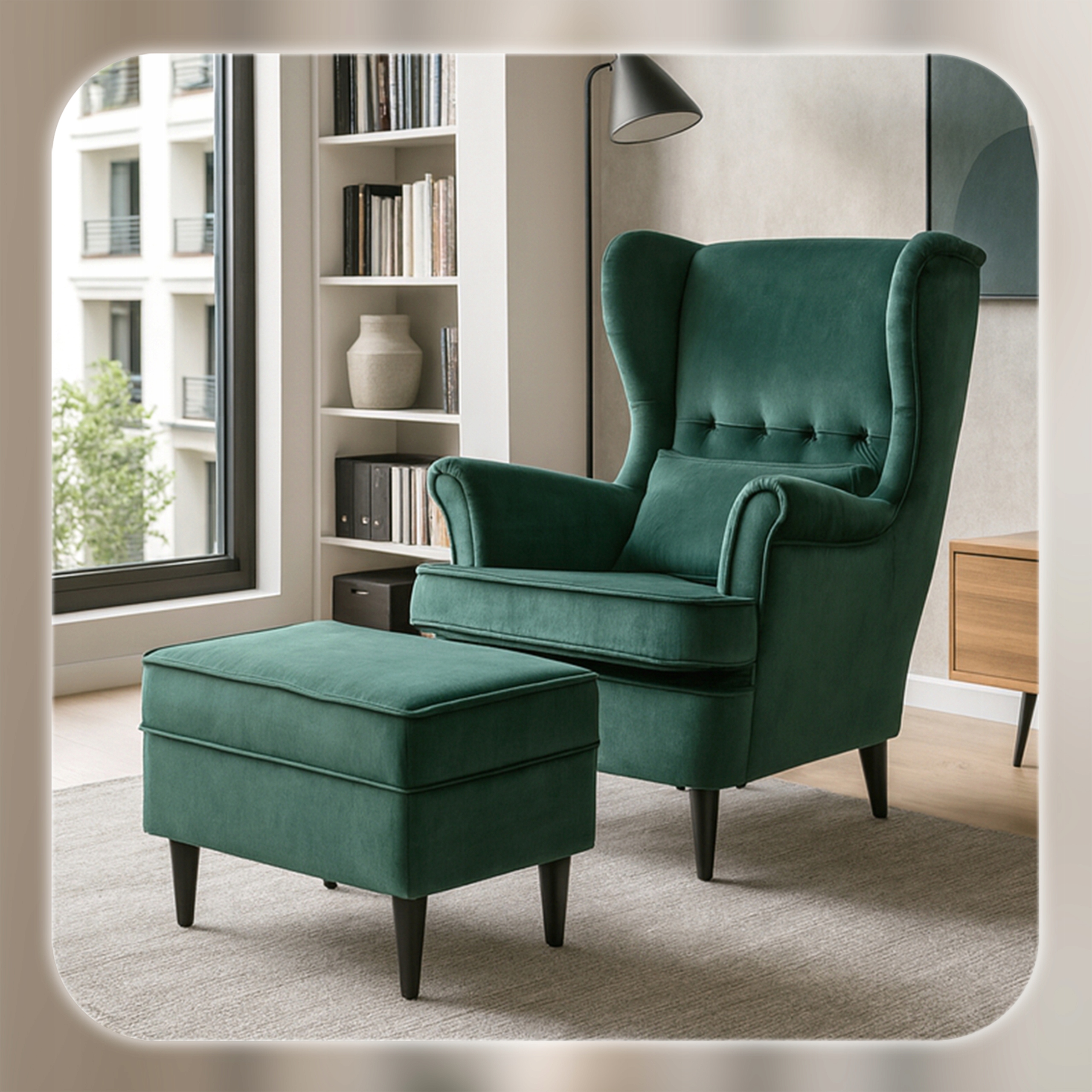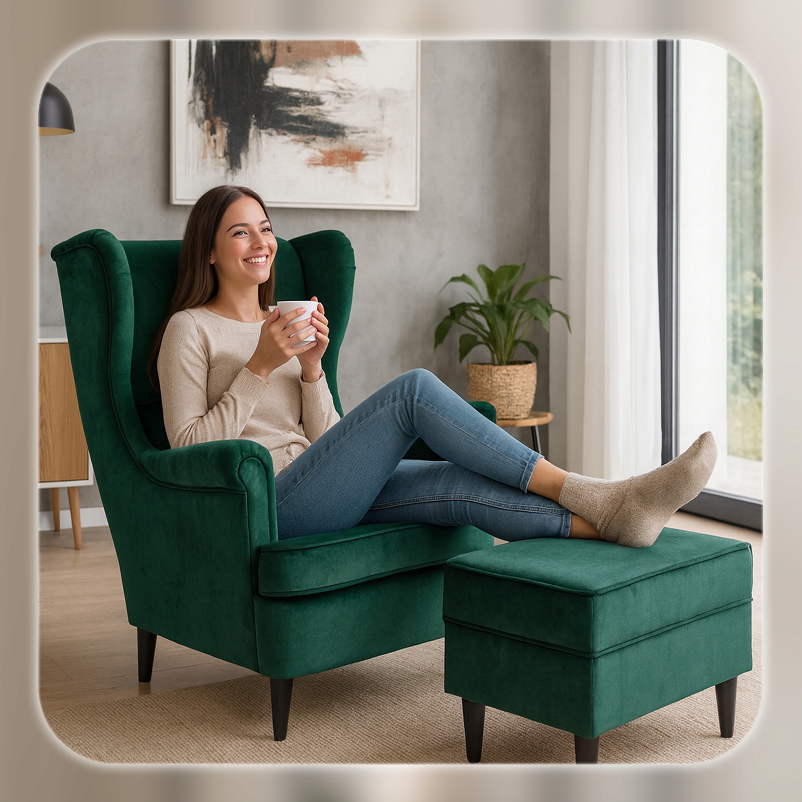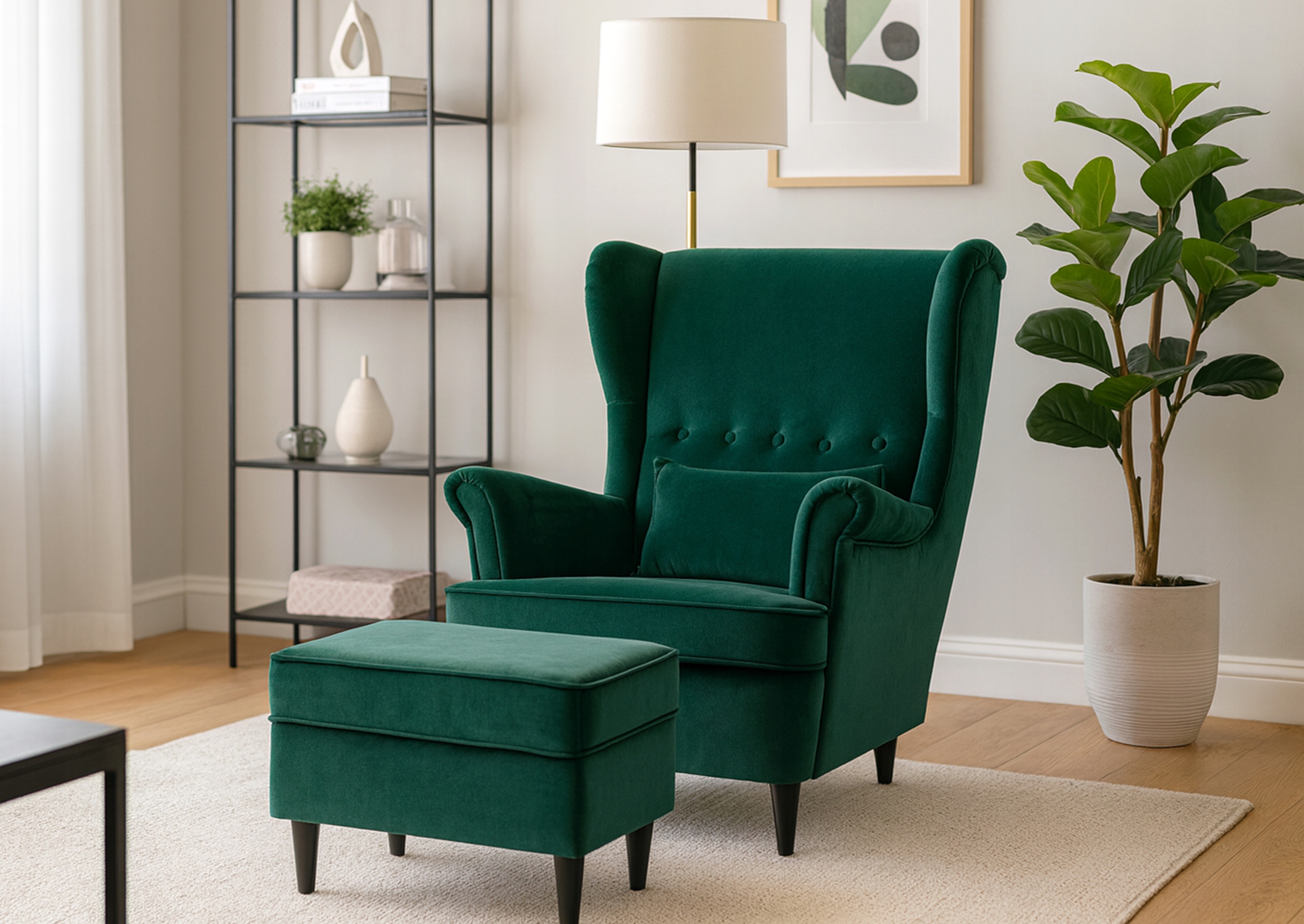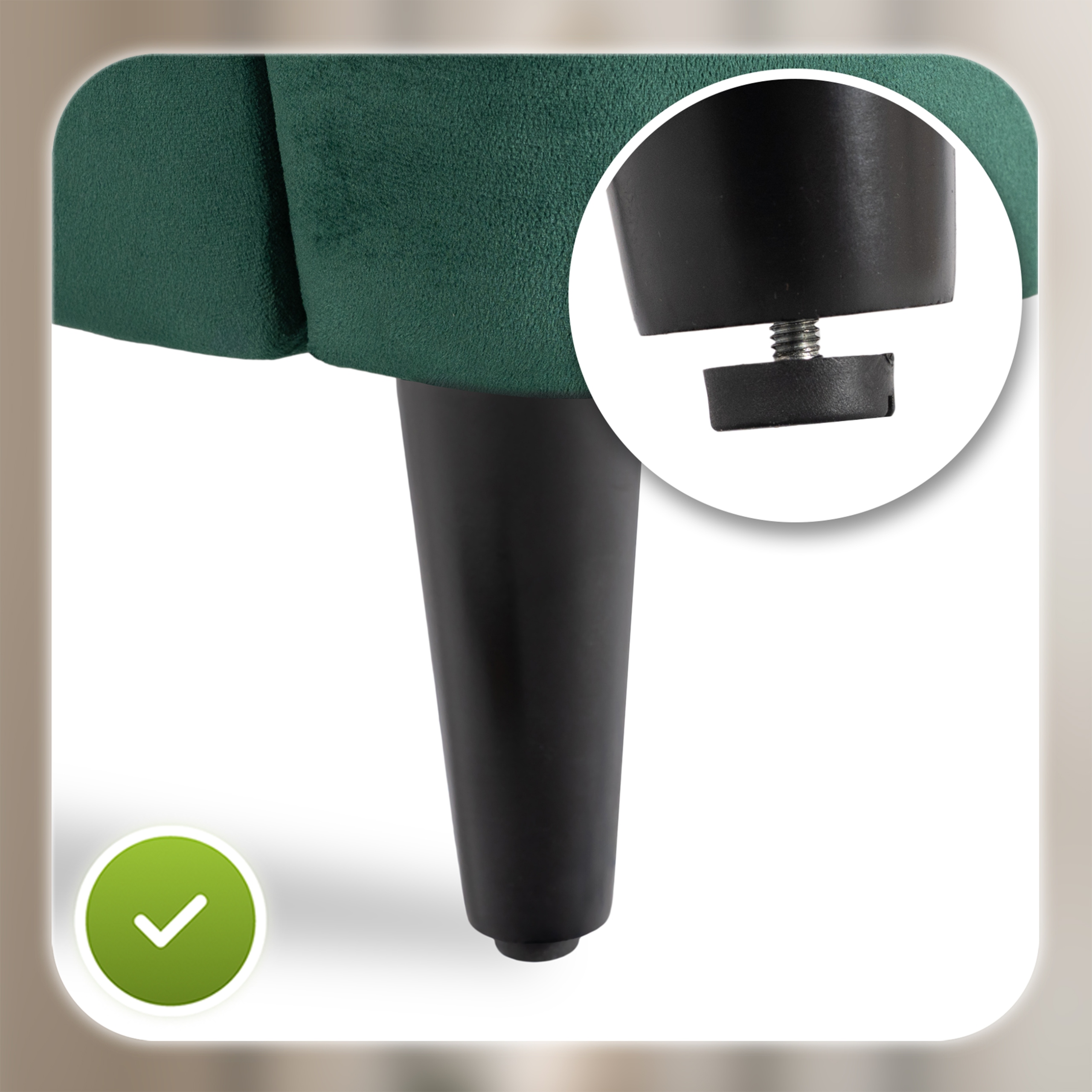 - Dla tych, którzy dbają o estetykę wnętrza – elegancki, zielony odcień tkaniny oraz smukłe, czarne nóżki sprawiają, że fotel doskonale pasuje do salonu, sypialni czy czytelni, niezależnie od stylu aranżacji.