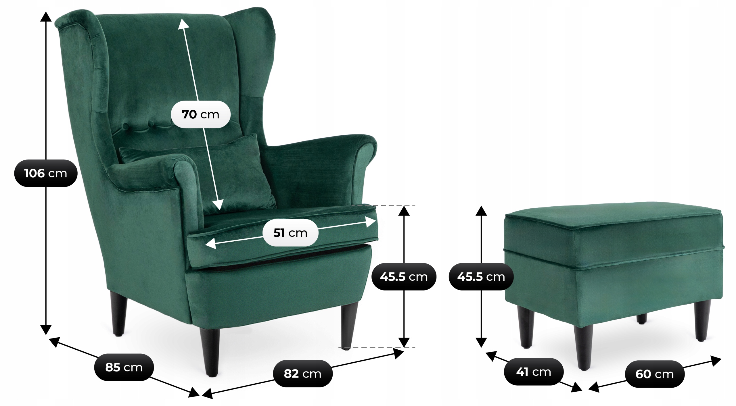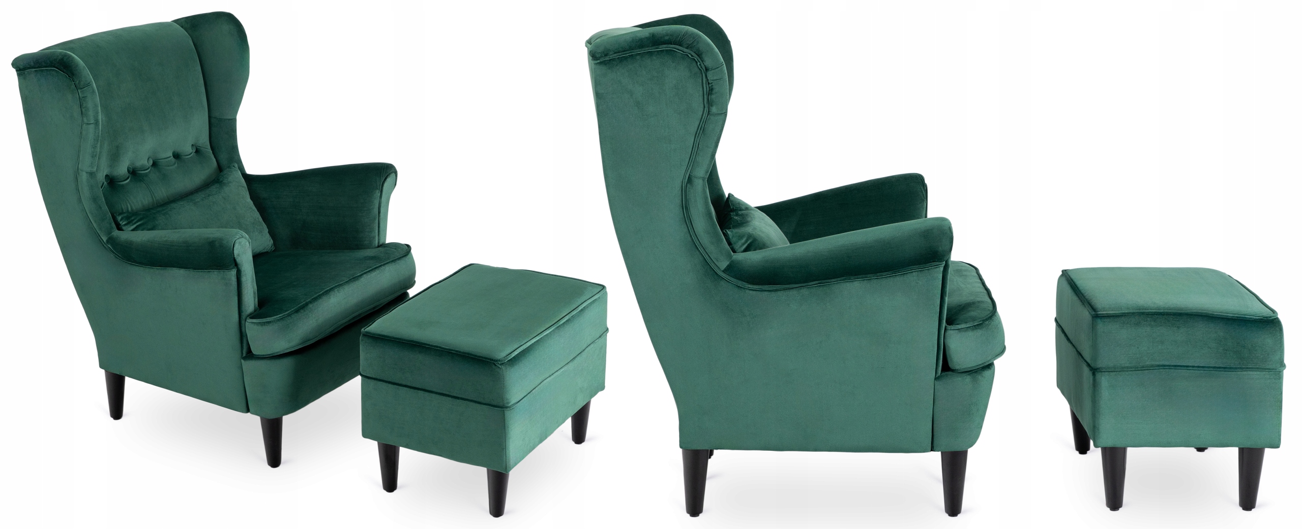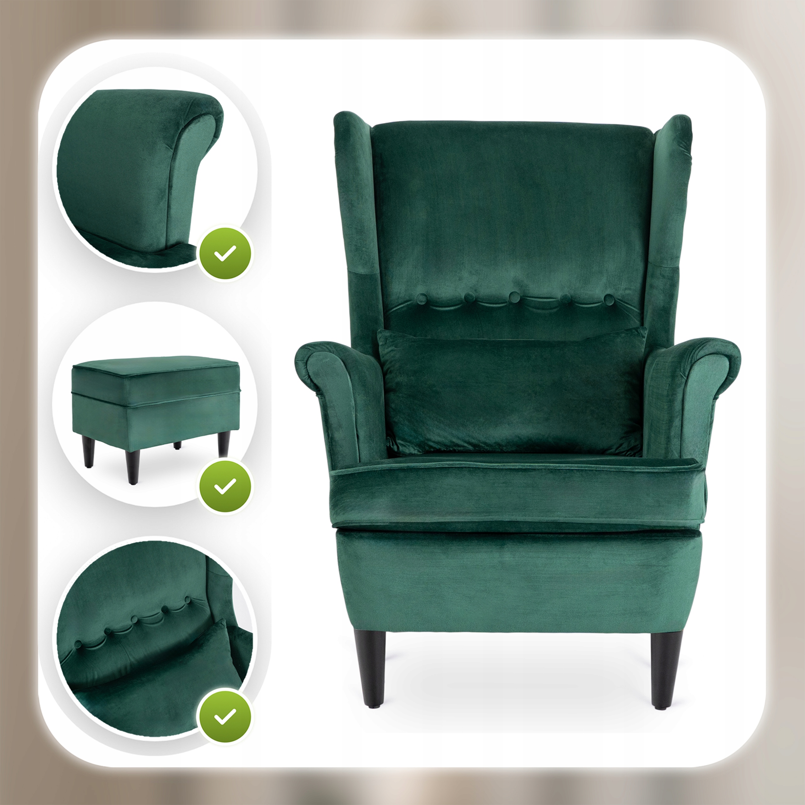 Fotel Uszak Z Podnóżkiem Wypoczynkowy Welurowy Do Salonu Zielony EVAN 2 ⭐⭐⭐⭐⭐