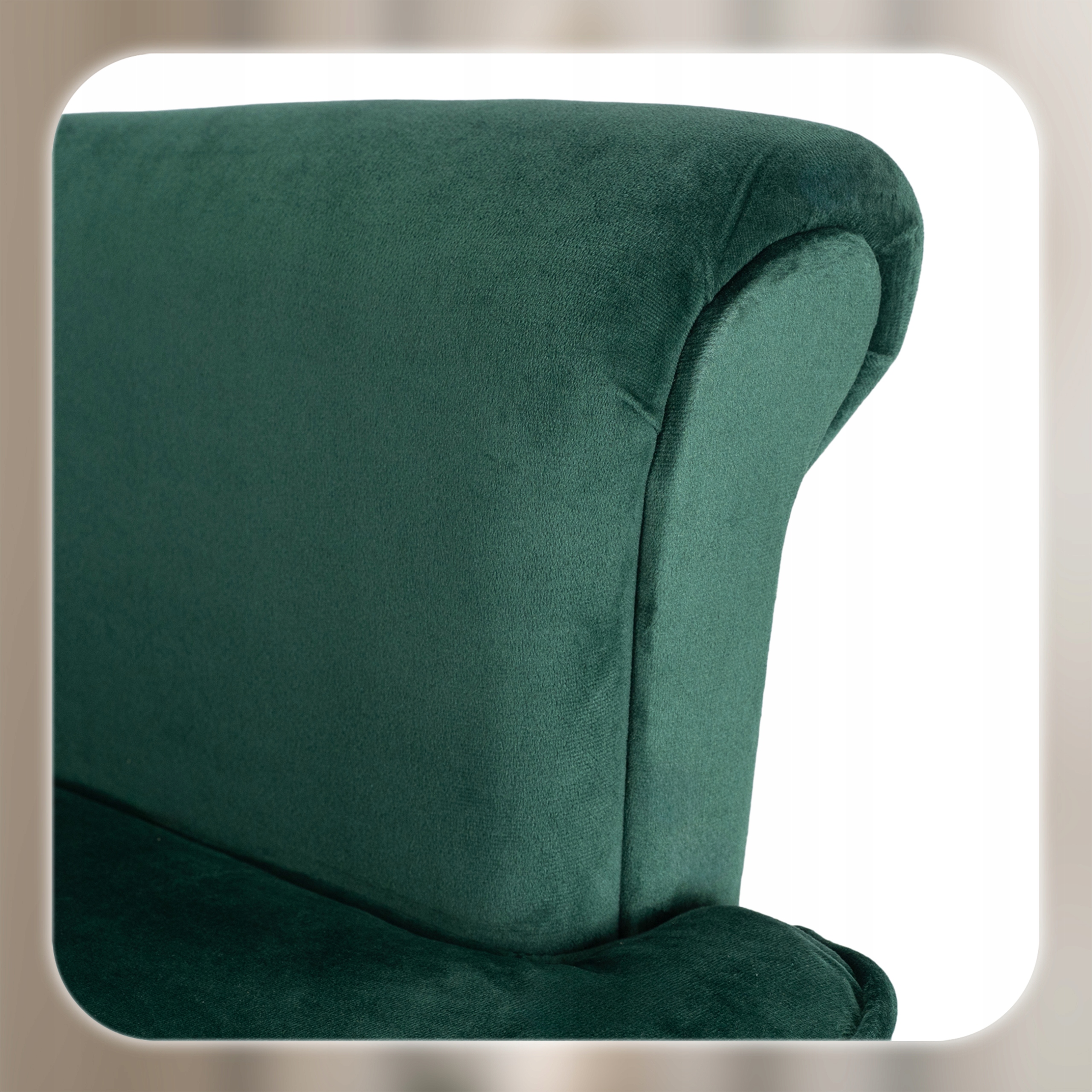 - Miły w dotyku i przytulny – gęsty, aksamitny materiał dodaje wnętrzu ciepła i sprawia, że każda chwila spędzona w tym fotelu staje się jeszcze bardziej komfortowa.
