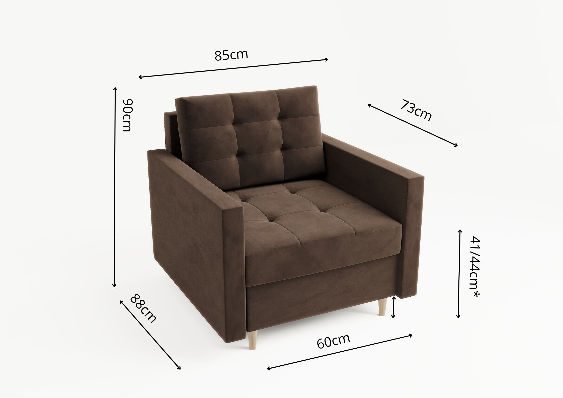 - Głębokość siedziska: 73cm