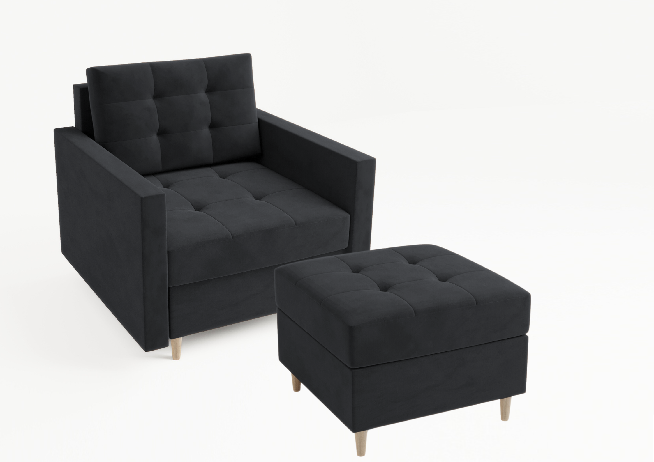 ⭐️Fotel VIDO Czarny Tapicerowany Welur Salon Biuro Skandynawski pufą VIDO