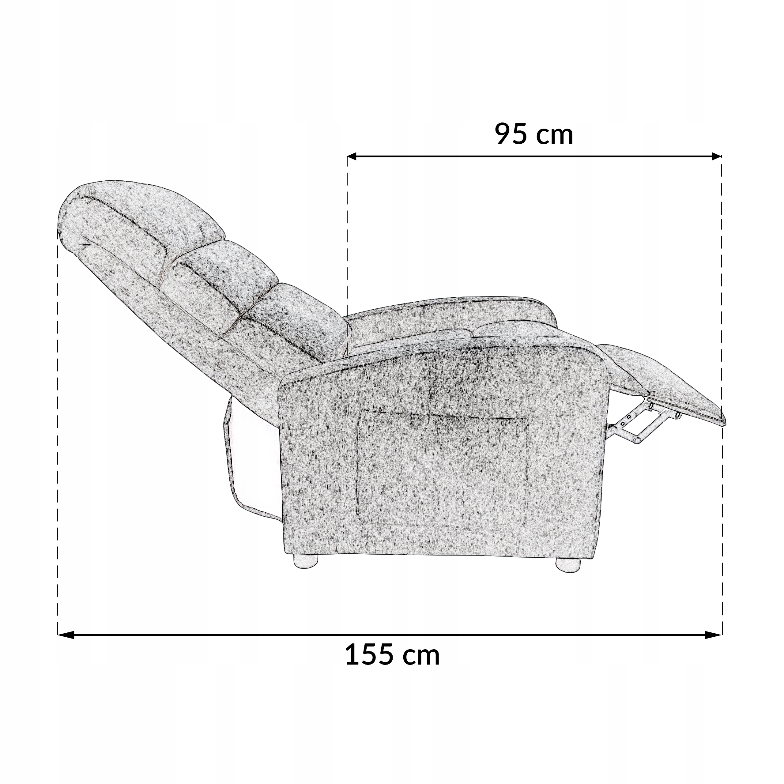 - Głębokość fotela po rozłożeniu: 155 cm